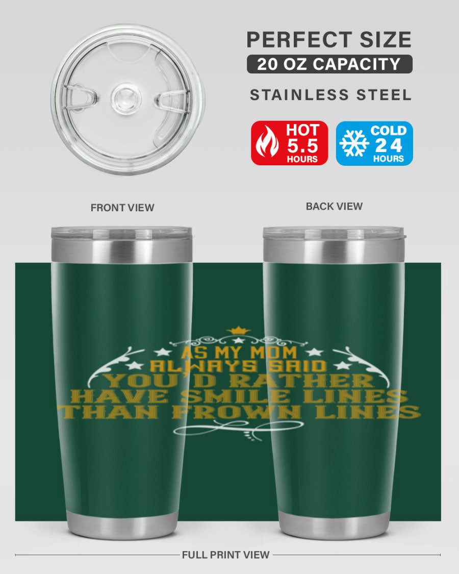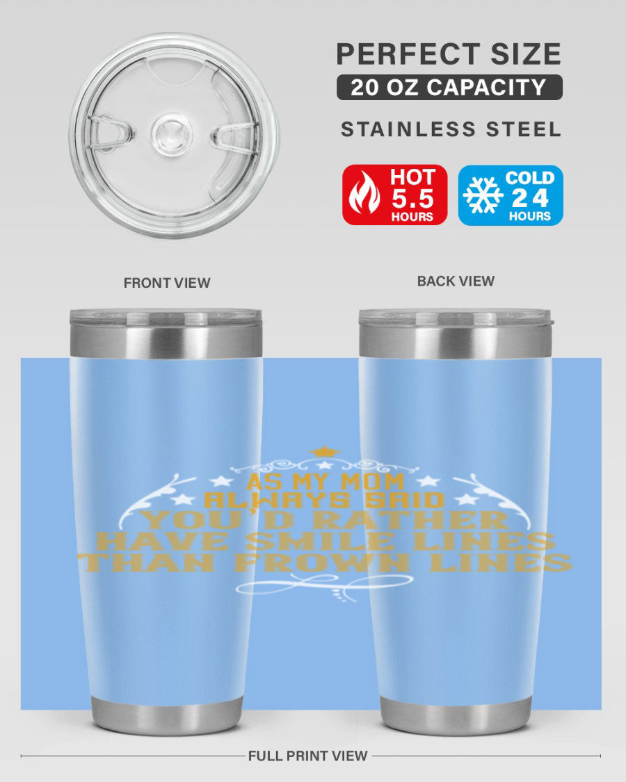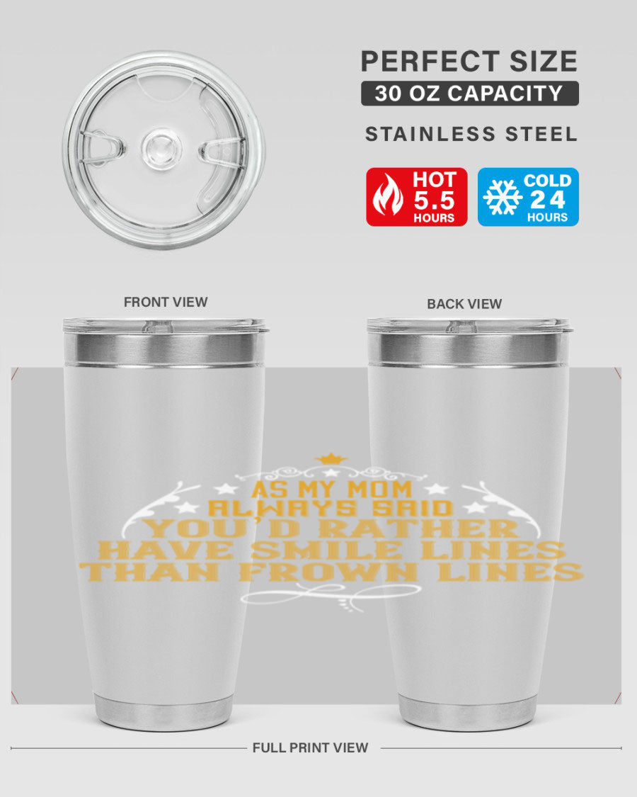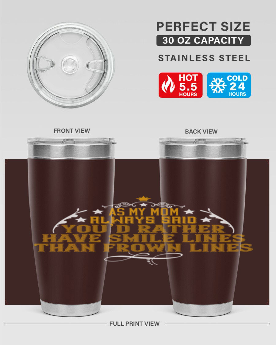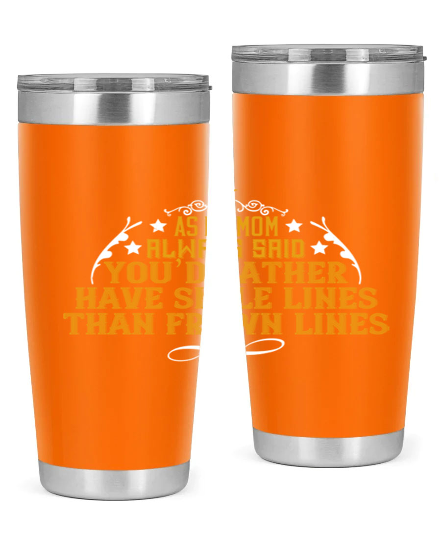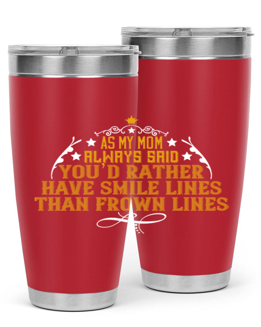 The 'As My Mom Always Said' tumbler comes with a press-in, drink-thru lid that allows for easy sipping without the hassle of spills. Its design fits perfectly in most cup holders, making it an ideal companion for road trips, commutes, or outdoor adventures. Whether you're heading to work or enjoying a day at the park, this tumbler is designed for convenience.