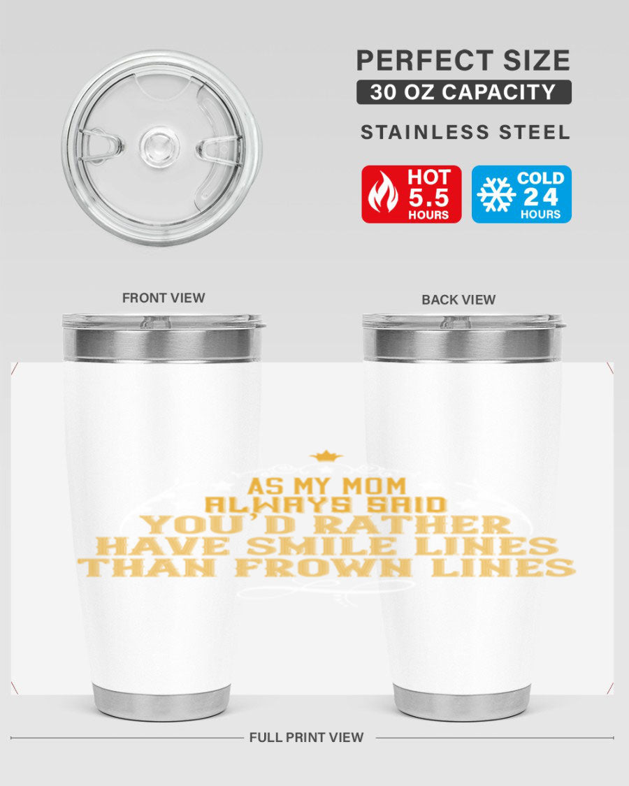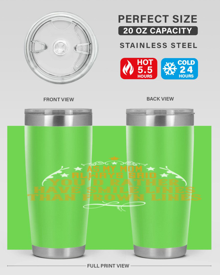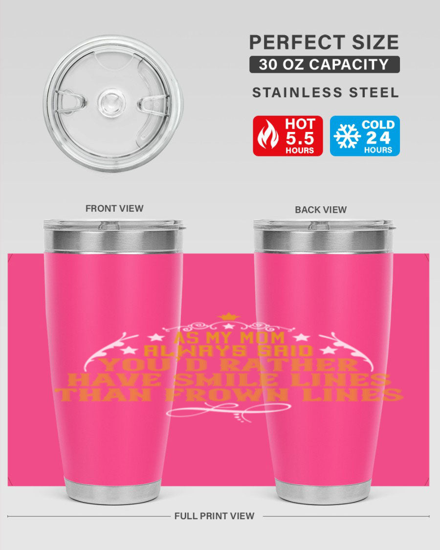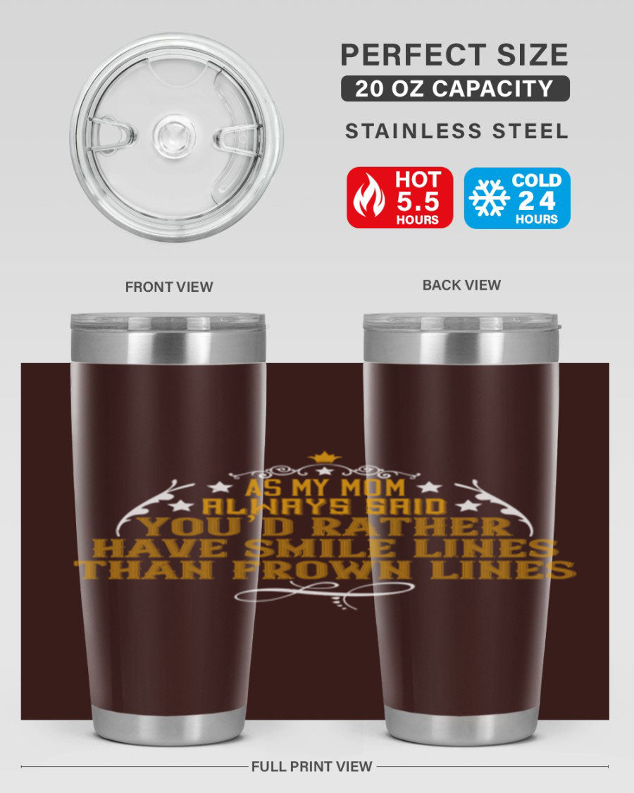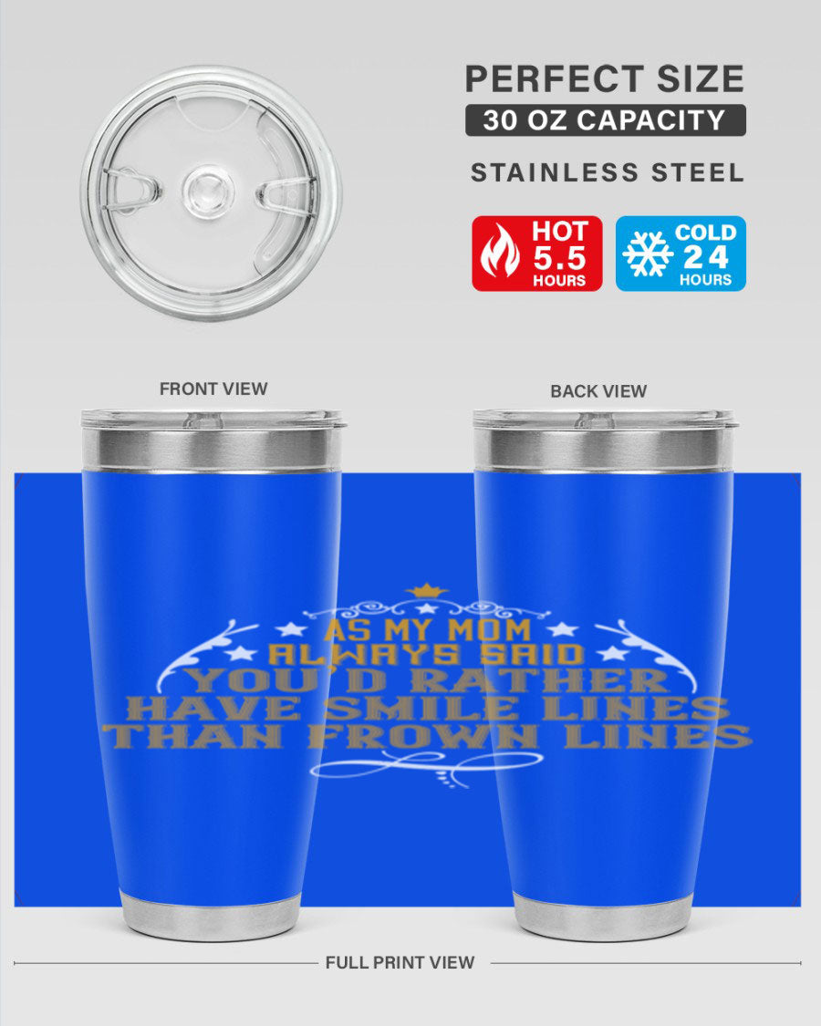 The 'As My Mom Always Said' tumbler comes with a press-in, drink-thru lid that allows for easy sipping without the hassle of spills. Its design fits perfectly in most cup holders, making it an ideal companion for road trips, commutes, or outdoor adventures. Whether you're heading to work or enjoying a day at the park, this tumbler is designed for convenience.
