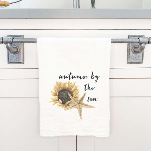 The Autumn by the Sea cotton tea towel makes a thoughtful gift for friends and family who appreciate quality kitchenware. Whether it's for a housewarming, wedding, or holiday gift, this tea towel is sure to impress. Its unique design and practical use make it a cherished addition to any kitchen.