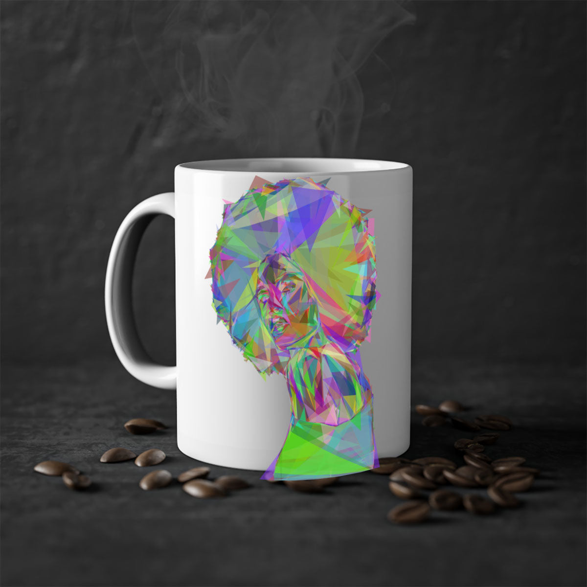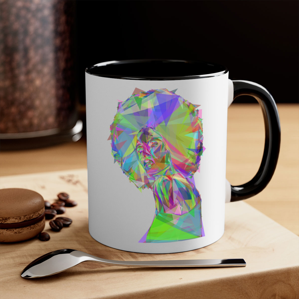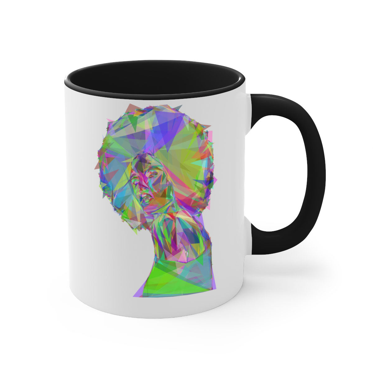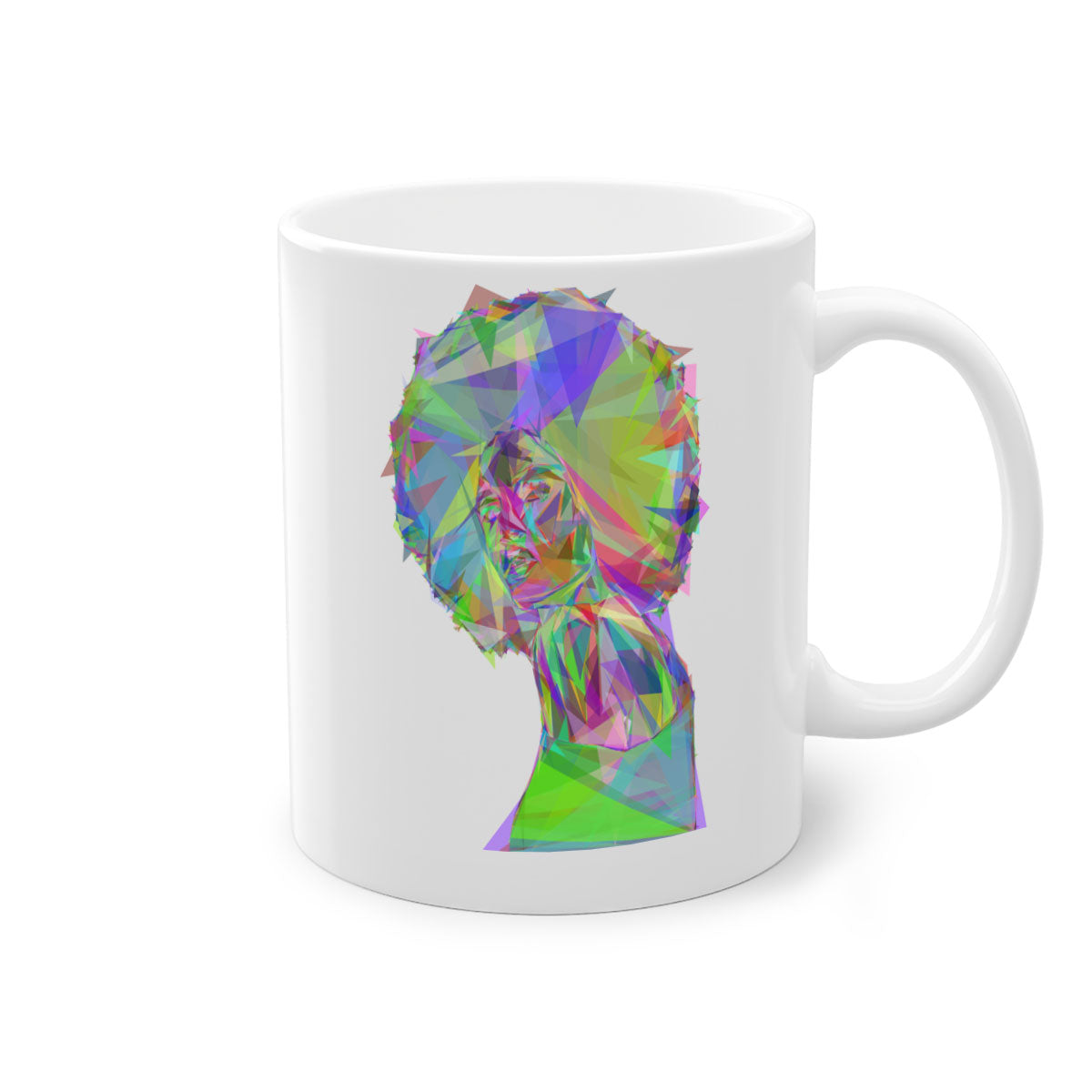 Introducing the beautiful black woman geometric prismatic 59# Mug, a stunning addition to your kitchenware collection. This mug is not just a vessel for your favorite beverages; it’s a statement piece that celebrates beauty and culture. Perfect for enjoying big gulps of coffee, tea, or any beverage, this mug combines functionality with style, making it an ideal choice for anyone who appreciates art and design in their everyday life.