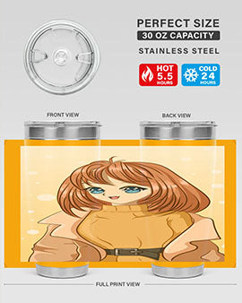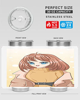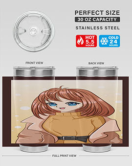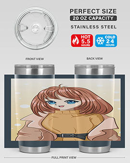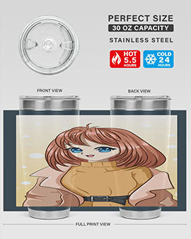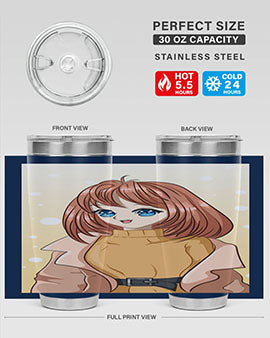 Featuring a stunning design of a girl with short hair dressed in winter clothes, this tumbler is perfect for anime lovers. The vibrant colors and intricate details make it a standout piece that you can proudly show off. The design is printed in the USA, ensuring high-quality standards and vibrant colors that won't fade over time.