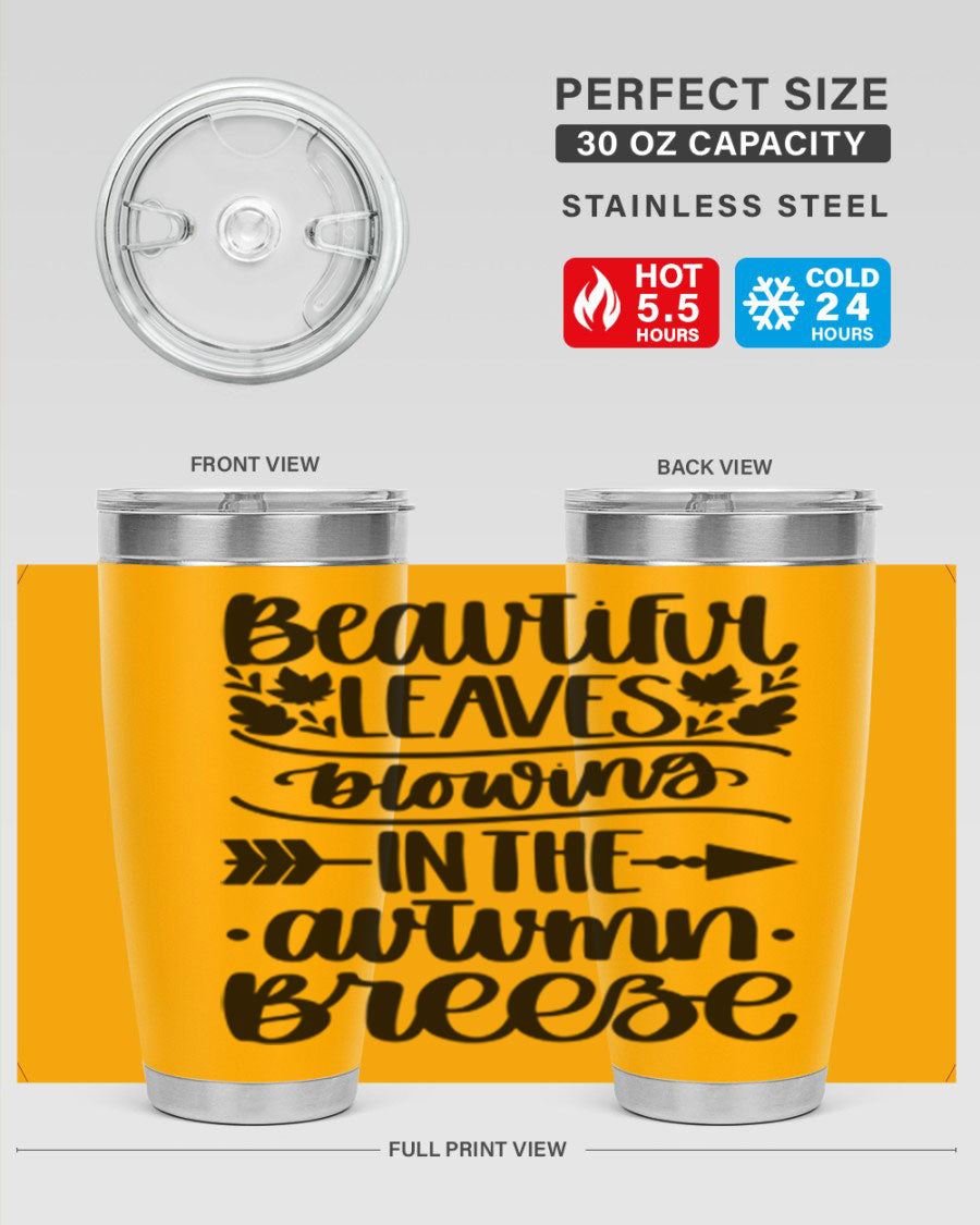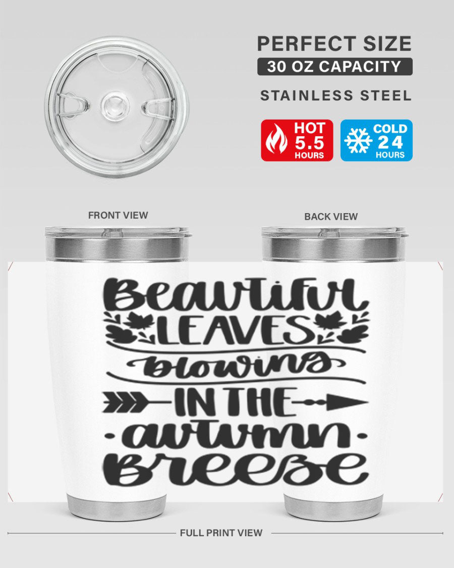 In summary, the Beautiful Leaves Blowing In The Autumn Breeze tumbler is a must-have for anyone who loves fall and wants to enjoy their drinks in style. With its impressive temperature retention, practical design, and beautiful aesthetics, this tumbler is sure to become a favorite accessory for all your beverage needs.