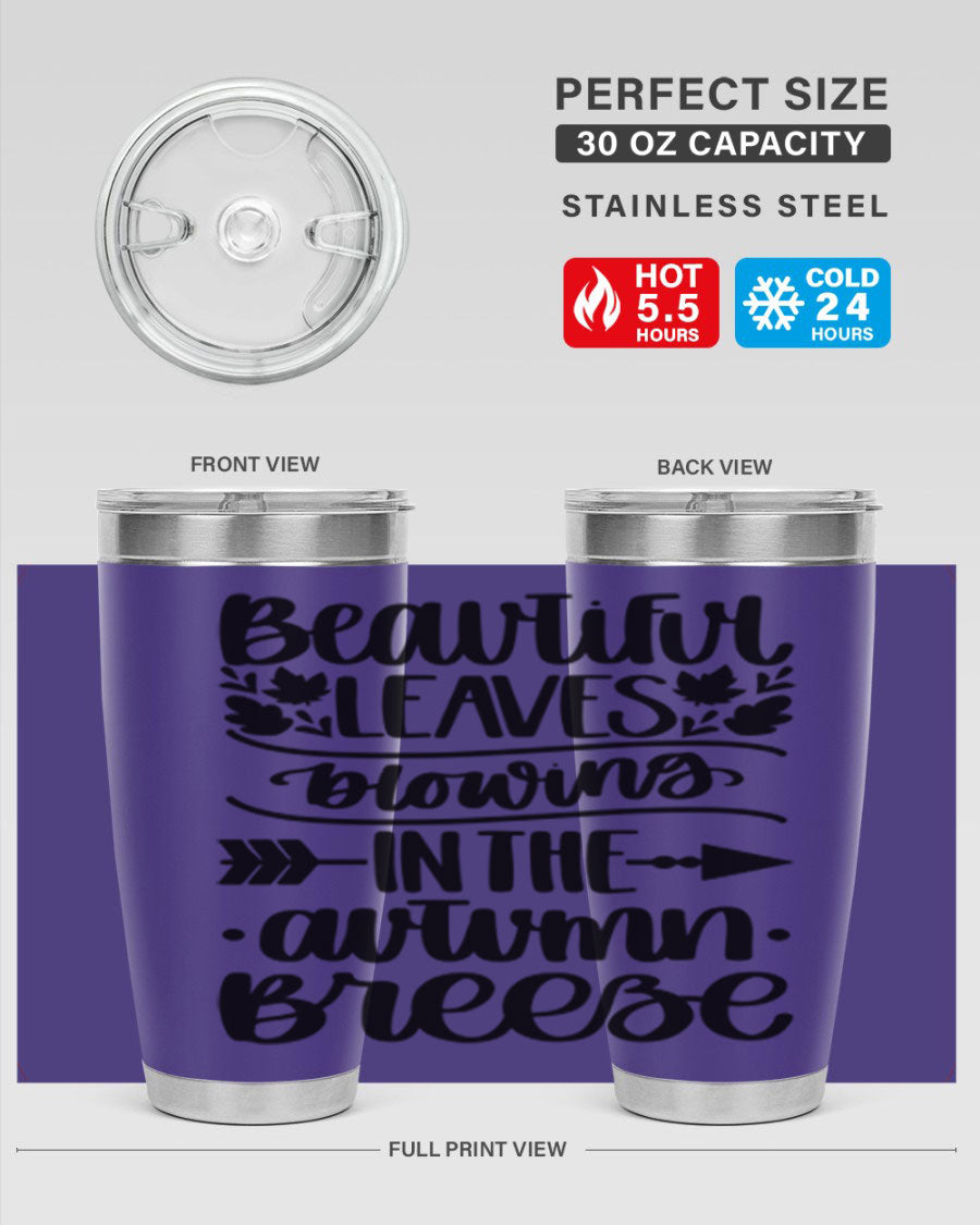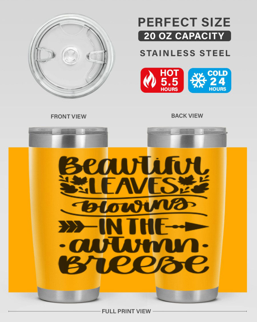 The Beautiful Leaves Blowing In The Autumn Breeze tumbler is the perfect companion for those who love to enjoy their beverages in style, especially during the fall season. This stunning tumbler features a beautiful autumn leaves design that captures the essence of the season, making it an ideal gift for friends and family or a delightful treat for yourself.
