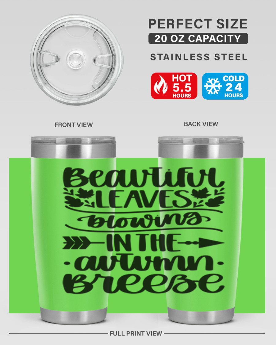 The Beautiful Leaves Blowing In The Autumn Breeze tumbler is not just about looks; it is designed for practicality as well. It comes with a press-in, drink-thru lid that allows for easy sipping without the worry of spills. The tumbler fits perfectly in most cup holders, making it a great choice for travel, whether you're commuting to work or heading out on a road trip.