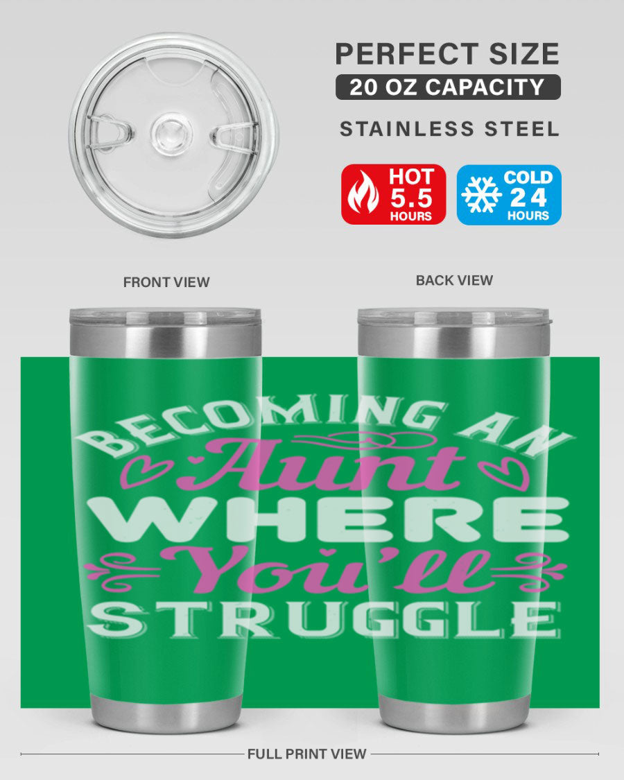 The Becoming an Aunt Tumbler makes a thoughtful gift for any aunt in your life. Whether it's for a birthday, holiday, or just because, this tumbler is sure to bring a smile to her face. It's a practical gift that she can use daily, reminding her of her special role in the family.