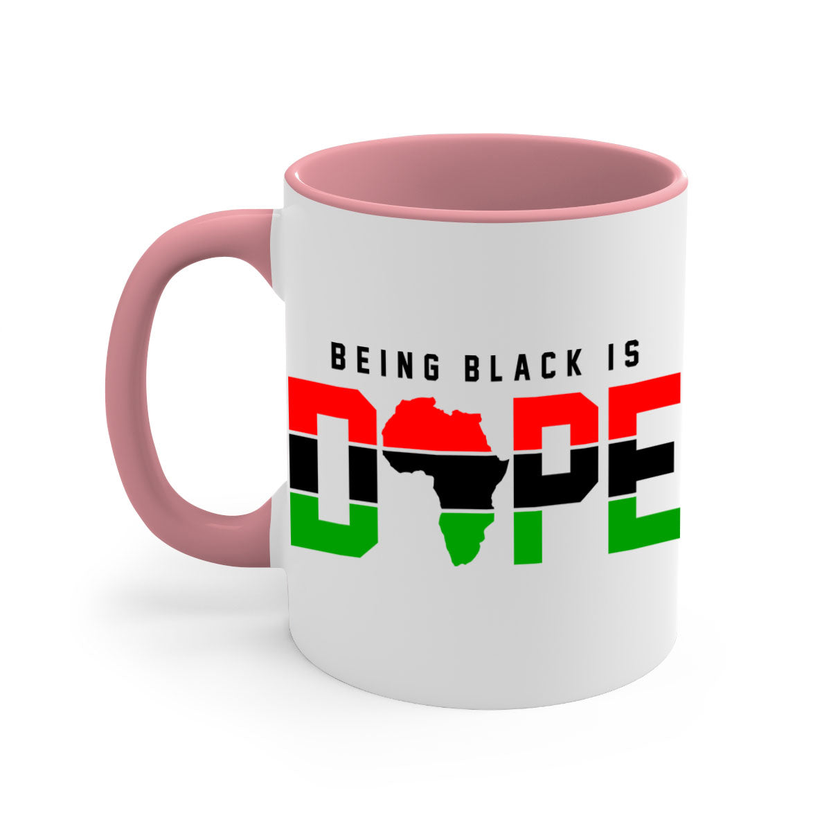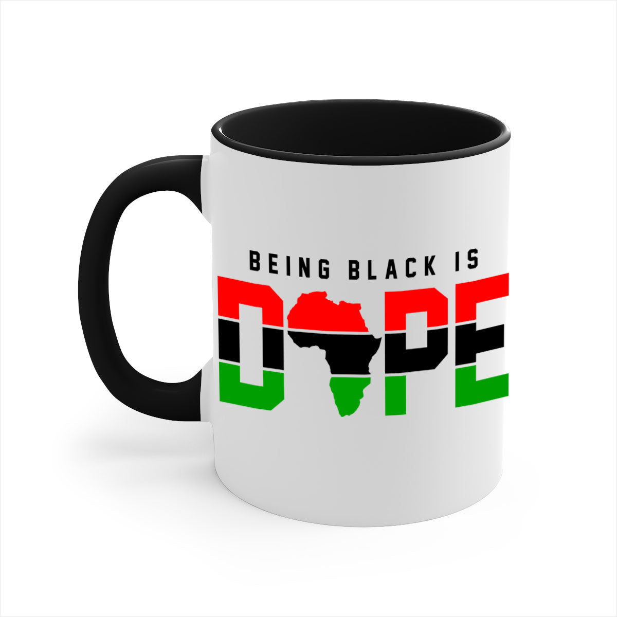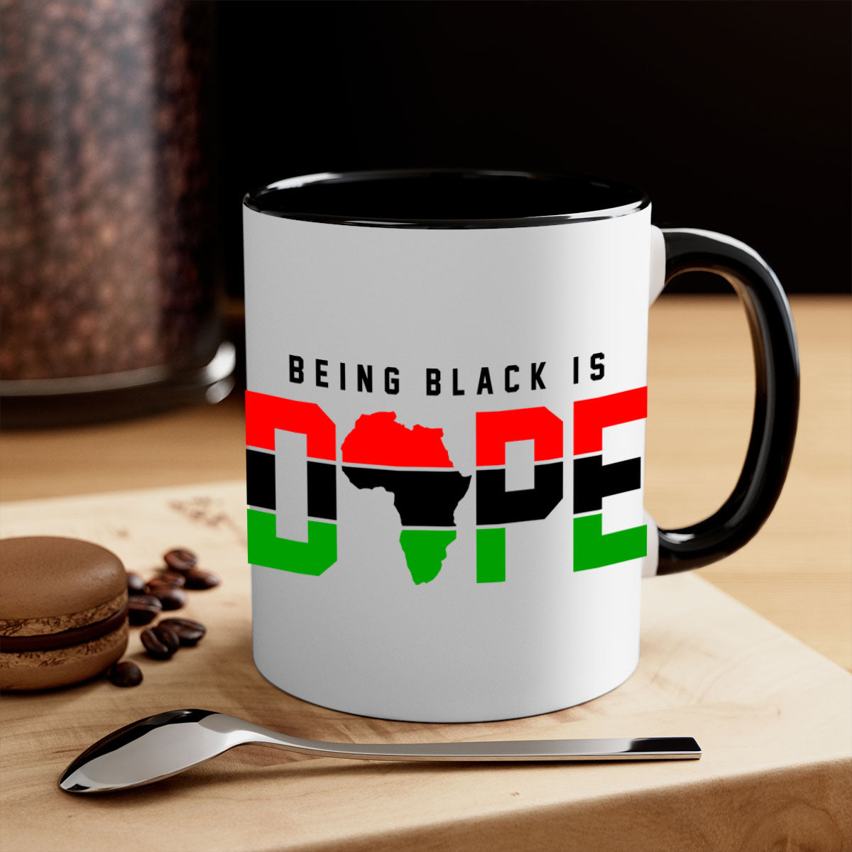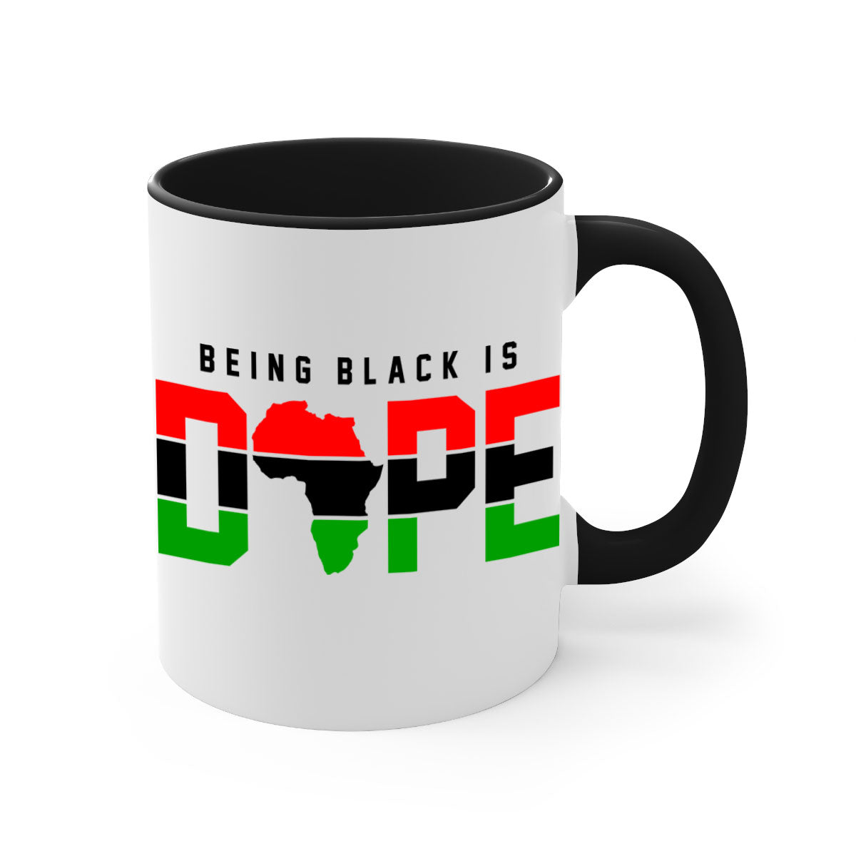 The 'Being Black is Dope Africa 257#' Mug features a chic two-tone design that adds a pop of color to your morning routine. Available in five different color options, you can choose the one that best complements your style. The colored handle and interior create a striking contrast against the glossy finish, making this mug not just a beverage holder but a statement piece.