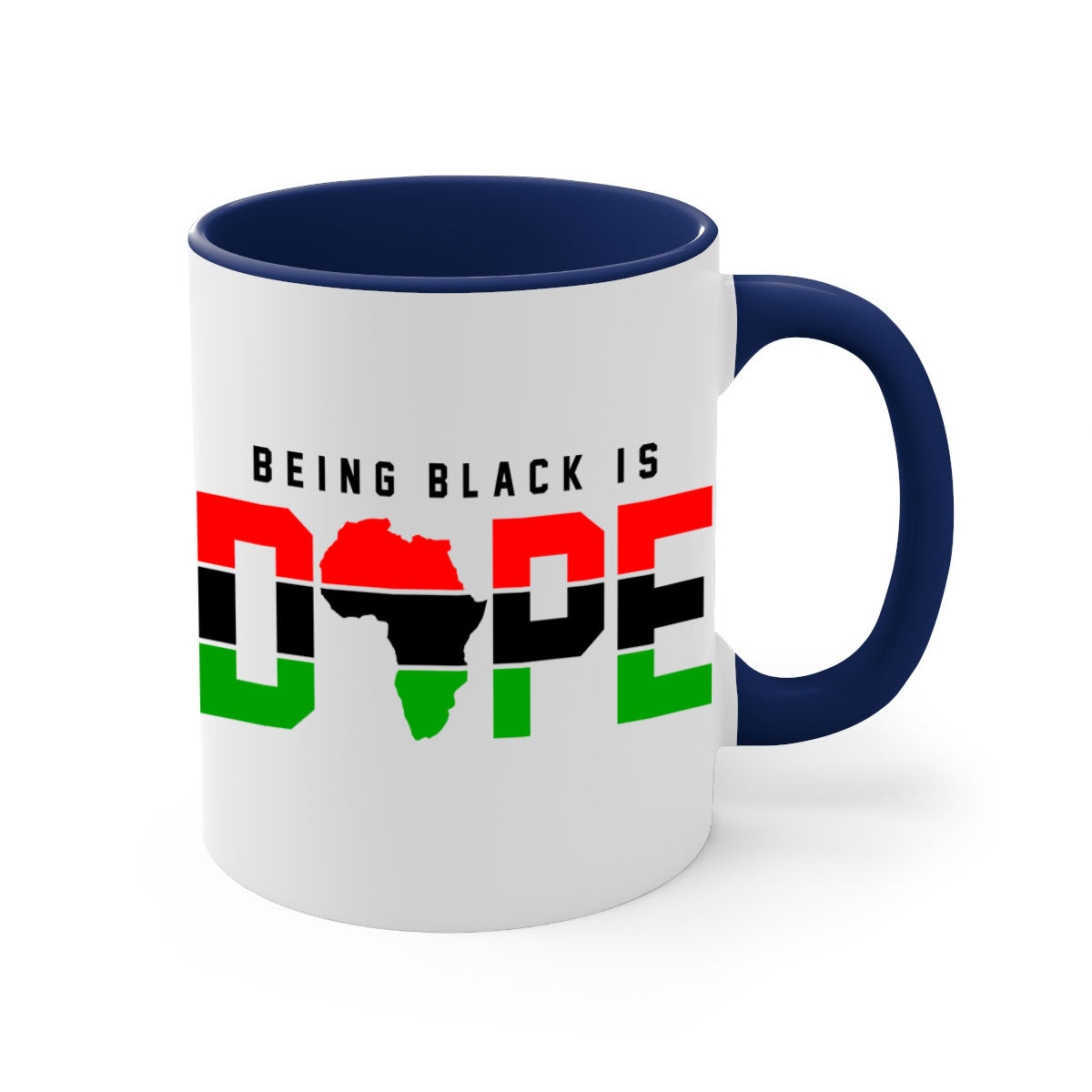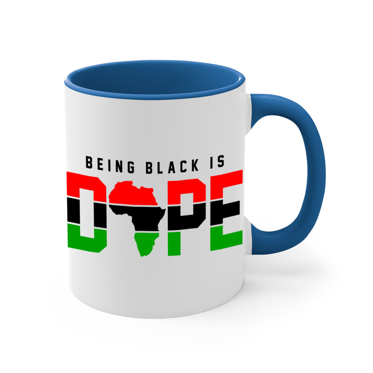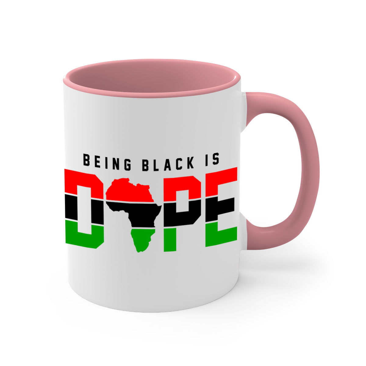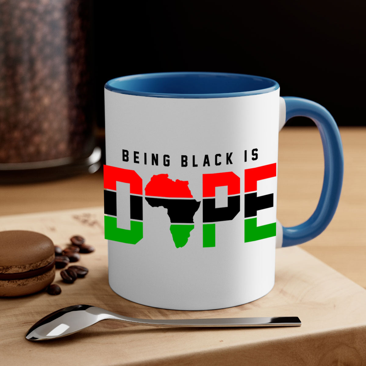 The 'Being Black is Dope Africa 257#' Mug features a chic two-tone design that adds a pop of color to your morning routine. Available in five different color options, you can choose the one that best complements your style. The colored handle and interior create a striking contrast against the glossy finish, making this mug not just a beverage holder but a statement piece.