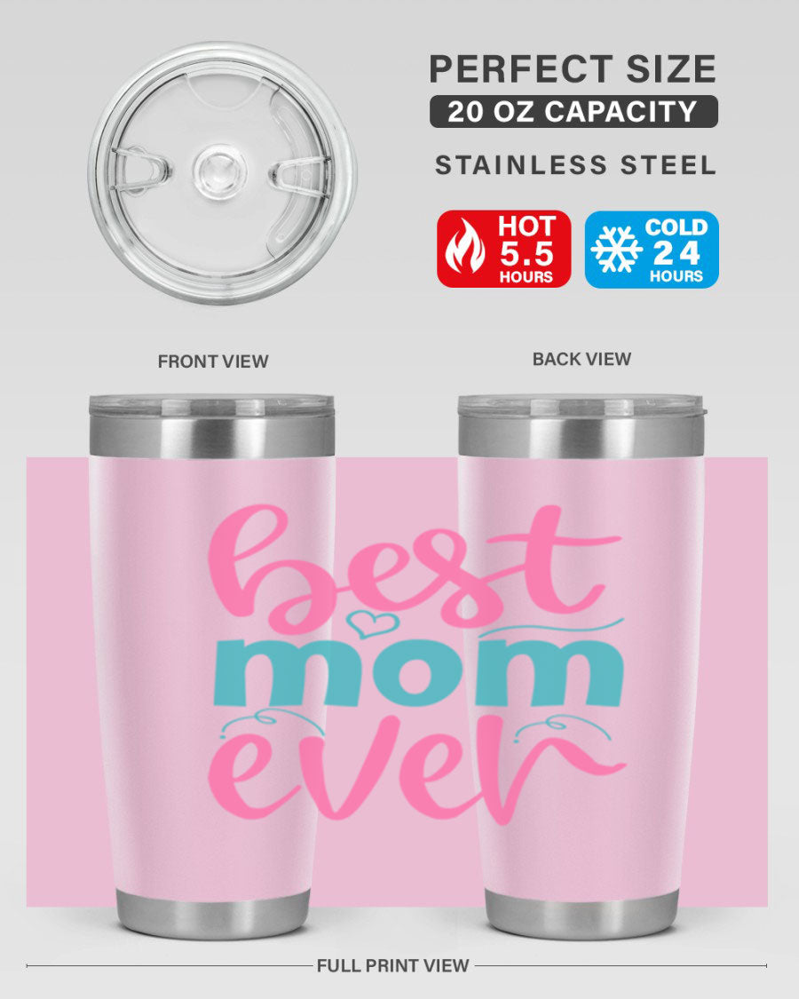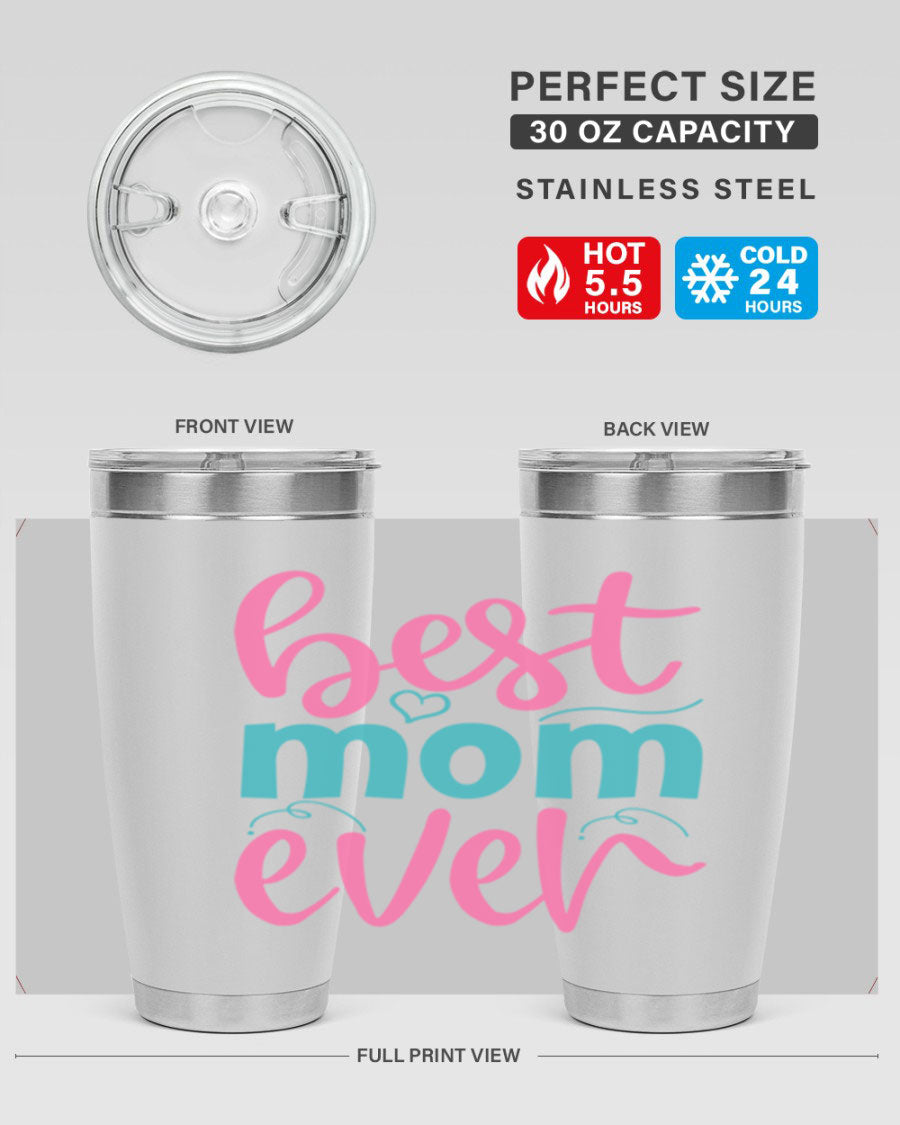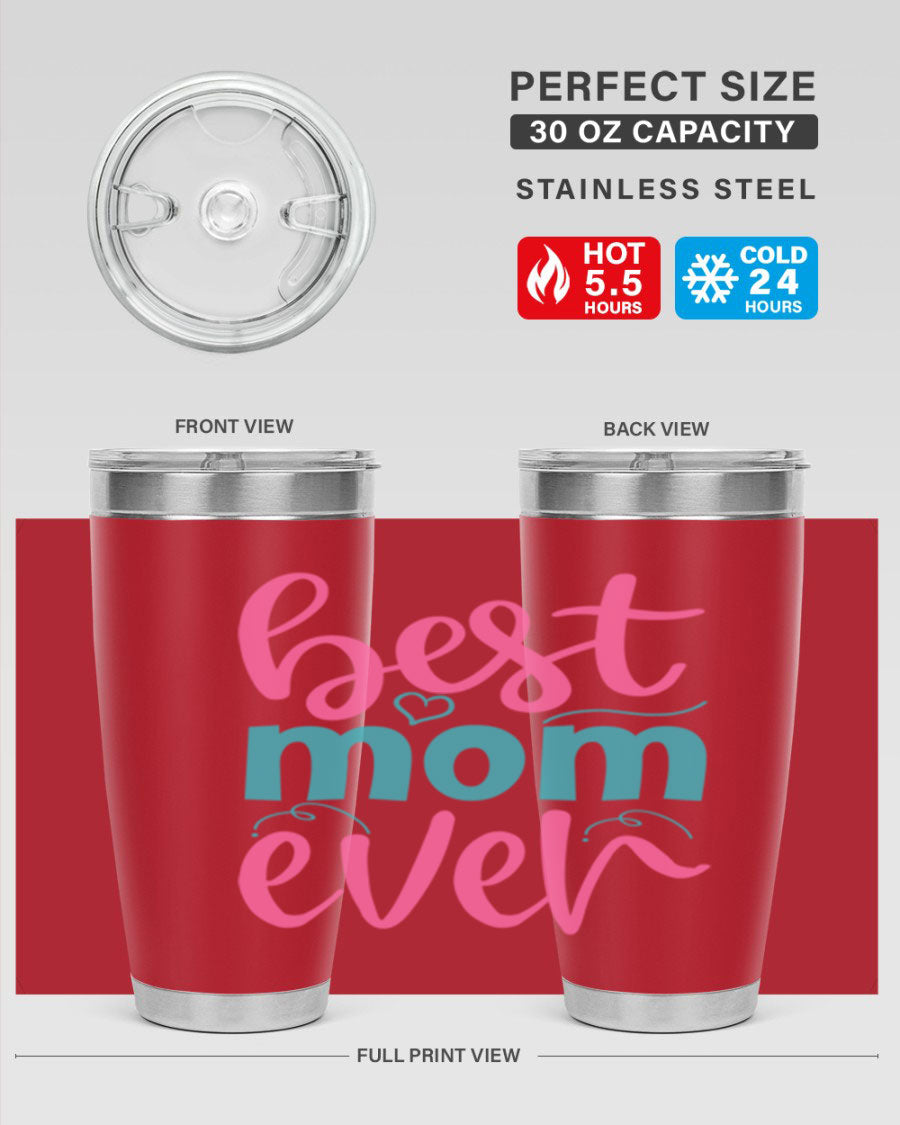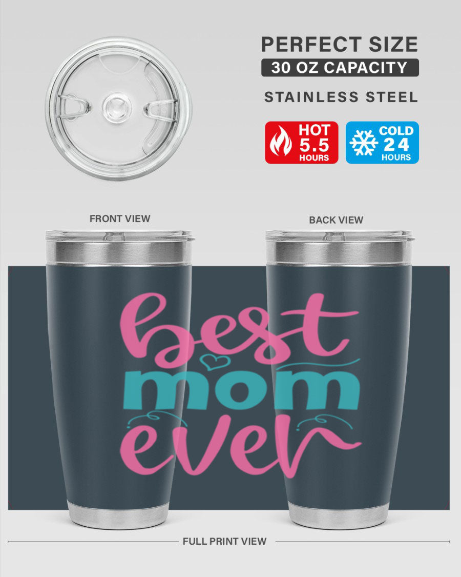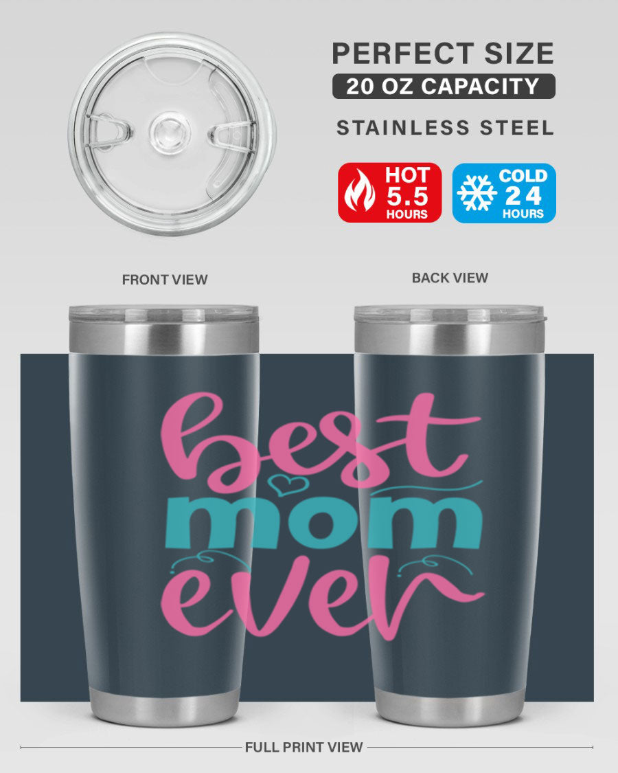 Best Mom Ever 275# Tumbler in stainless steel with a stylish design, perfect for hot and cold beverages.