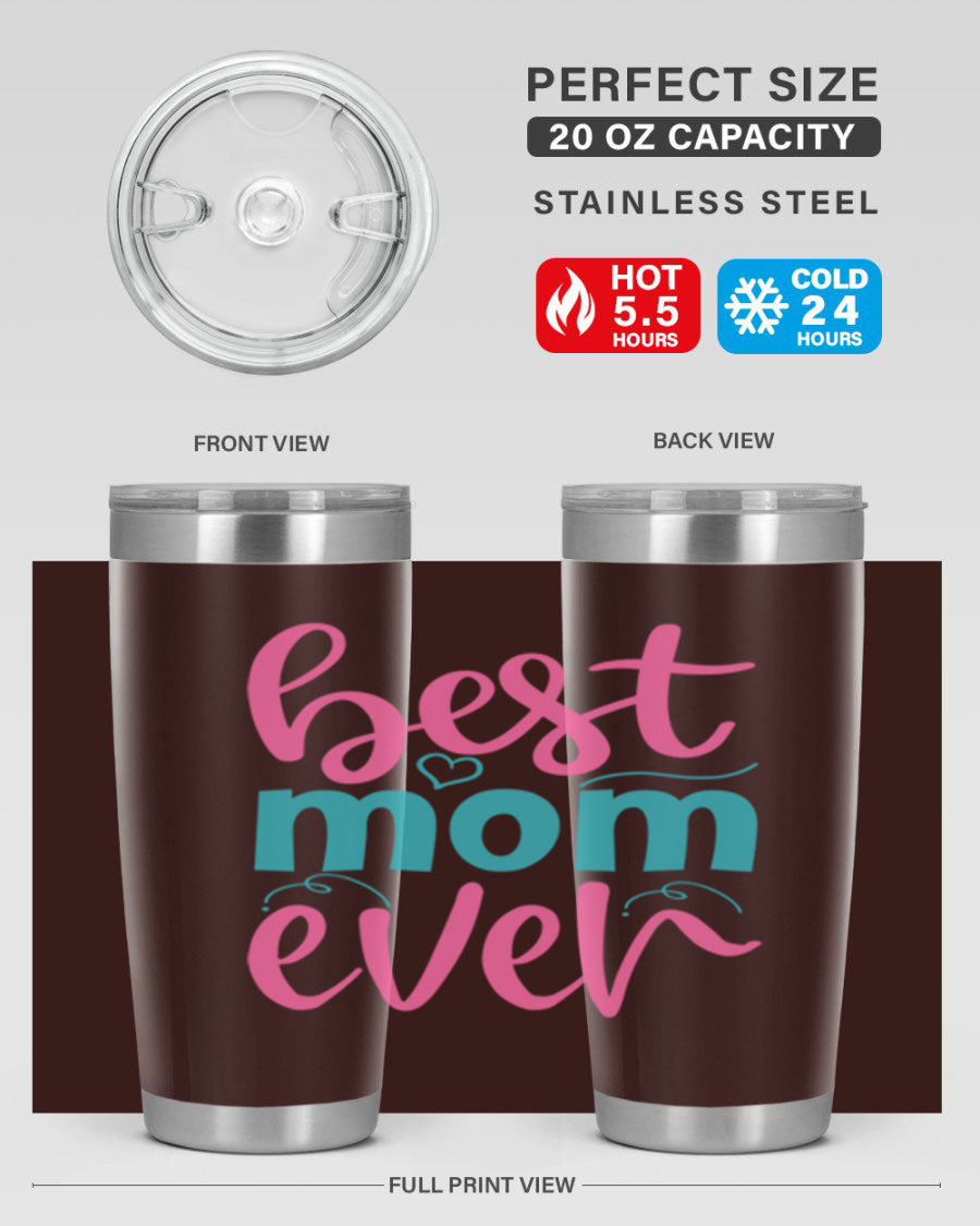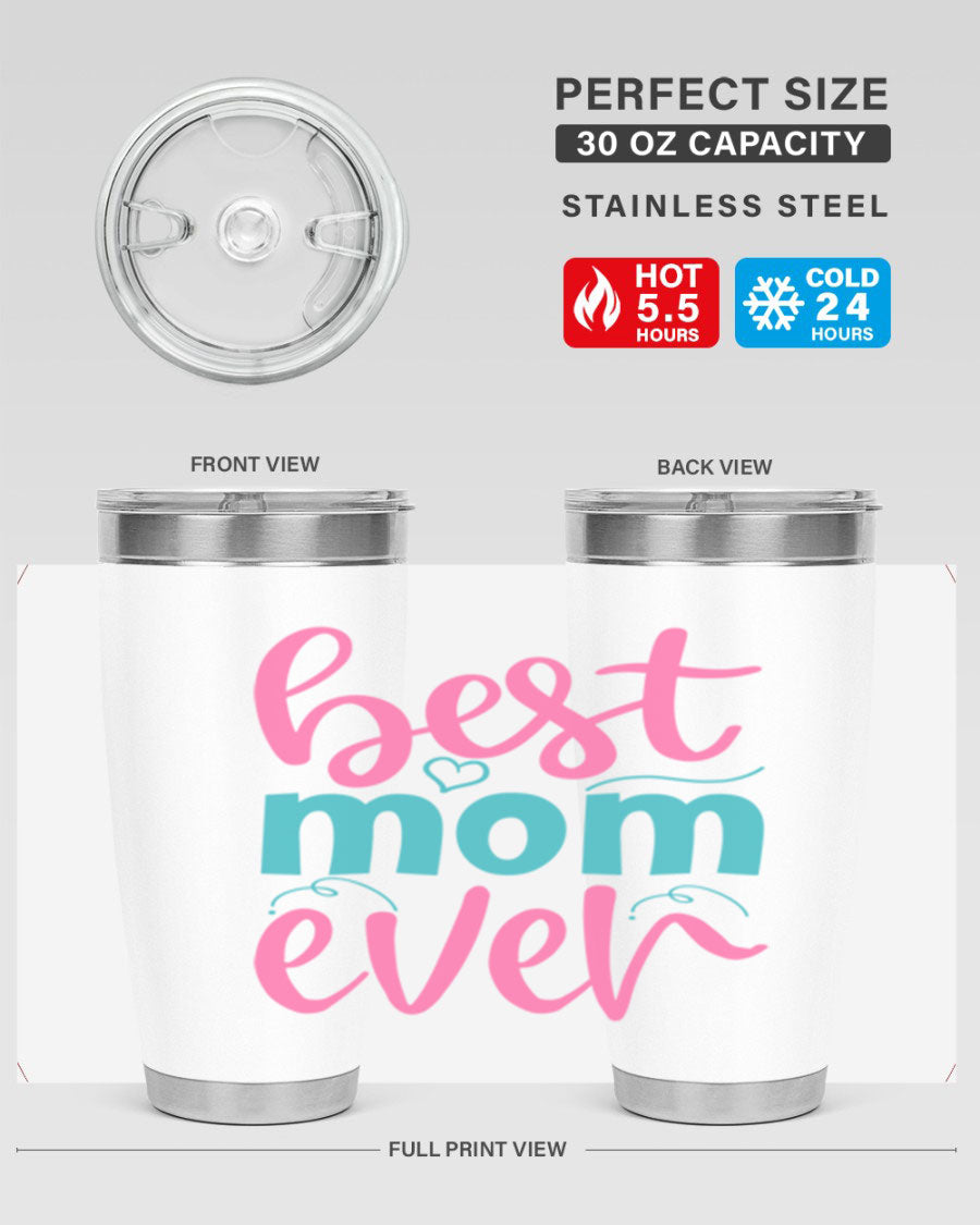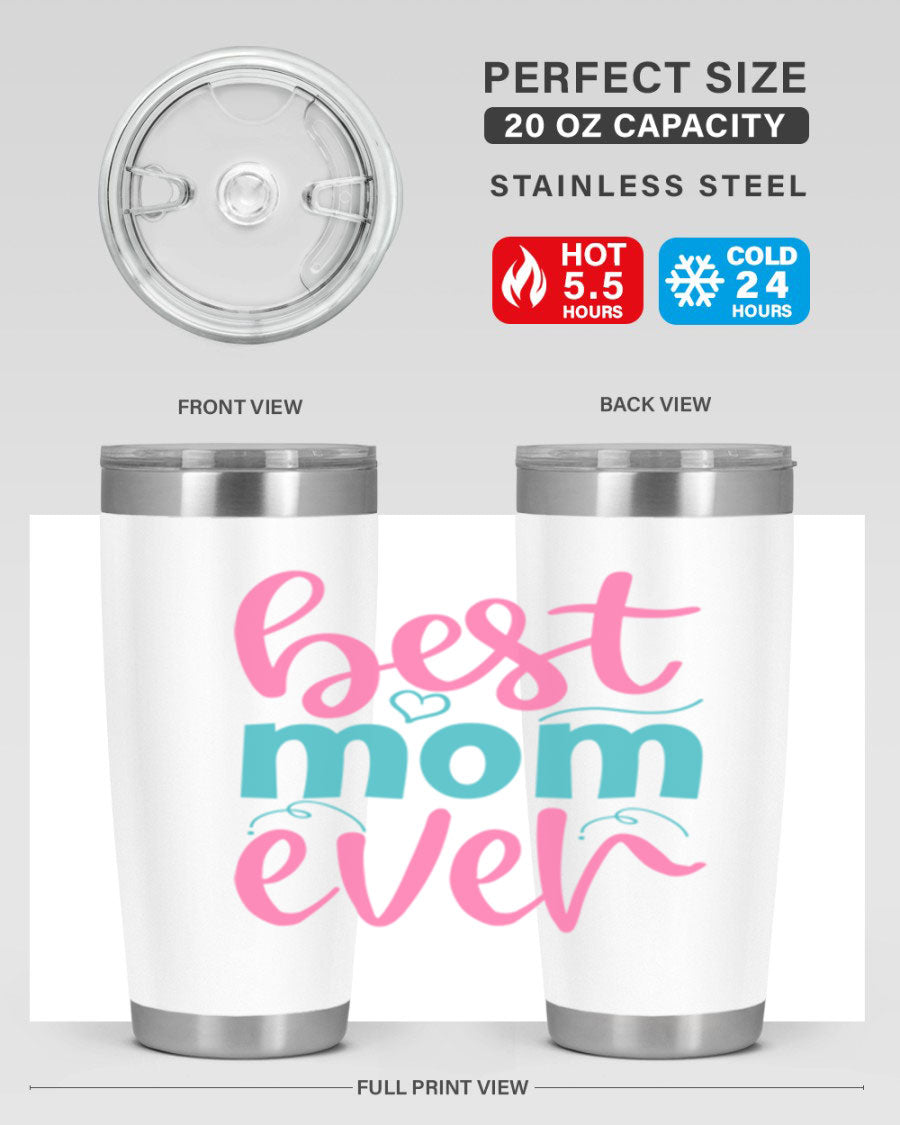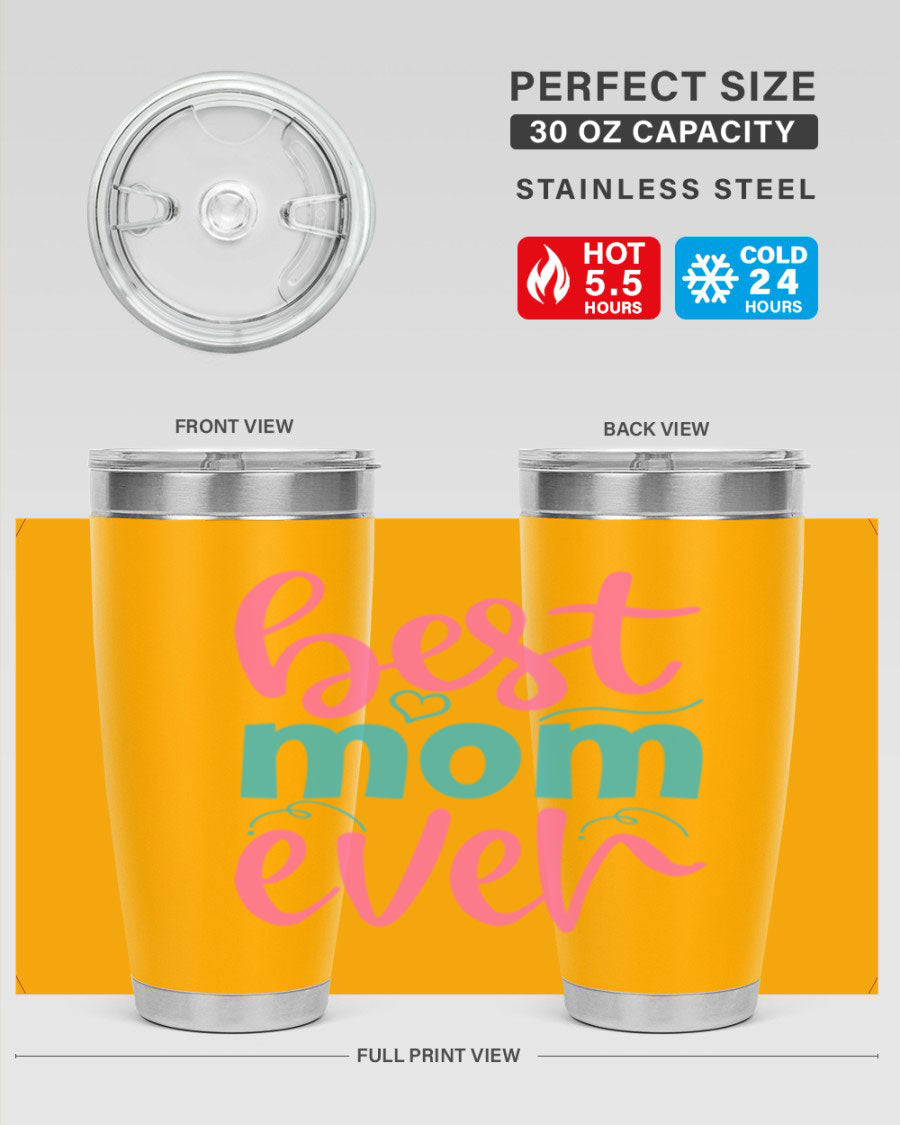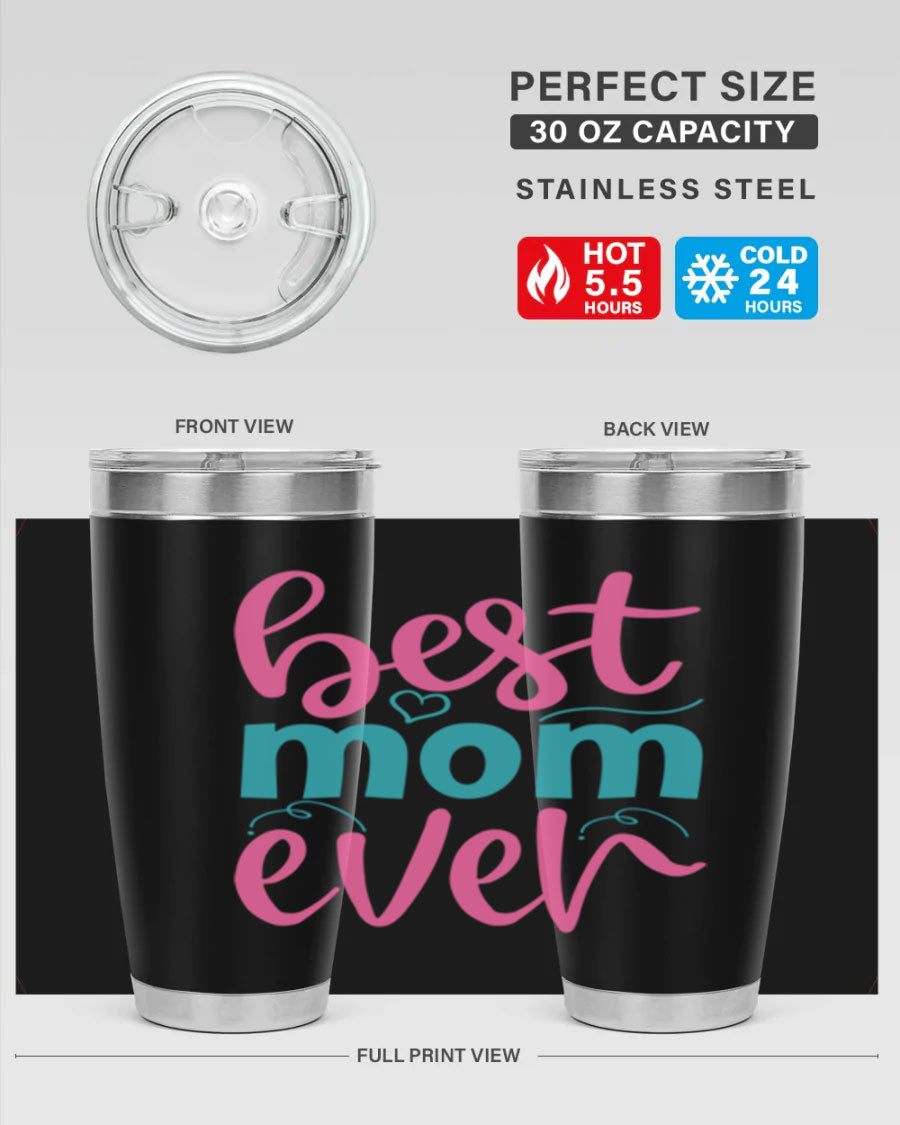 Best Mom Ever 275# Tumbler in stainless steel with a stylish design, perfect for hot and cold beverages.