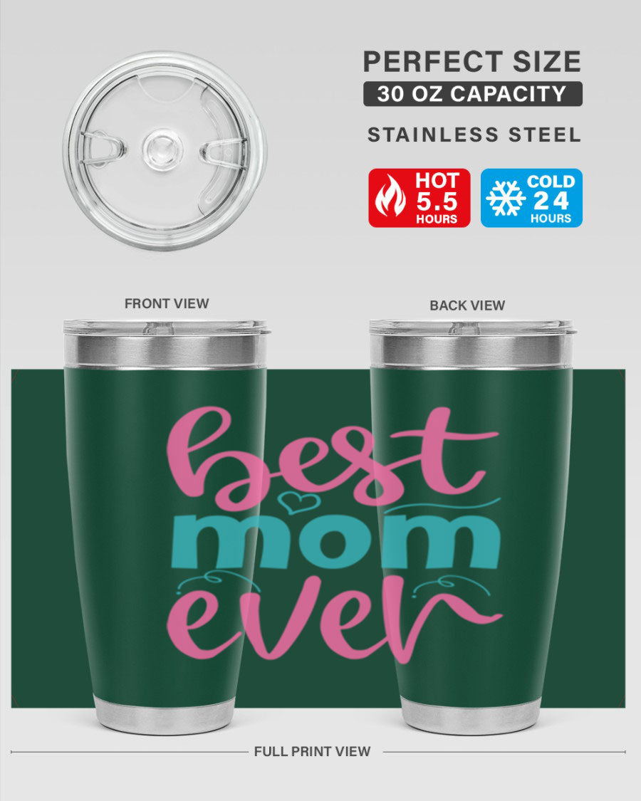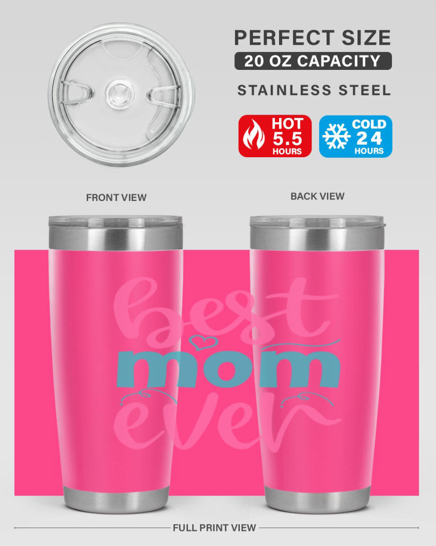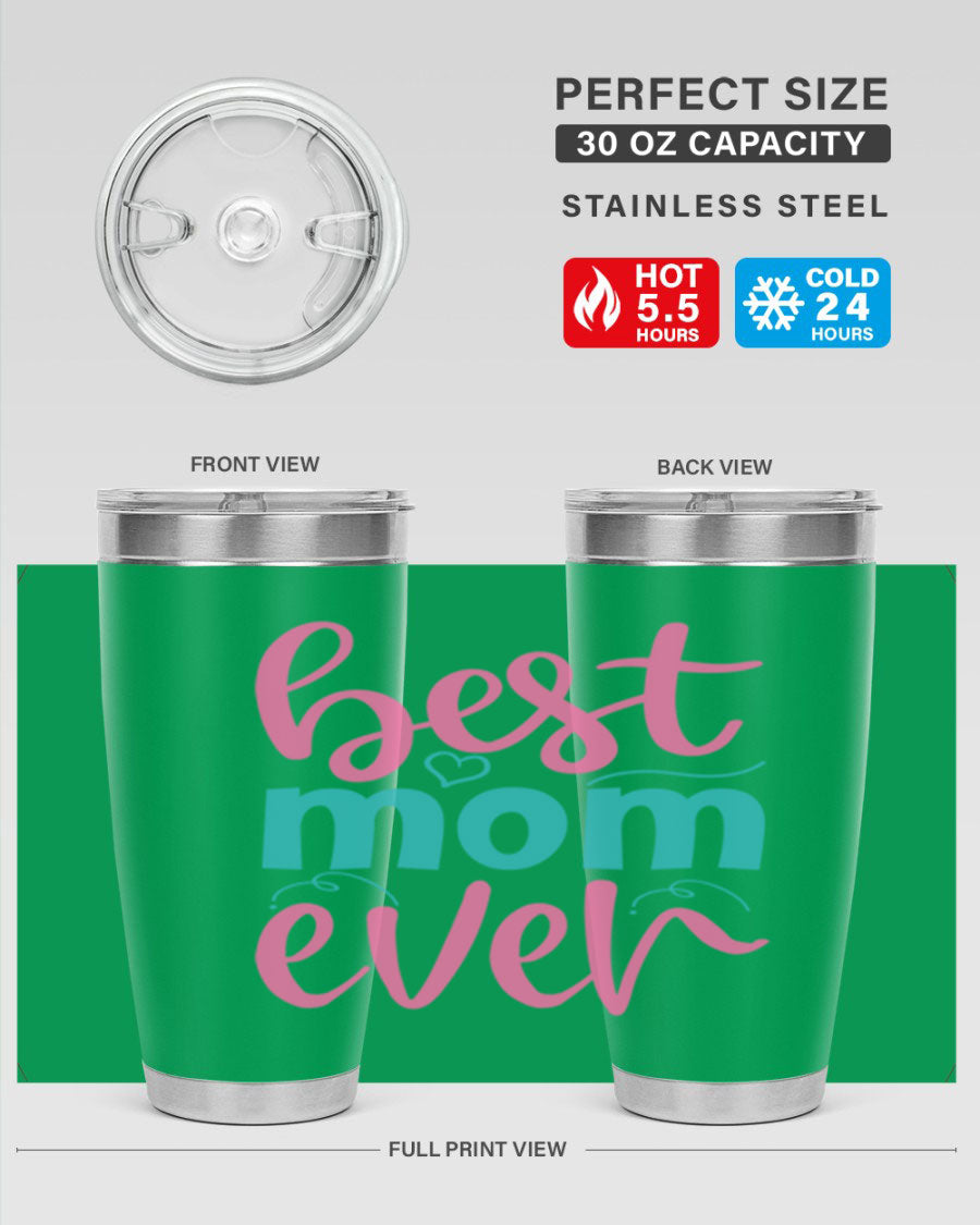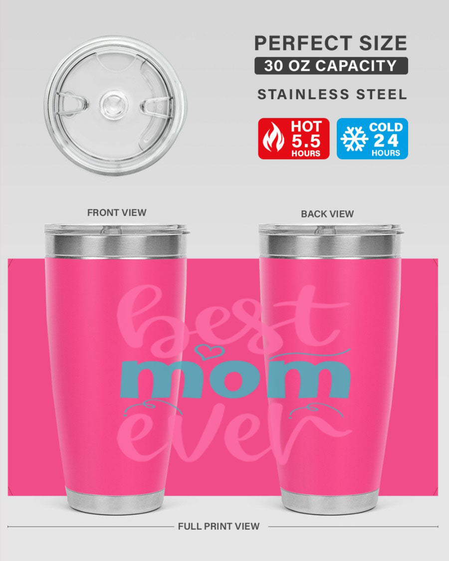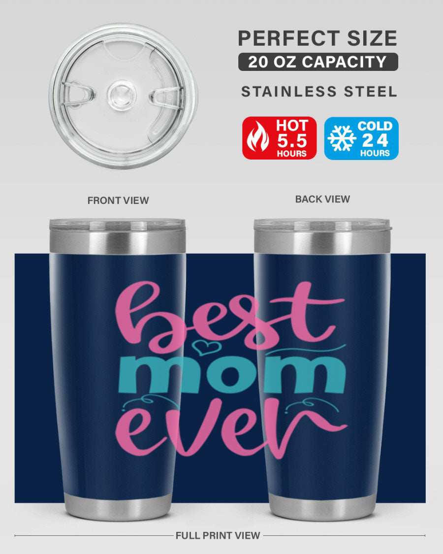 Best Mom Ever 275# Tumbler in stainless steel with a stylish design, perfect for hot and cold beverages.