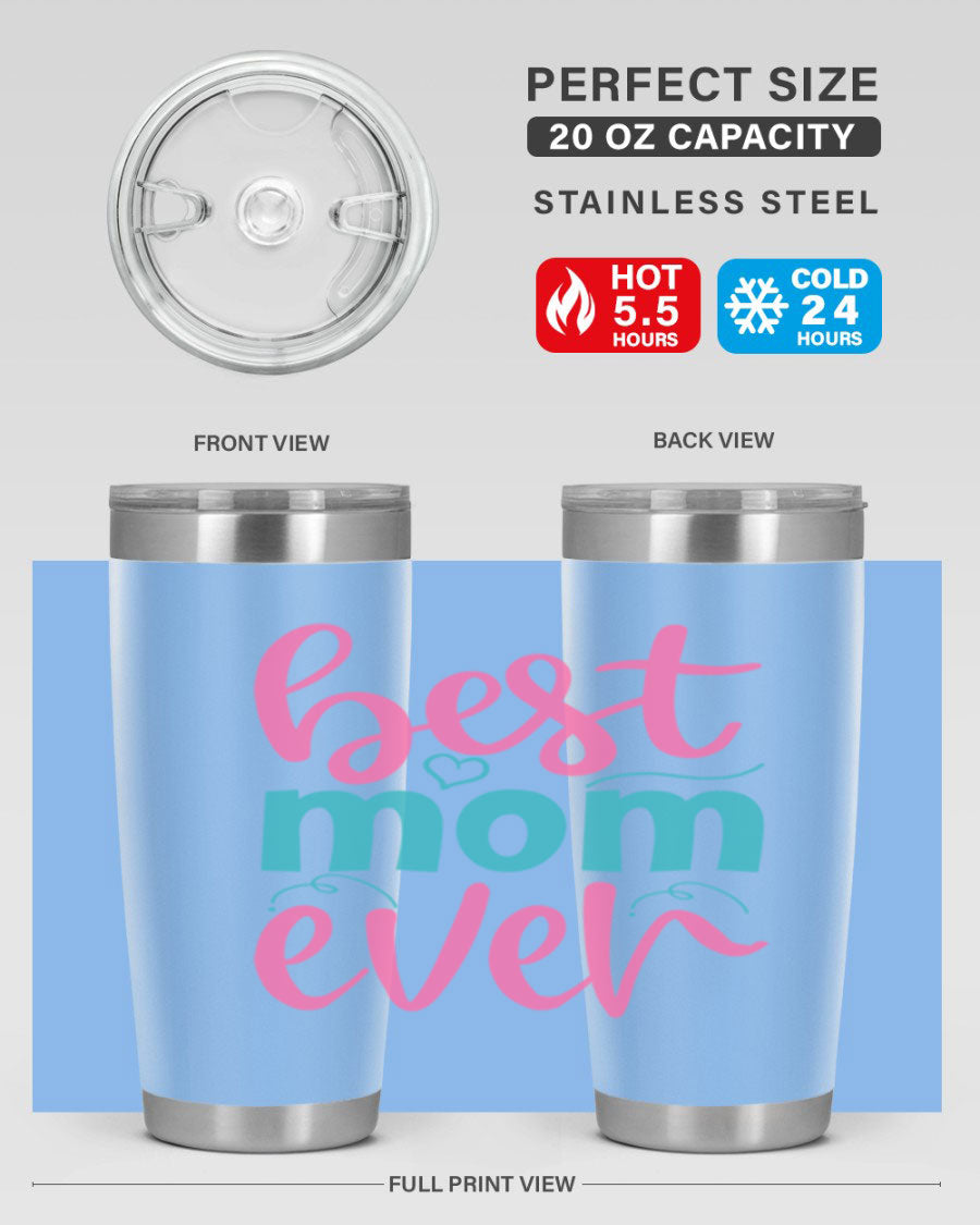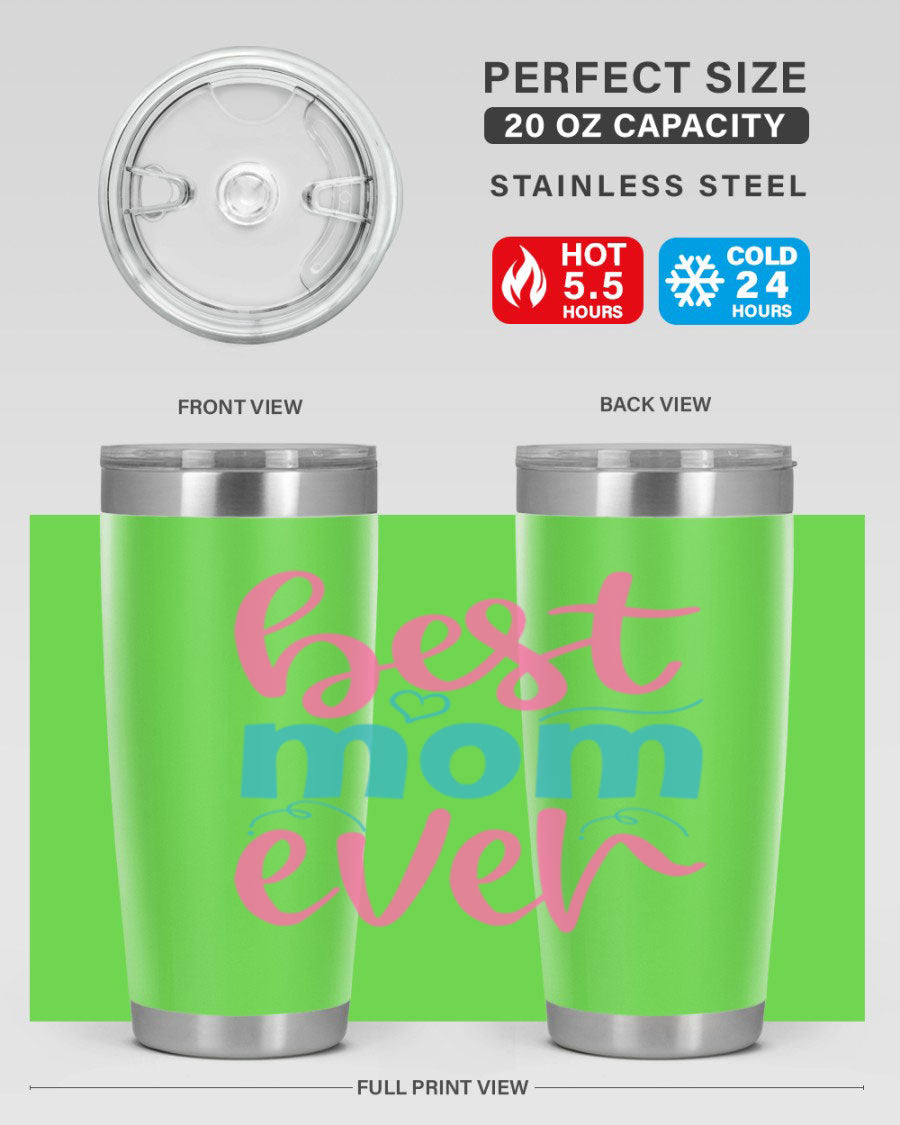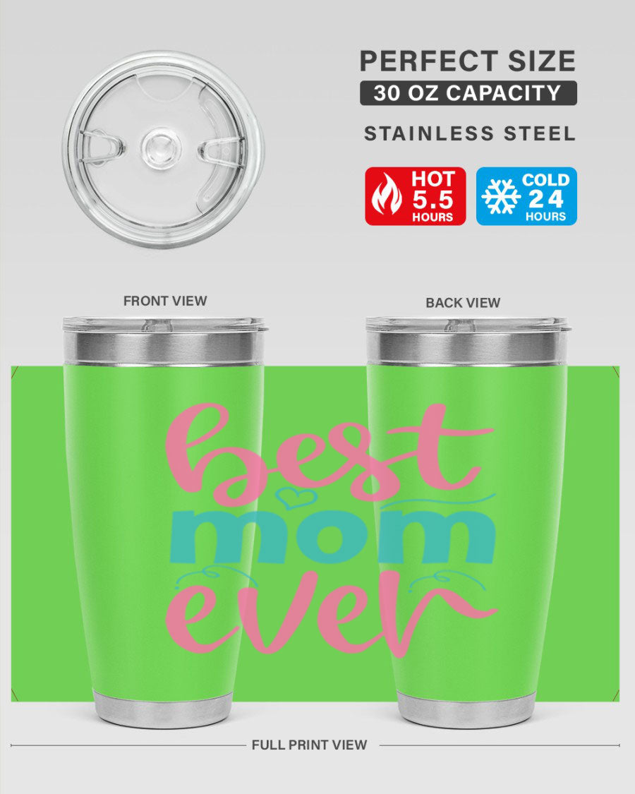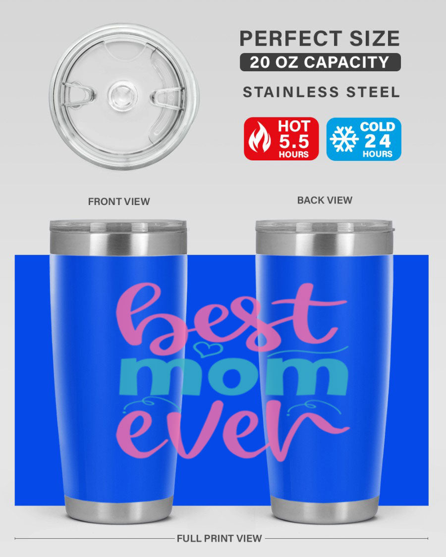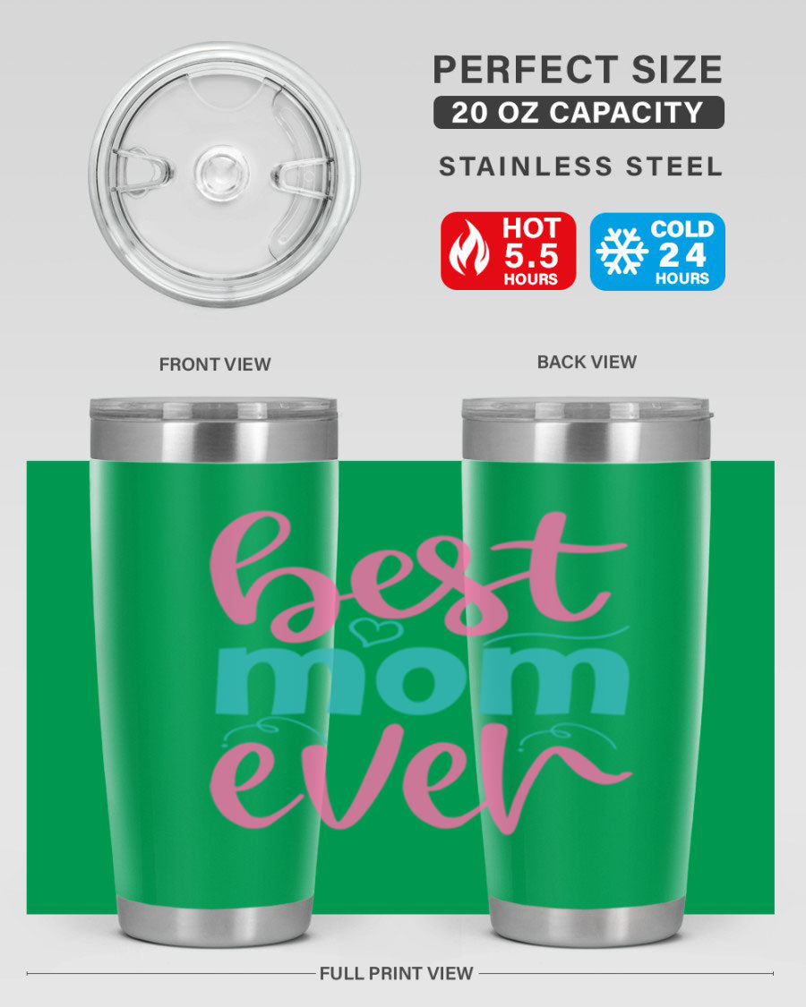 Best Mom Ever 275# Tumbler in stainless steel with a stylish design, perfect for hot and cold beverages.