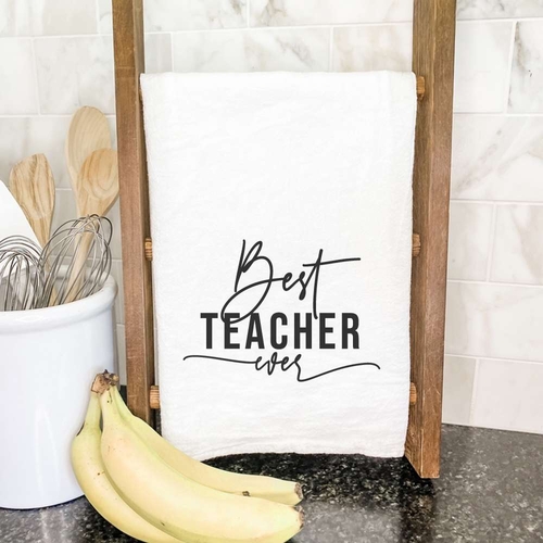 Choosing the Best Teacher Ever cotton tea towel means investing in quality and sustainability. Our commitment to using eco-friendly materials and processes ensures that you are making a responsible choice for your home and the planet. Plus, the unique design adds a personal touch that is often missing in standard kitchen textiles.