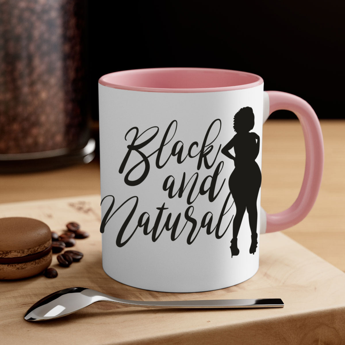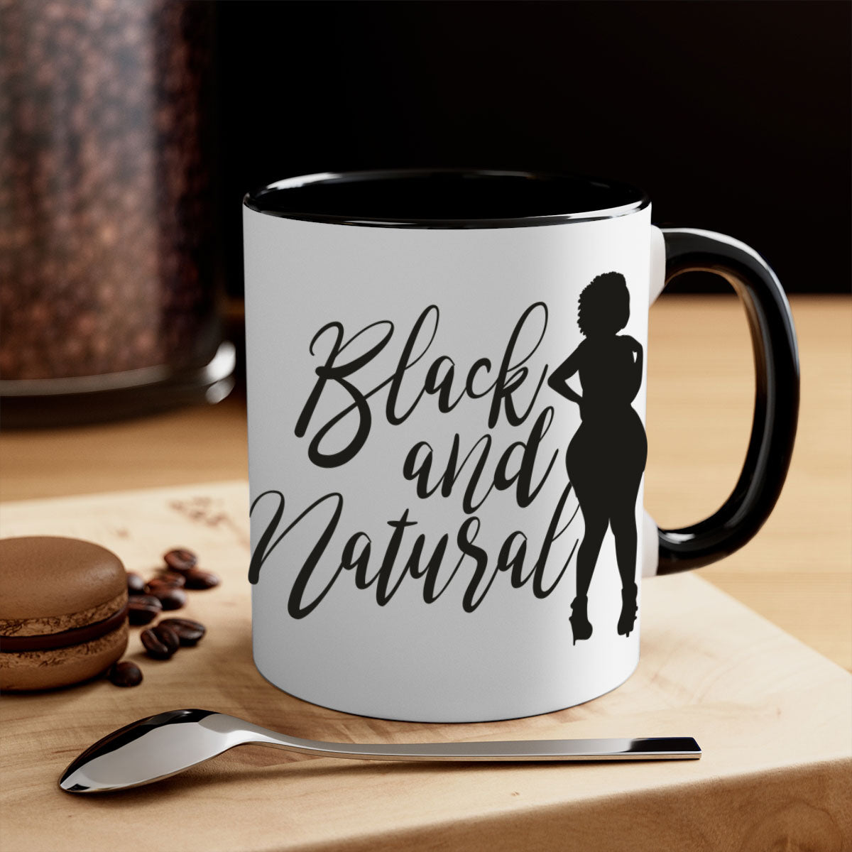 Black and Natural 22# Mug featuring a glossy finish with a colored handle and interior, available in multiple colors.