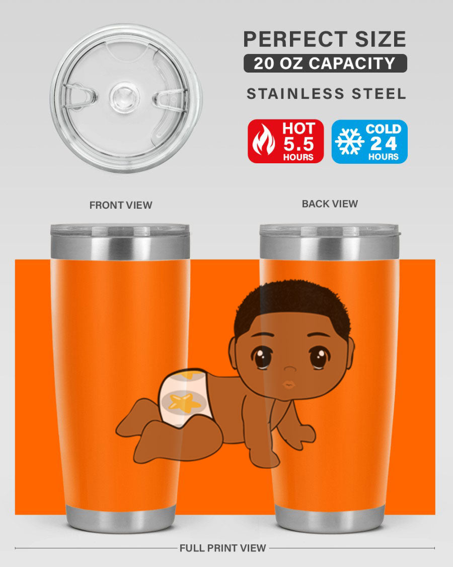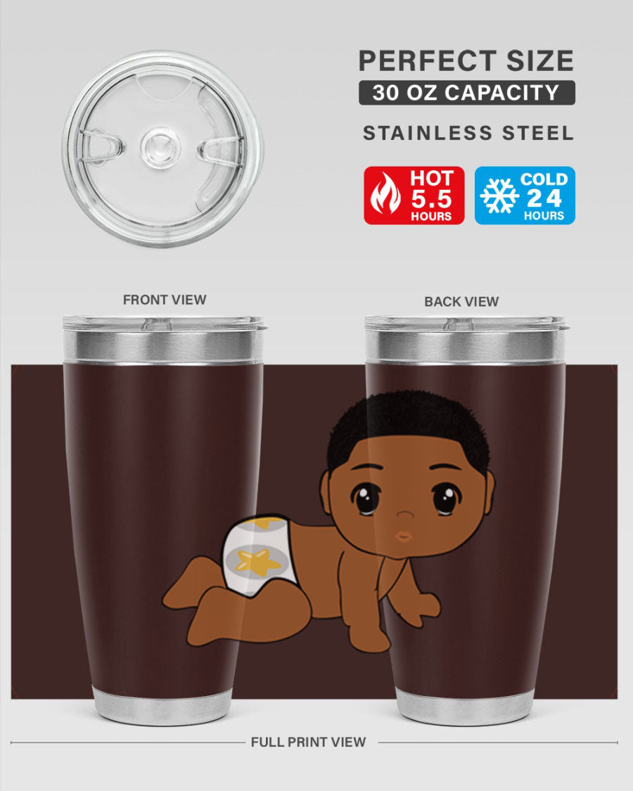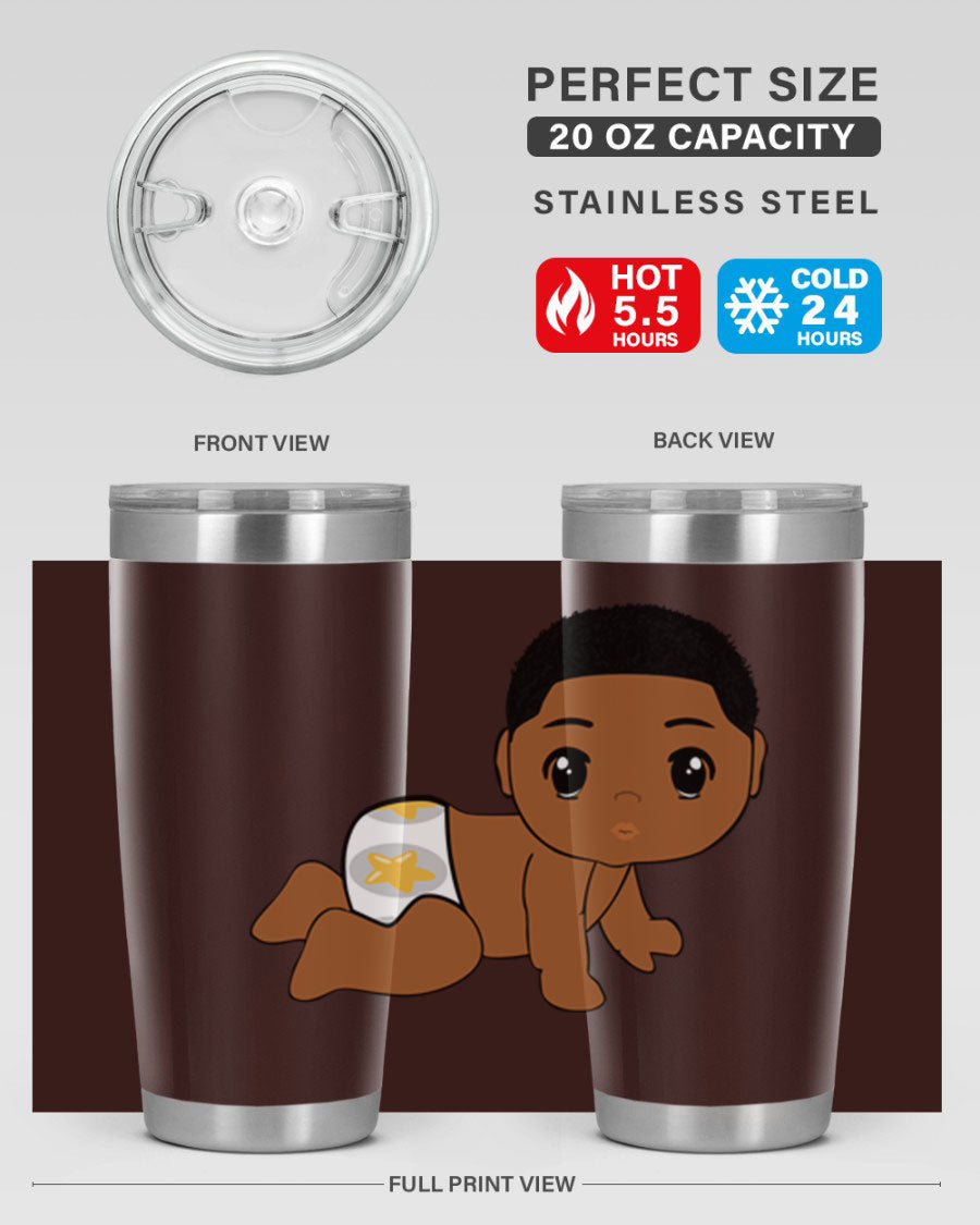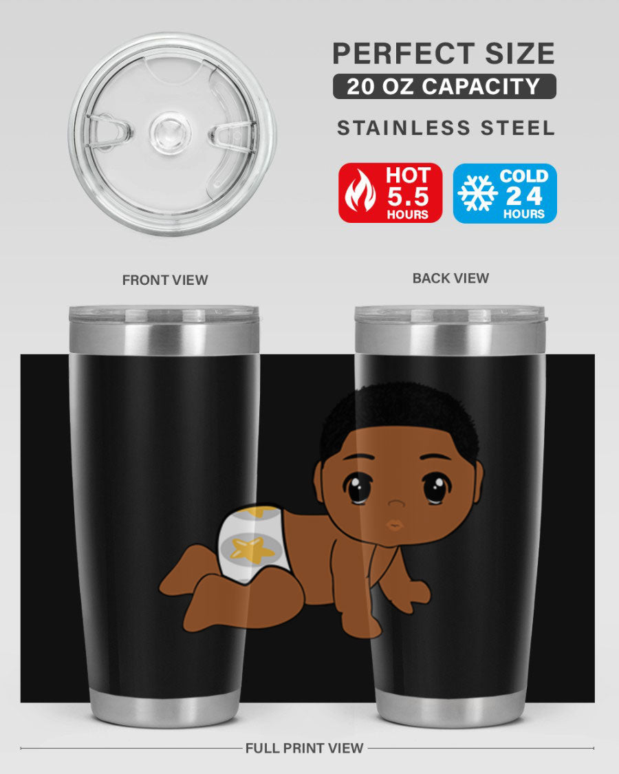 The black baby boy 3# tumbler is crafted from double wall vacuum stainless steel, which not only provides excellent insulation but also adds to its sleek and modern design. The copper lining enhances its thermal efficiency, allowing your beverages to stay hot for up to 5.5 hours and cold for an impressive 24 hours. This means you can enjoy your favorite drinks at the perfect temperature, no matter where you are.
