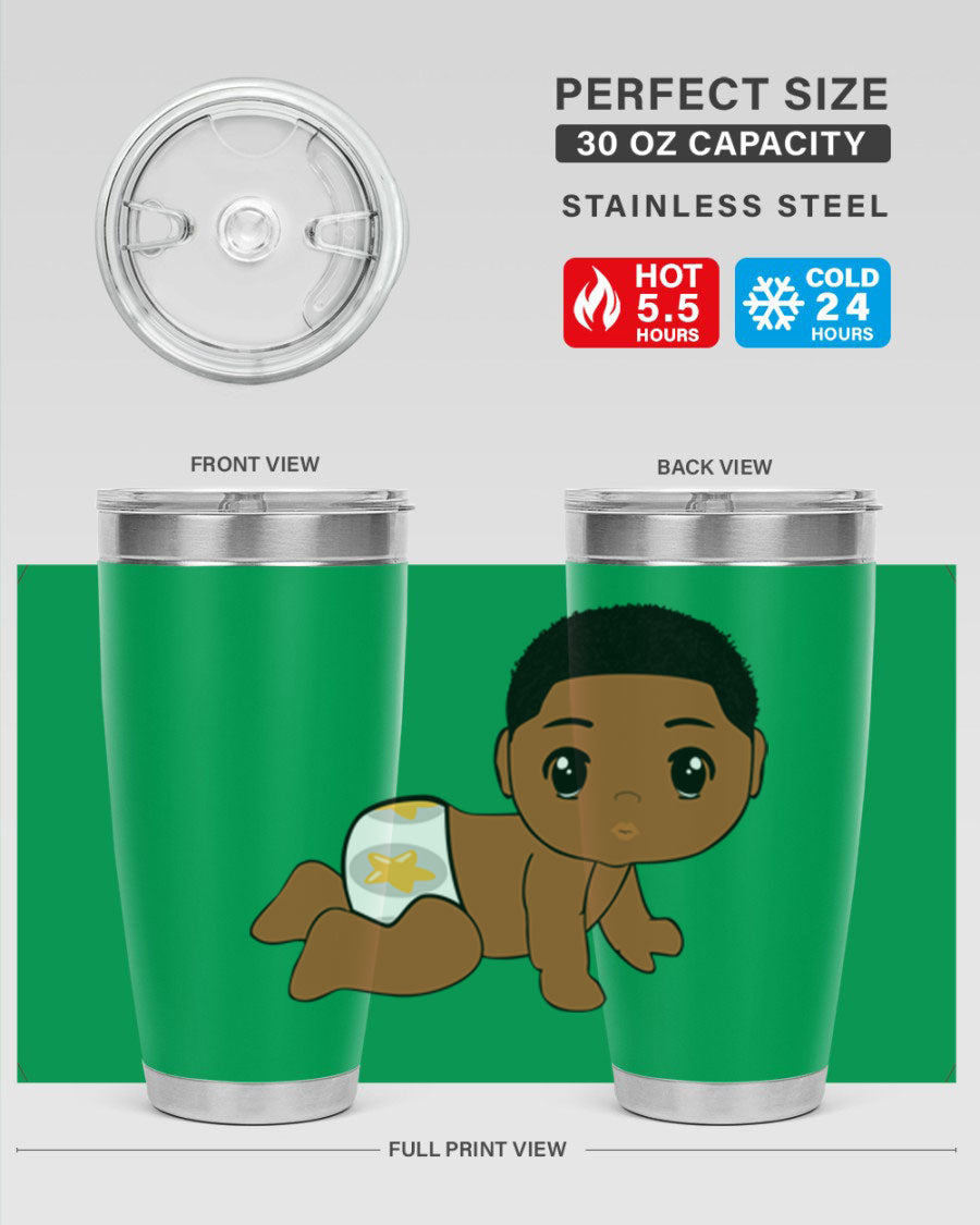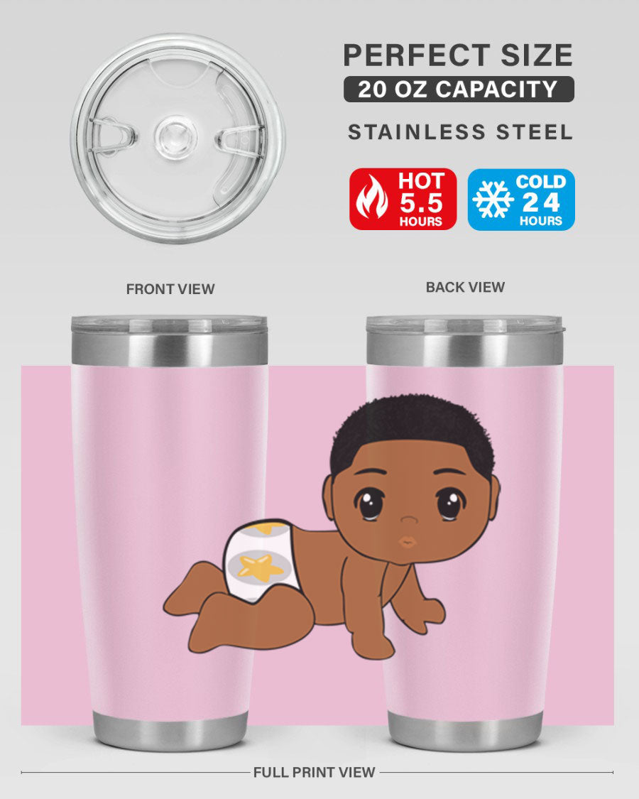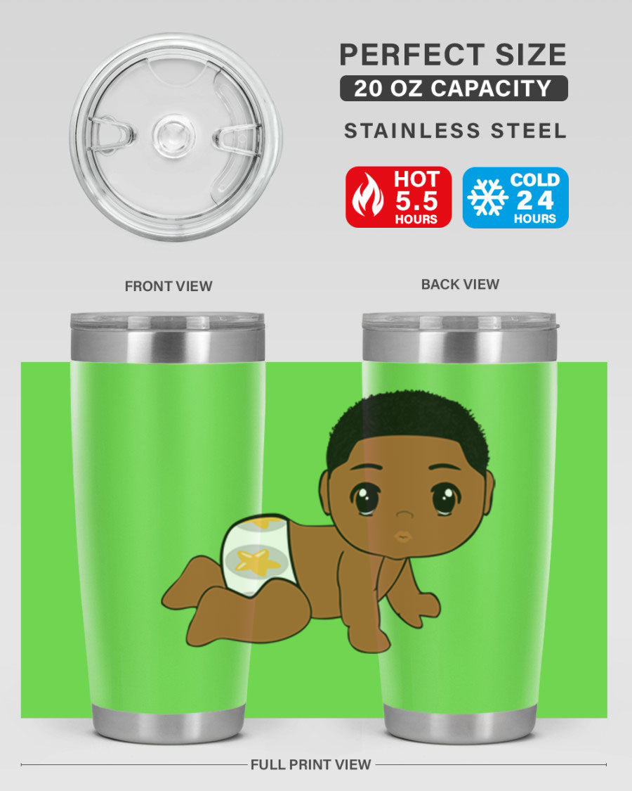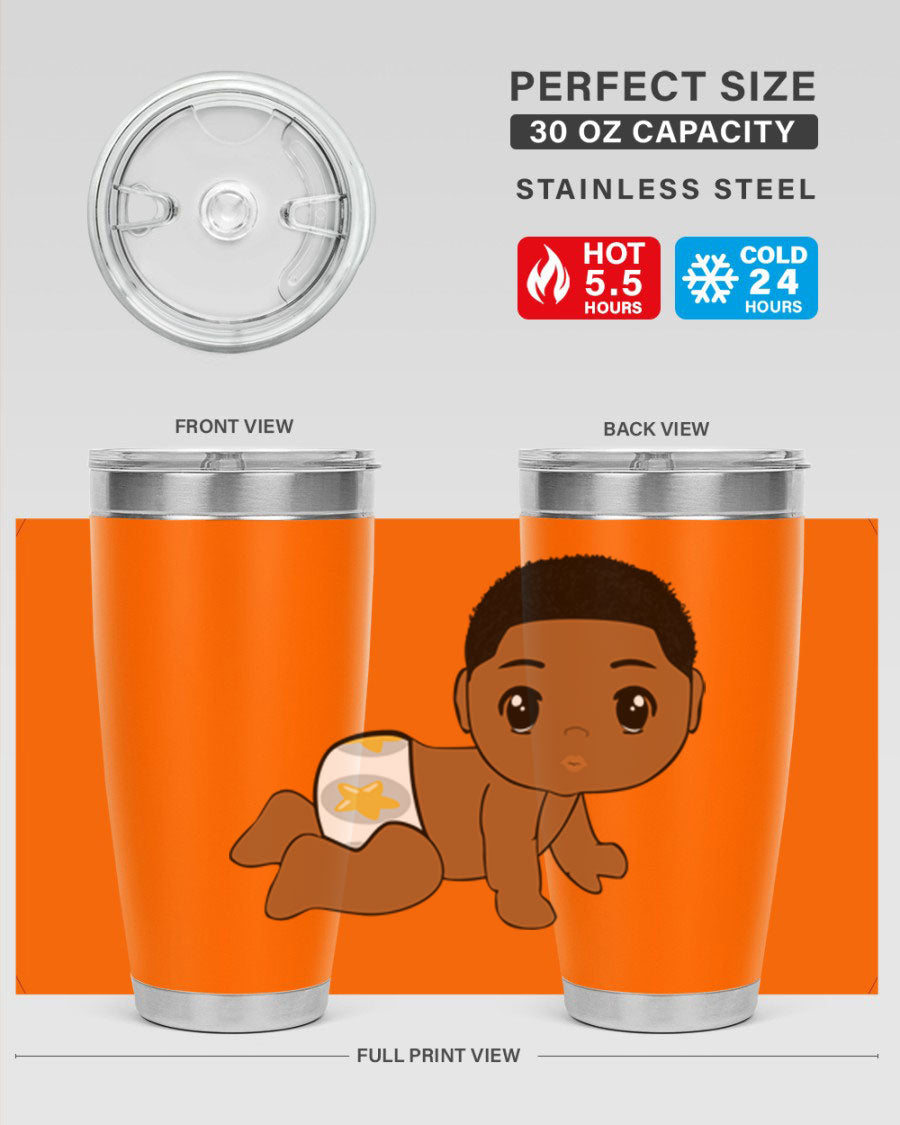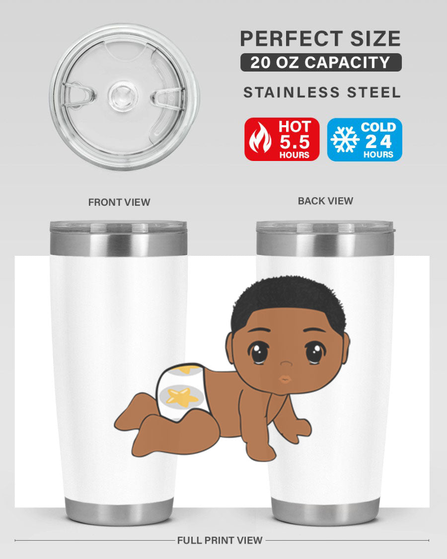 The black baby boy 3# tumbler is crafted from double wall vacuum stainless steel, which not only provides excellent insulation but also adds to its sleek and modern design. The copper lining enhances its thermal efficiency, allowing your beverages to stay hot for up to 5.5 hours and cold for an impressive 24 hours. This means you can enjoy your favorite drinks at the perfect temperature, no matter where you are.