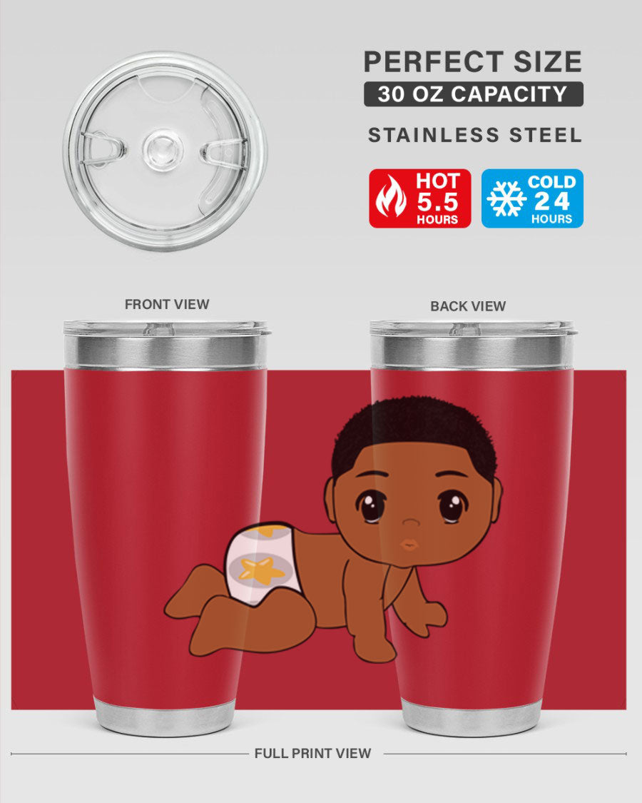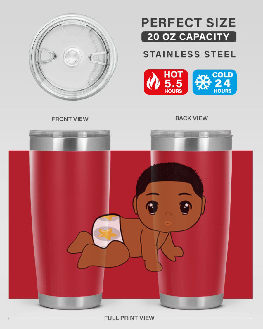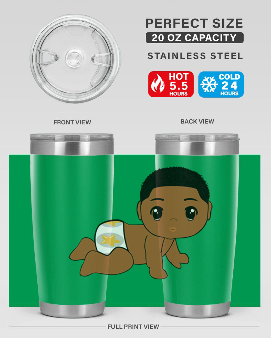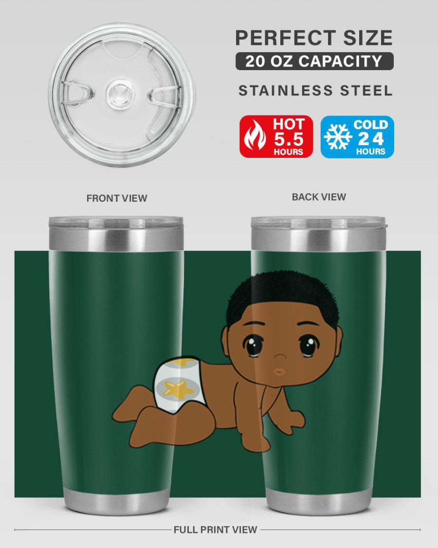 The black baby boy 3# tumbler is crafted from double wall vacuum stainless steel, which not only provides excellent insulation but also adds to its sleek and modern design. The copper lining enhances its thermal efficiency, allowing your beverages to stay hot for up to 5.5 hours and cold for an impressive 24 hours. This means you can enjoy your favorite drinks at the perfect temperature, no matter where you are.