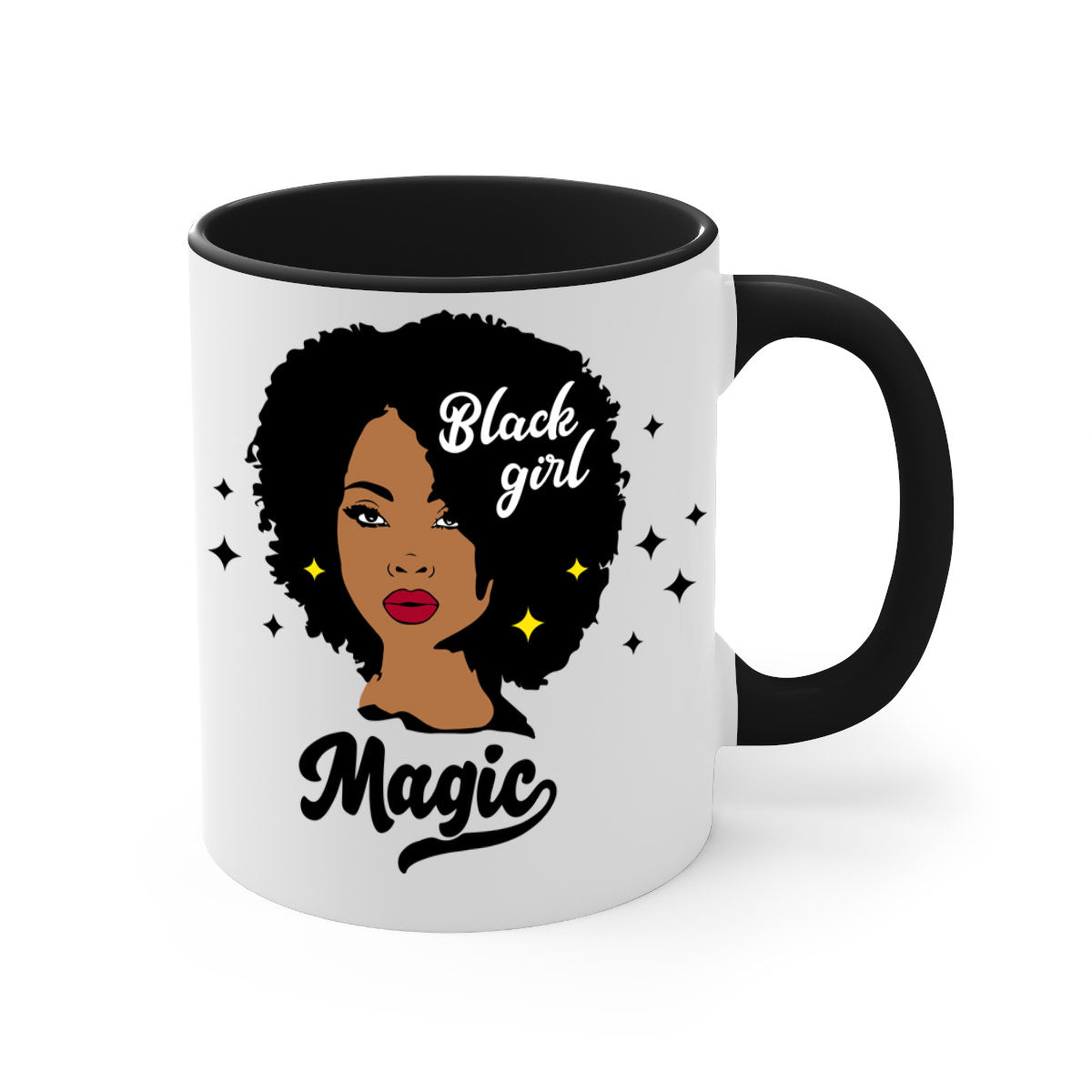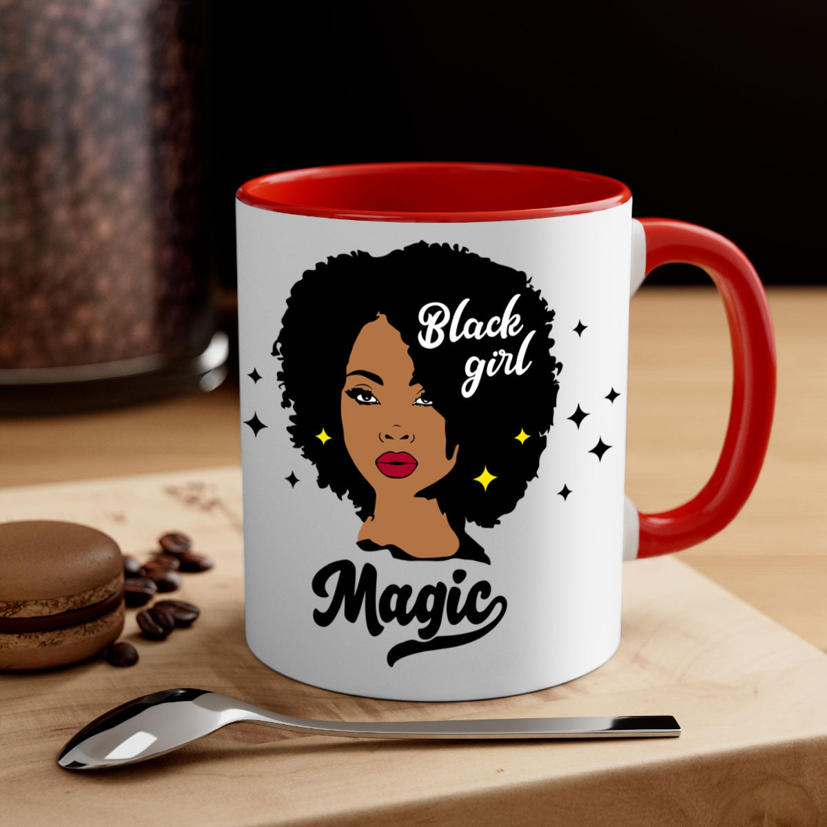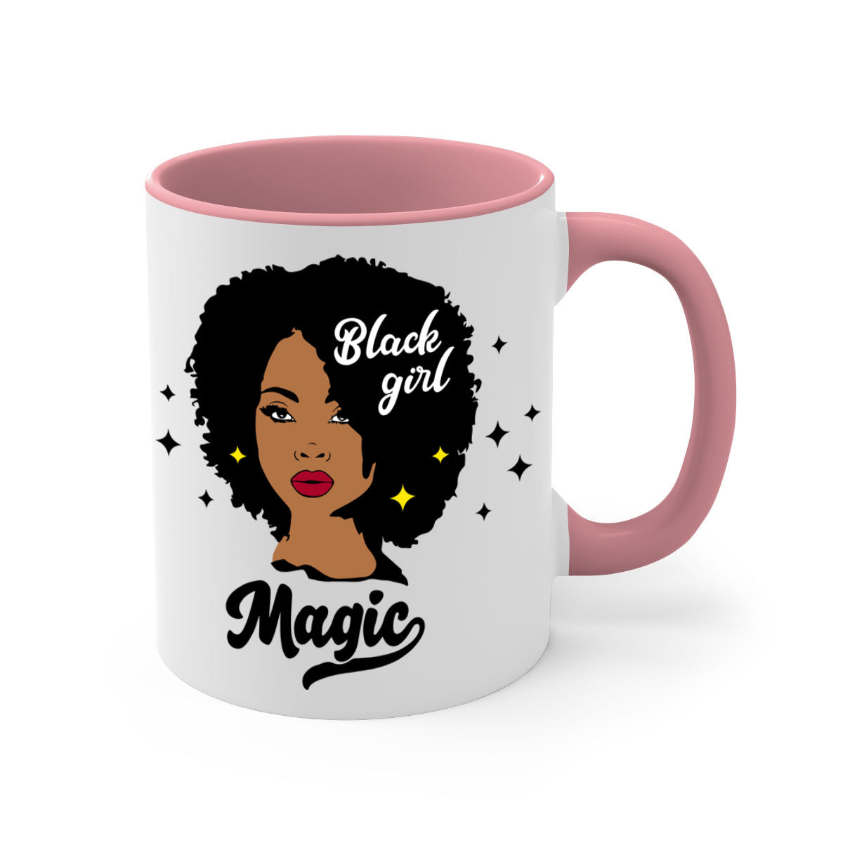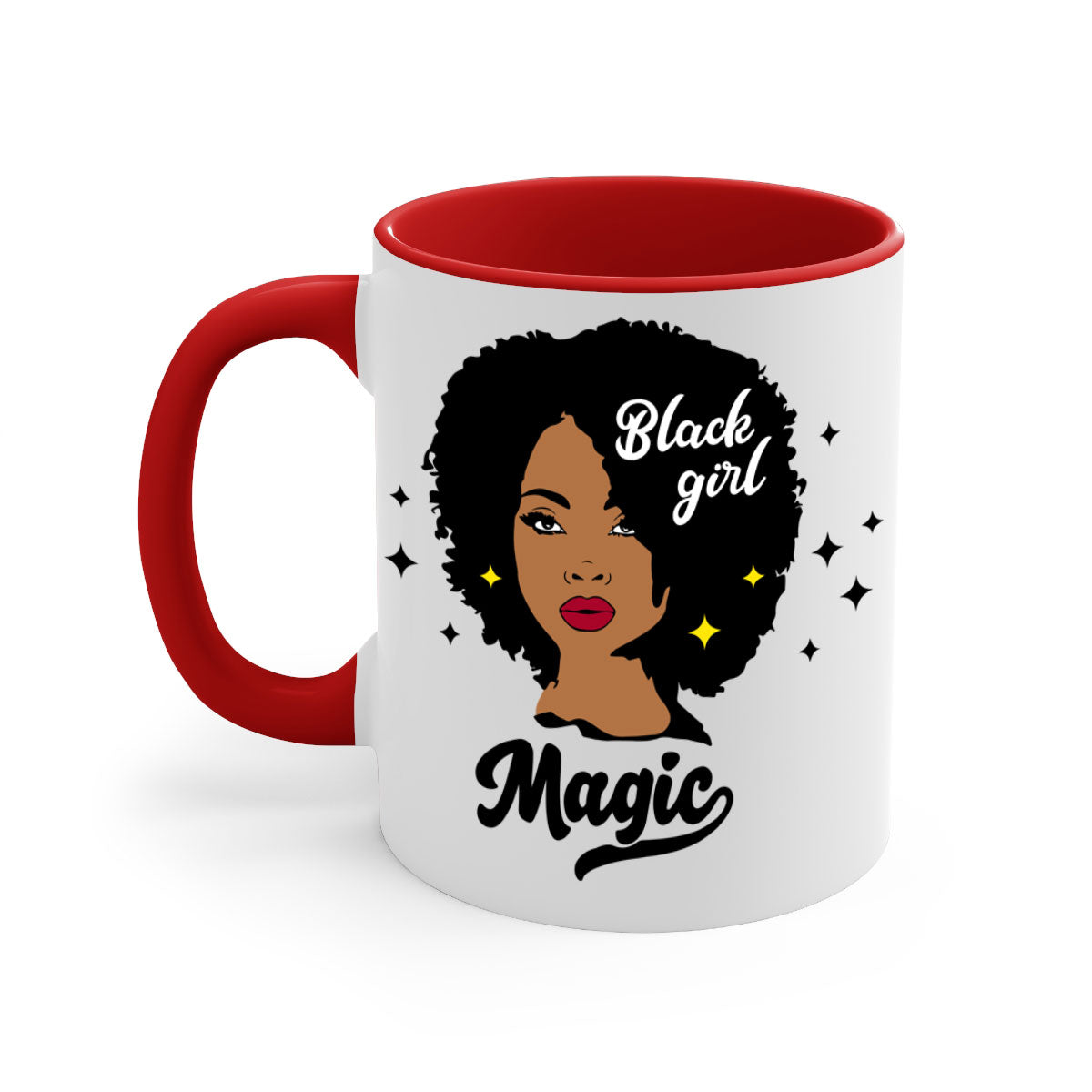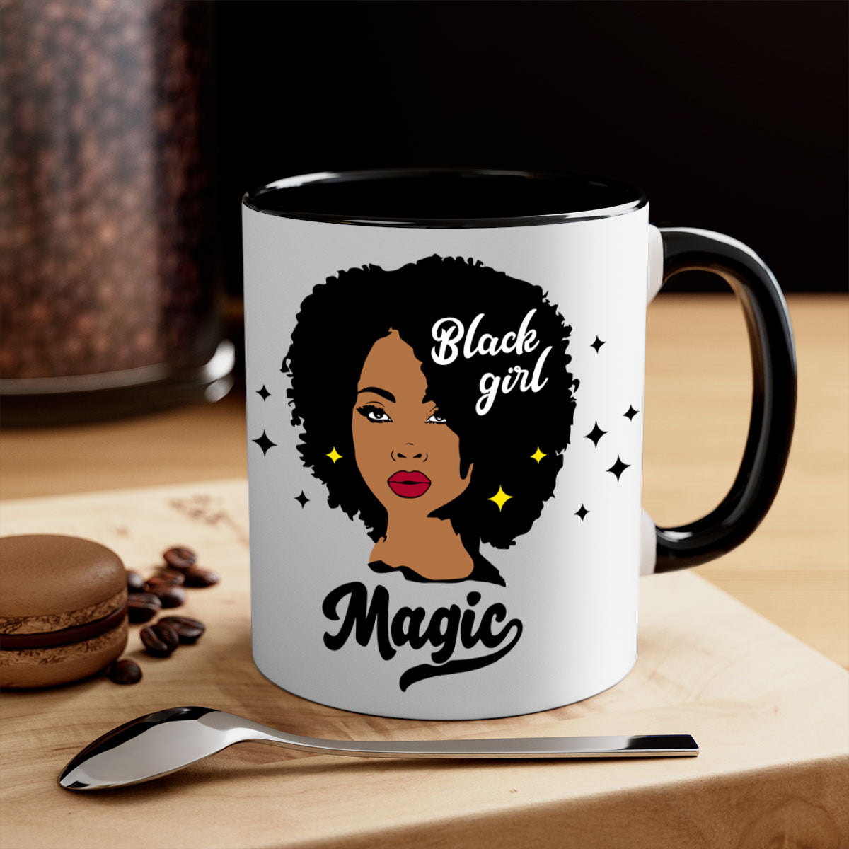 The Black Girl Magic Mug features a chic two-tone design that is both eye-catching and elegant. With a glossy finish, it adds a touch of sophistication to your kitchen or office space. The colored handle and interior are available in five vibrant options, allowing you to choose the perfect combination that reflects your personality. Whether you prefer a bold color or a classic white, there’s a mug for everyone.