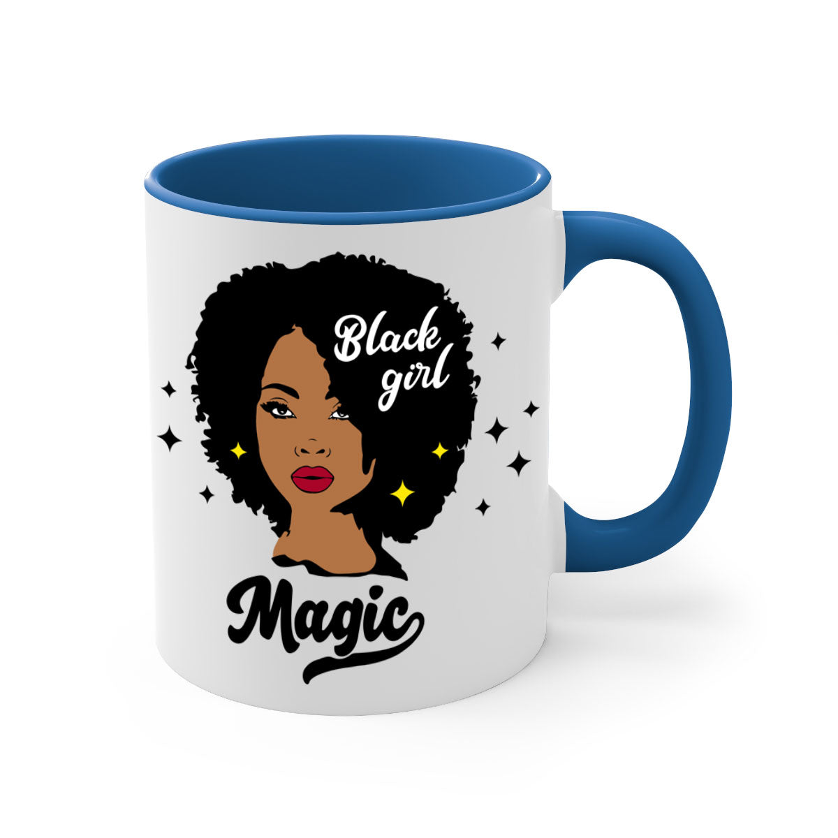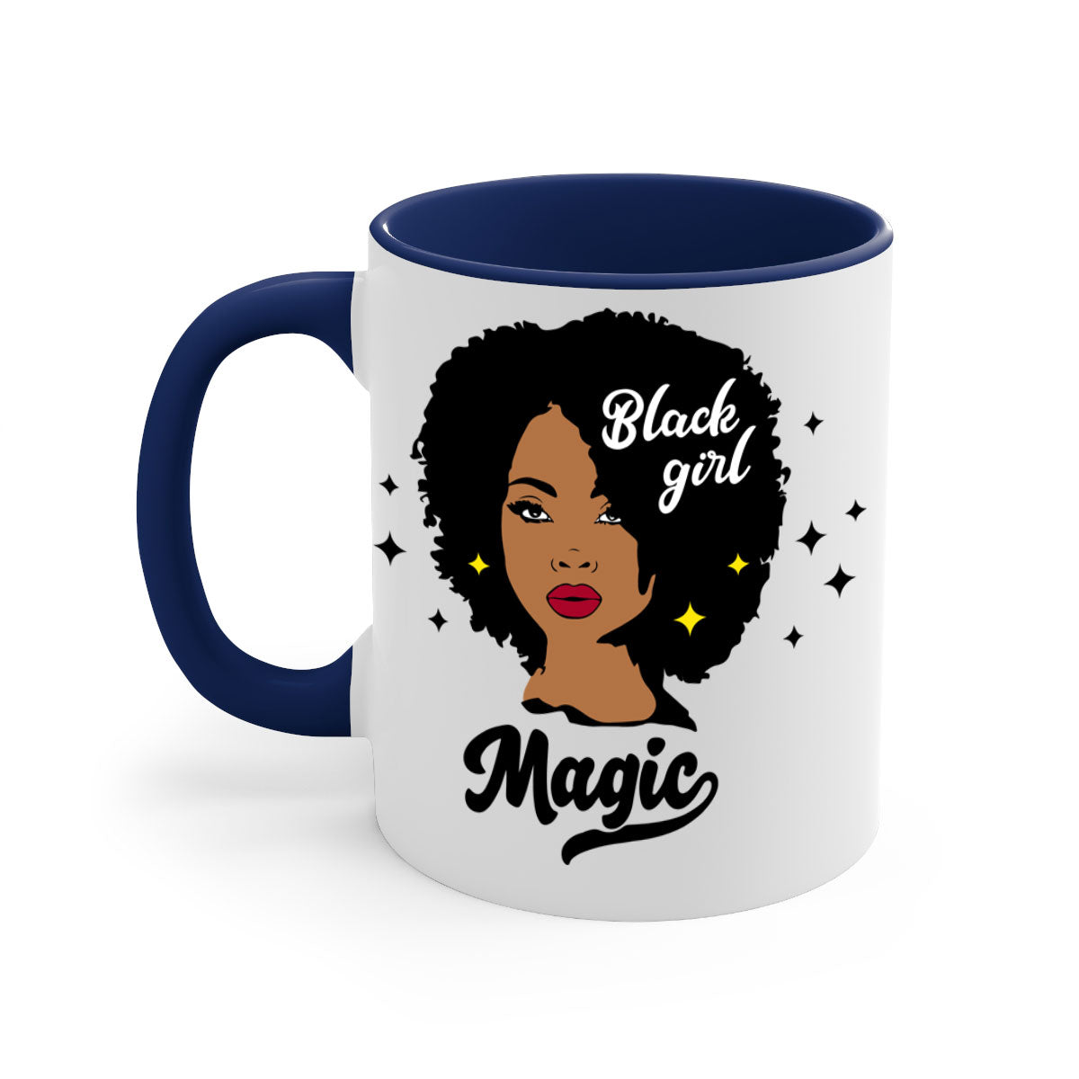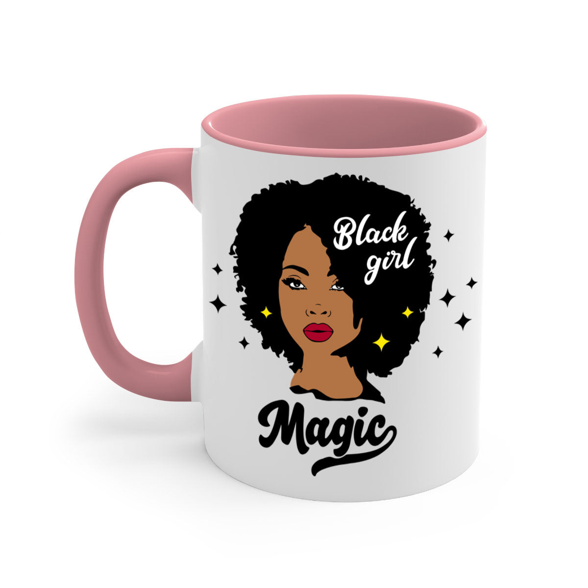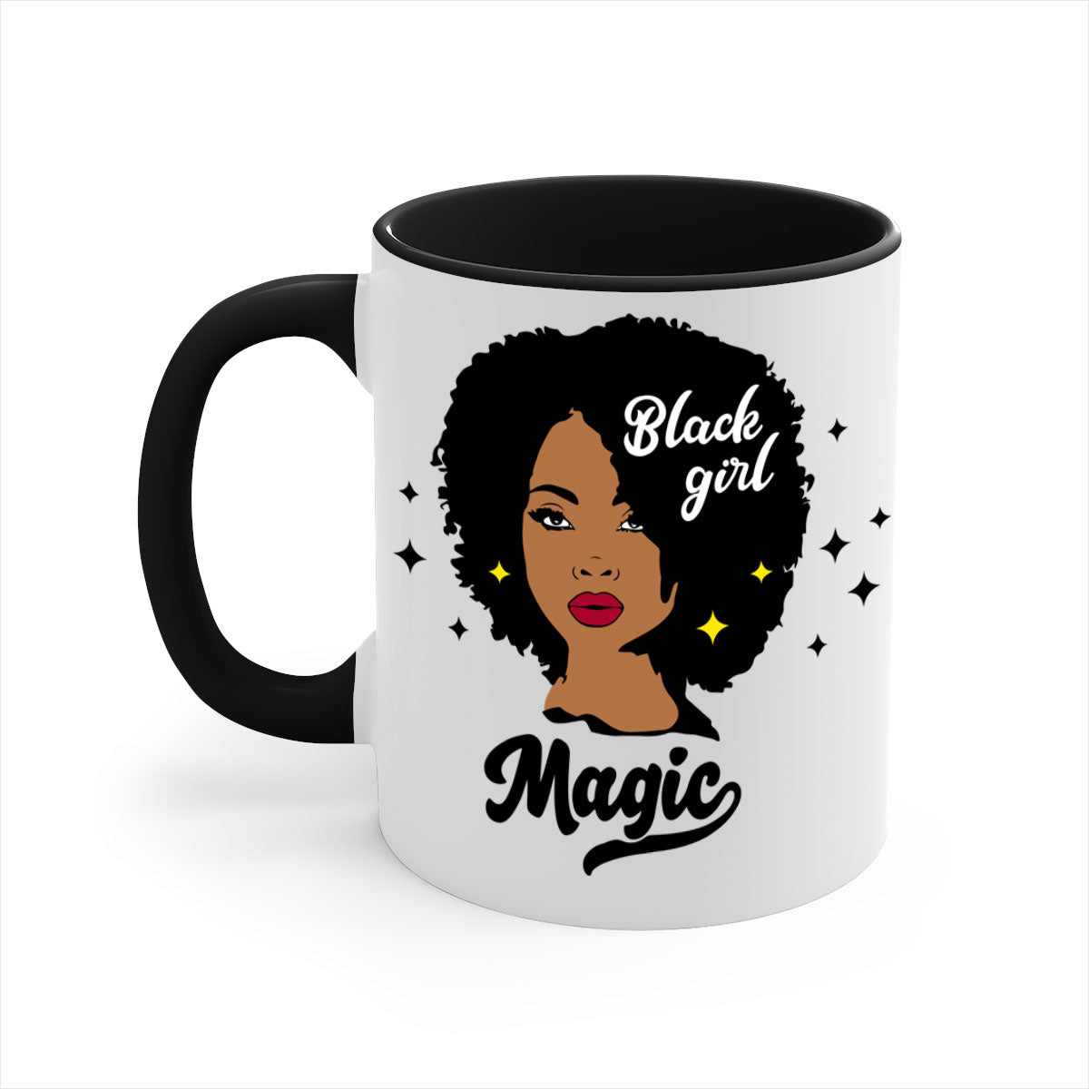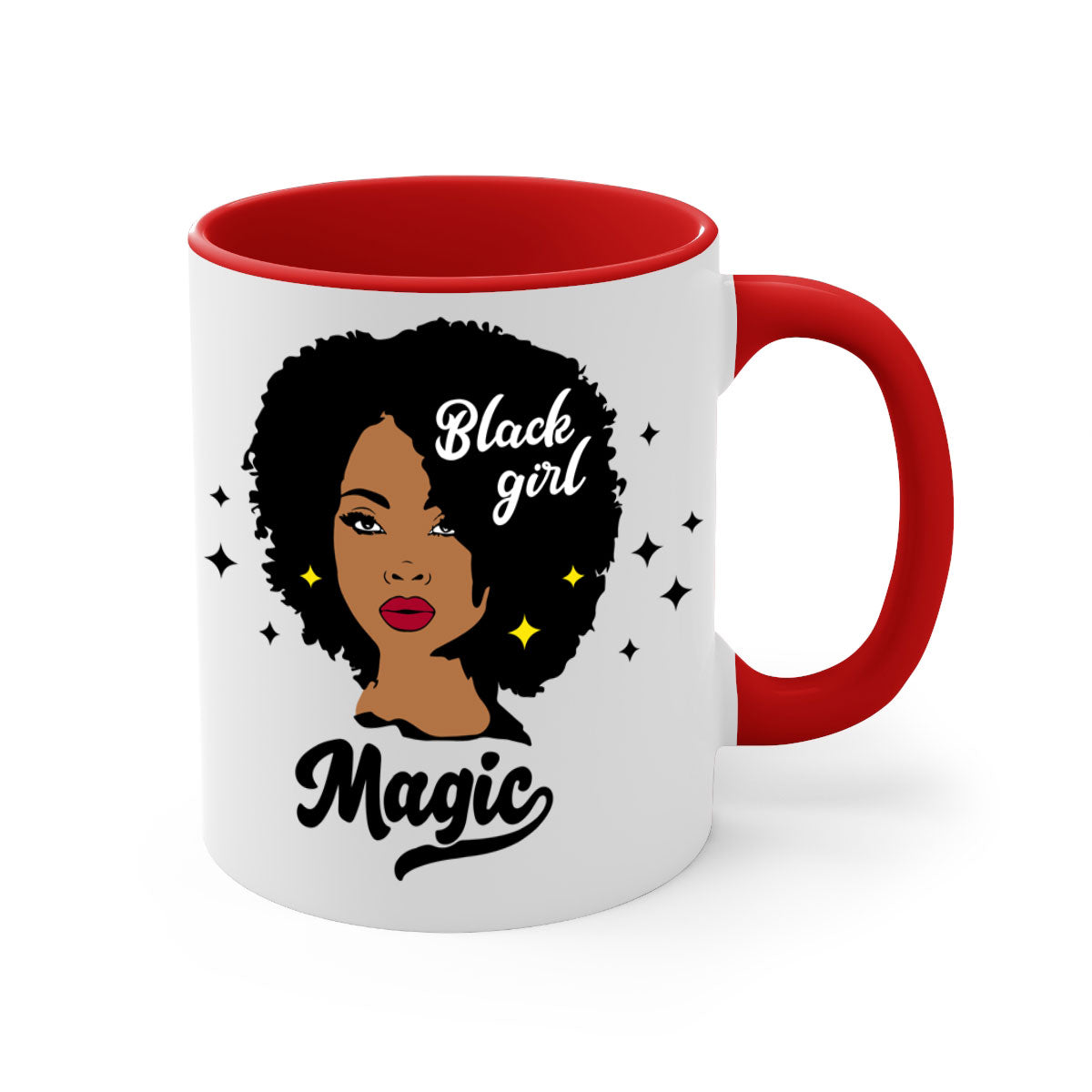 The Black Girl Magic Mug features a chic two-tone design that is both eye-catching and elegant. With a glossy finish, it adds a touch of sophistication to your kitchen or office space. The colored handle and interior are available in five vibrant options, allowing you to choose the perfect combination that reflects your personality. Whether you prefer a bold color or a classic white, there’s a mug for everyone.