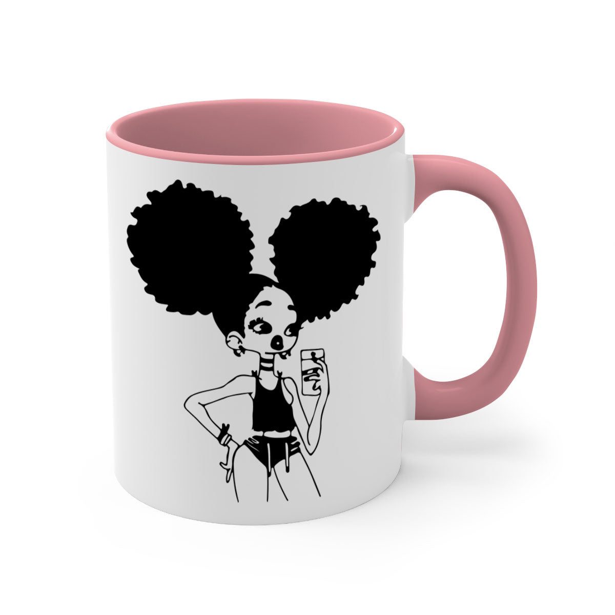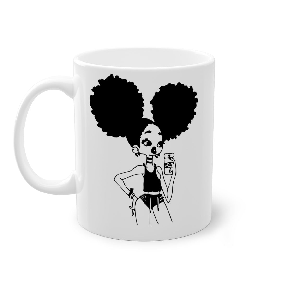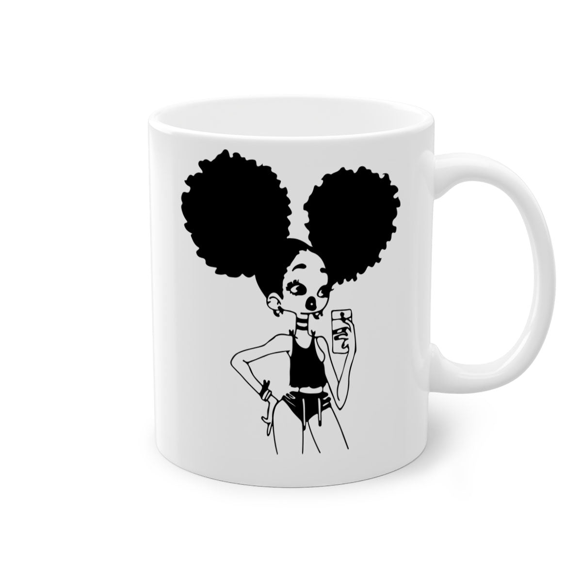 Crafted from 100% ceramic, the Black Girl Taking Mirror Selfie Mug is designed for durability and longevity. Ceramic is known for its ability to retain heat, ensuring that your drinks stay warm for longer periods. Additionally, the material is easy to clean, making it a practical choice for everyday use. You can enjoy your favorite beverages without worrying about wear and tear.