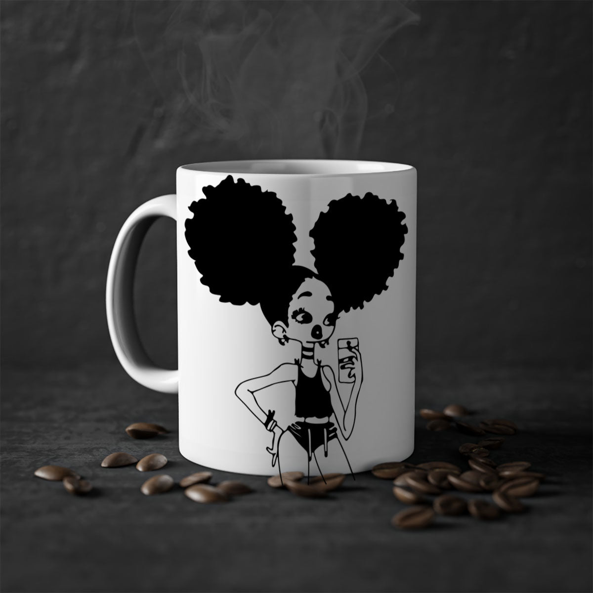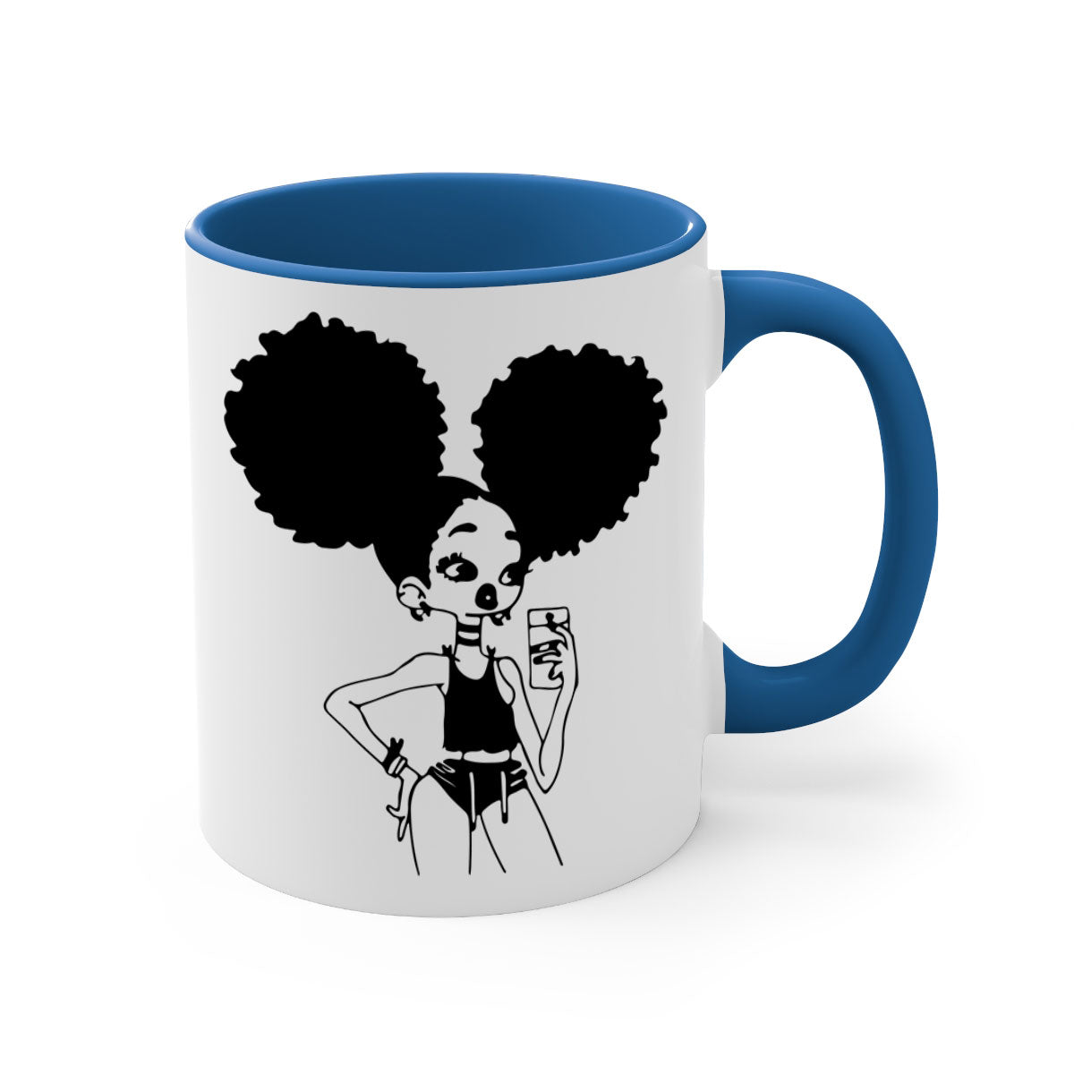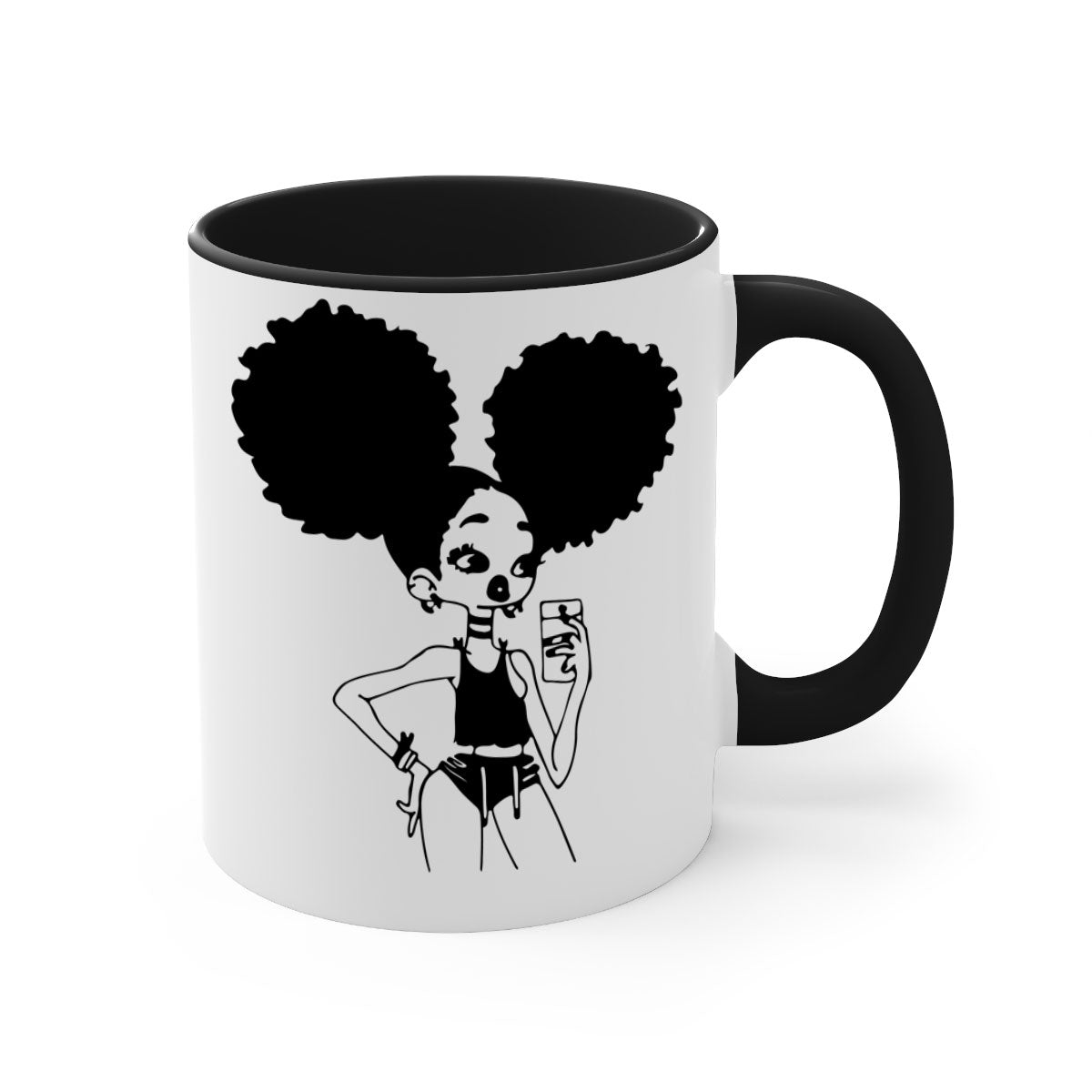 Crafted from 100% ceramic, the Black Girl Taking Mirror Selfie Mug is designed for durability and longevity. Ceramic is known for its ability to retain heat, ensuring that your drinks stay warm for longer periods. Additionally, the material is easy to clean, making it a practical choice for everyday use. You can enjoy your favorite beverages without worrying about wear and tear.