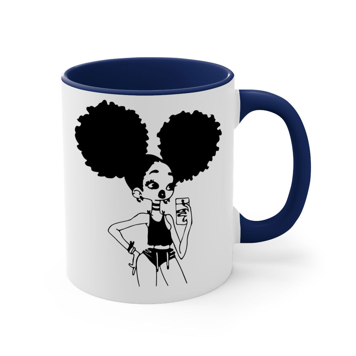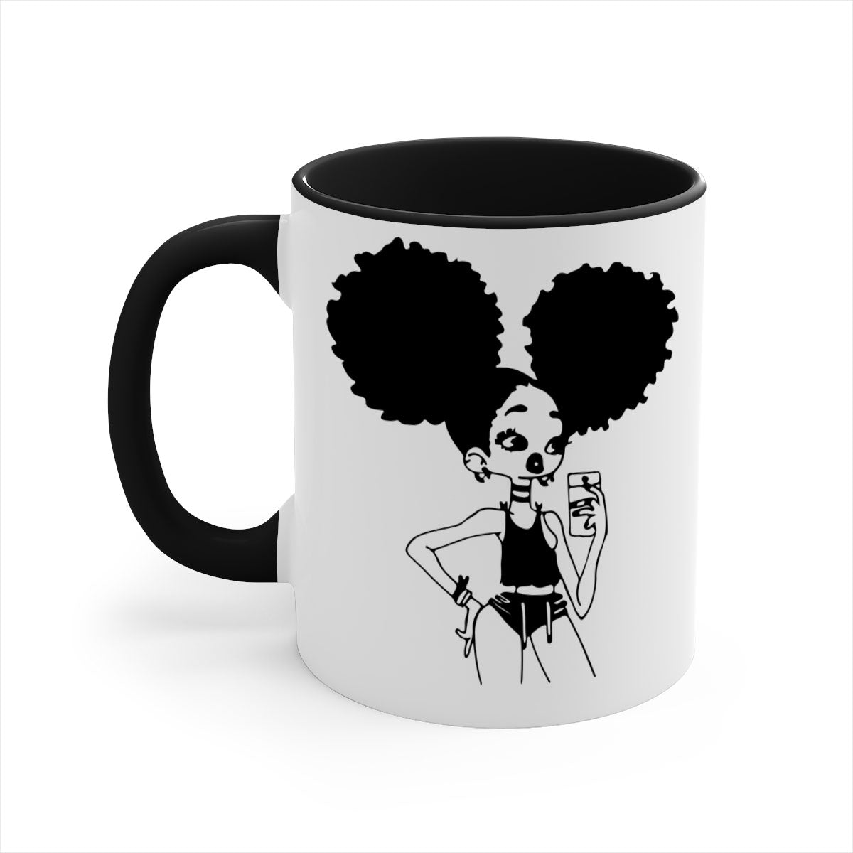 In summary, the Black Girl Taking Mirror Selfie Mug is more than just a coffee mug; it's a stylish accessory that enhances your beverage experience. With its unique design, high-quality materials, and comfortable grip, this mug is perfect for anyone who loves to enjoy their drinks in style. Choose your favorite color and size today and elevate your coffee-drinking experience!