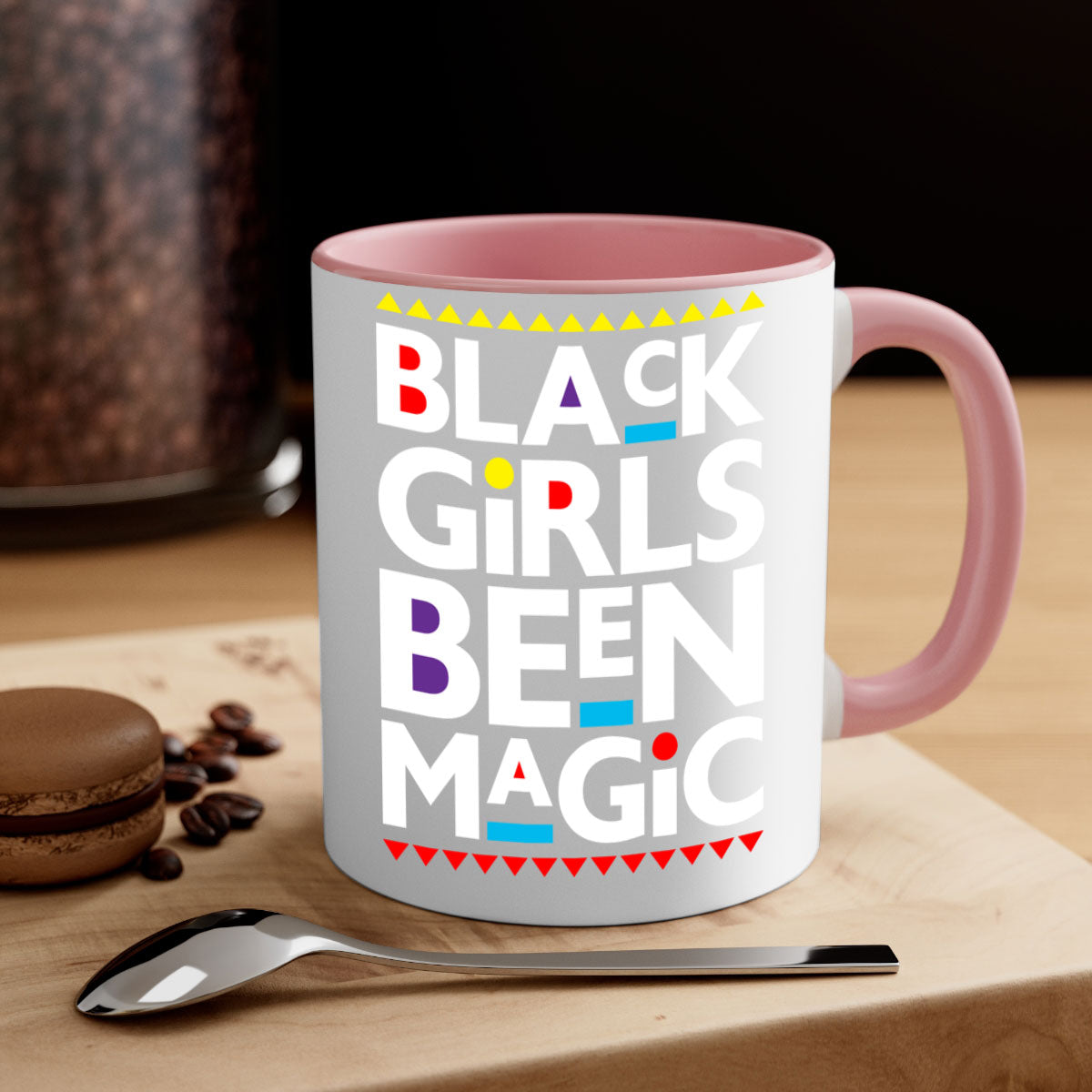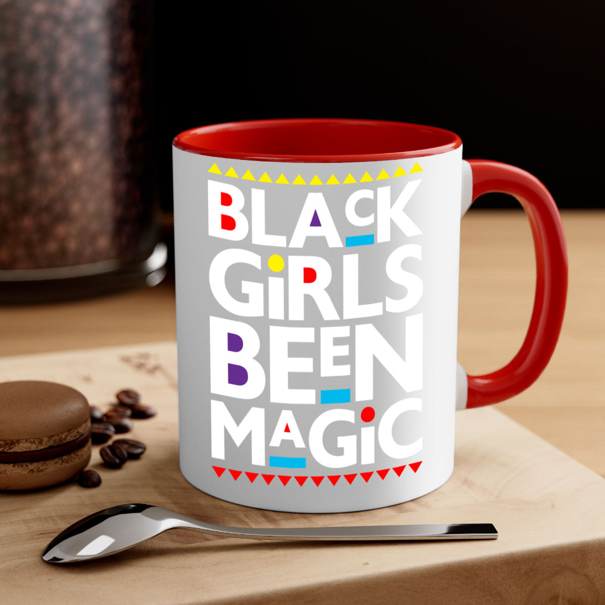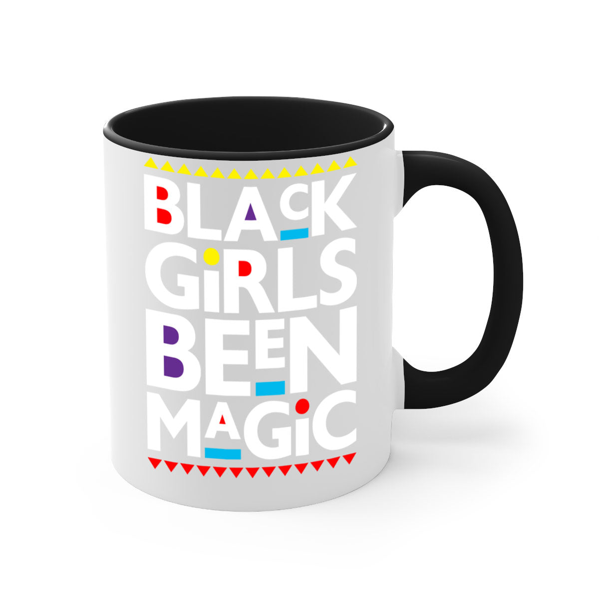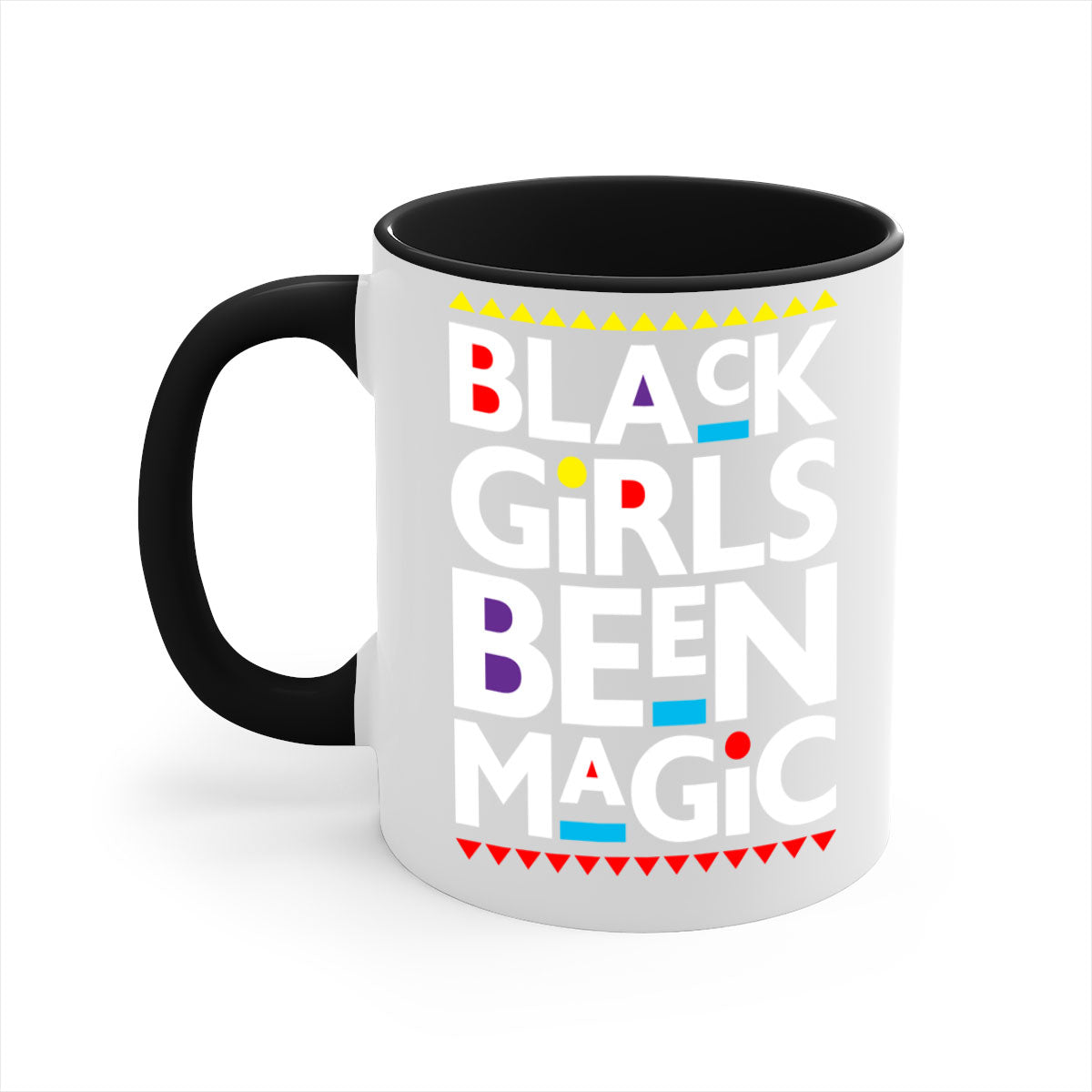 The Black Girls Been Magic Mug features a chic two-tone design that is sure to catch the eye. With a colored handle and interior, you can choose from five vibrant color options to match your personal style or kitchen decor. The glossy finish adds a touch of elegance, making it a perfect gift for yourself or a loved one.
