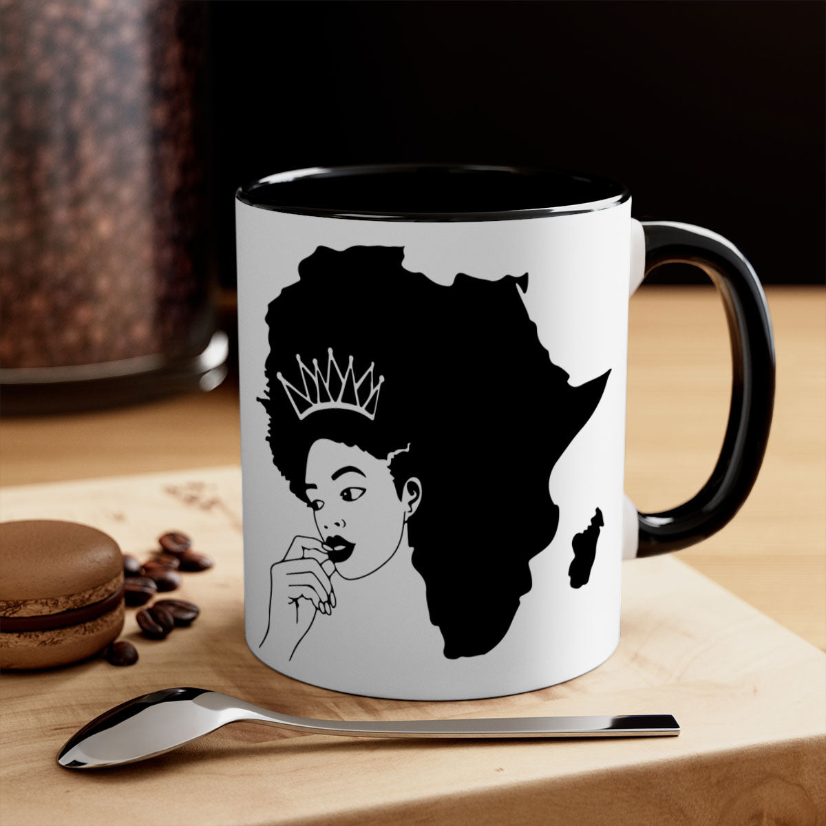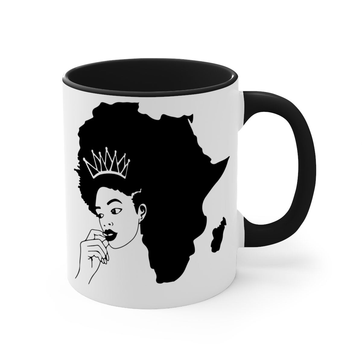 The Black Women - Queen 23# Mug features a two-tone design that is both eye-catching and elegant. Each mug comes with a colored handle and interior, allowing you to choose from five different color options to match your style or mood. The glossy finish enhances the overall aesthetic, making it a perfect gift for yourself or a loved one.