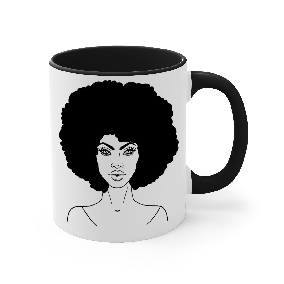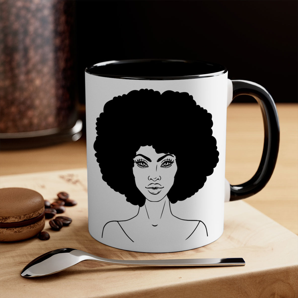 The Black Women - Queen 79# Mug features a unique two-tone design that is both eye-catching and sophisticated. With a glossy finish and a colored handle, this mug is available in five different color options, allowing you to choose the one that best complements your style. The interior and handle colors add a pop of personality, making each sip a delightful experience.