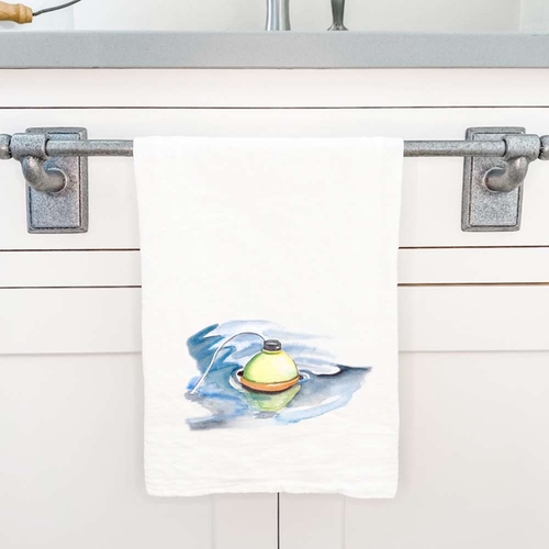 All photos and designs are (C) 2023, American Life Brands. Elevate your kitchen experience with our Bobber in Water cotton tea towel today!