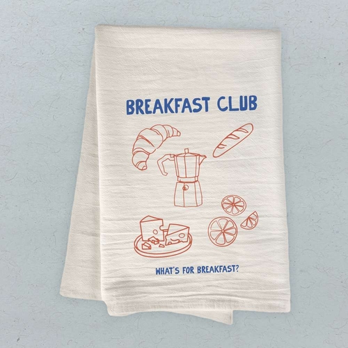 Introducing the Breakfast Club Cotton Tea Towel, a must-have addition to your kitchen essentials. This beautifully designed tea towel is not only functional but also adds a touch of style to your culinary space. Made from 100% absorbent cotton, it is perfect for drying dishes, wiping hands, or even as a decorative piece in your kitchen. The vibrant colors and unique designs are printed using water-based inks, ensuring that they are safe for you and the environment.