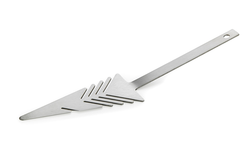A cake knife server has two functions - it slices and serves cake or other desserts. This shapely cake server is an elegant table essential for fancy celebrations or casual dinners. It may serve as an element of table or kitchen décor. The hole on the handle allows to hang the server on the wall. A great gift for anyone who loves to bake and host guests.