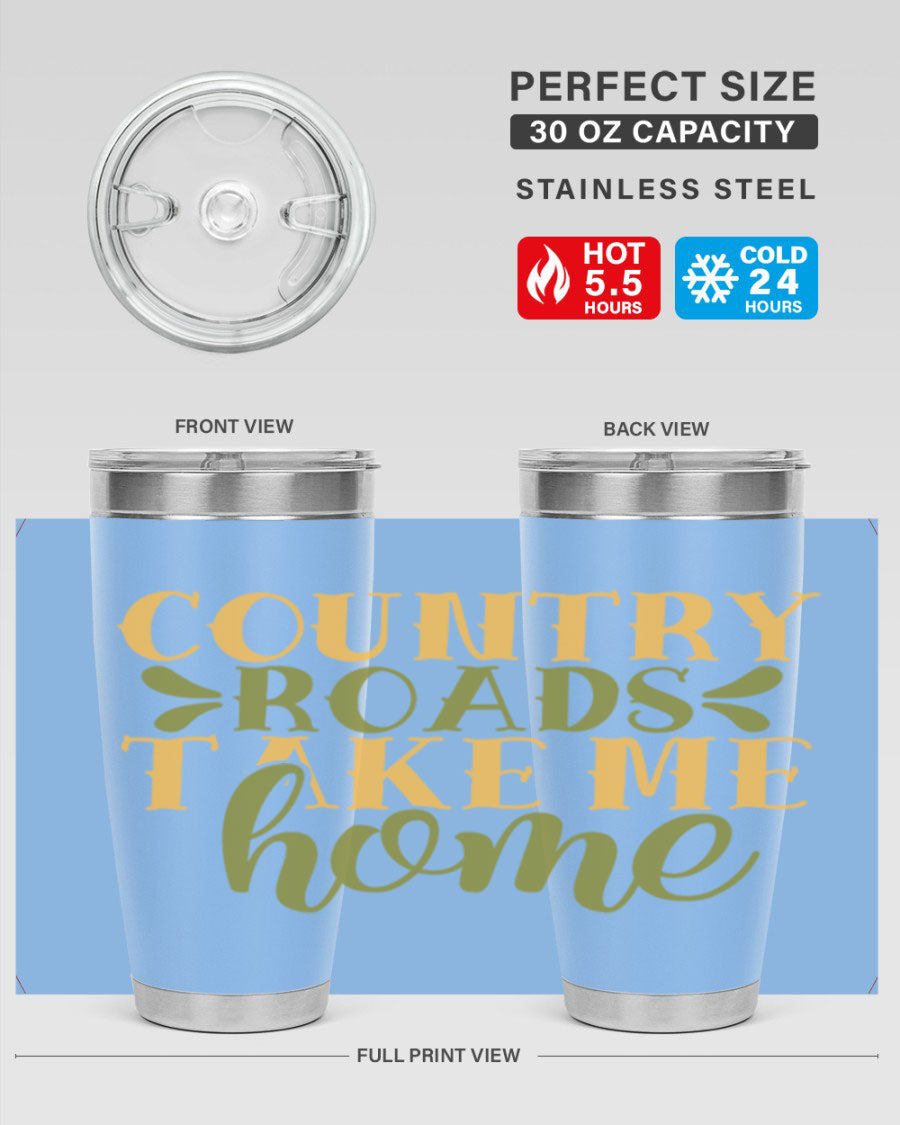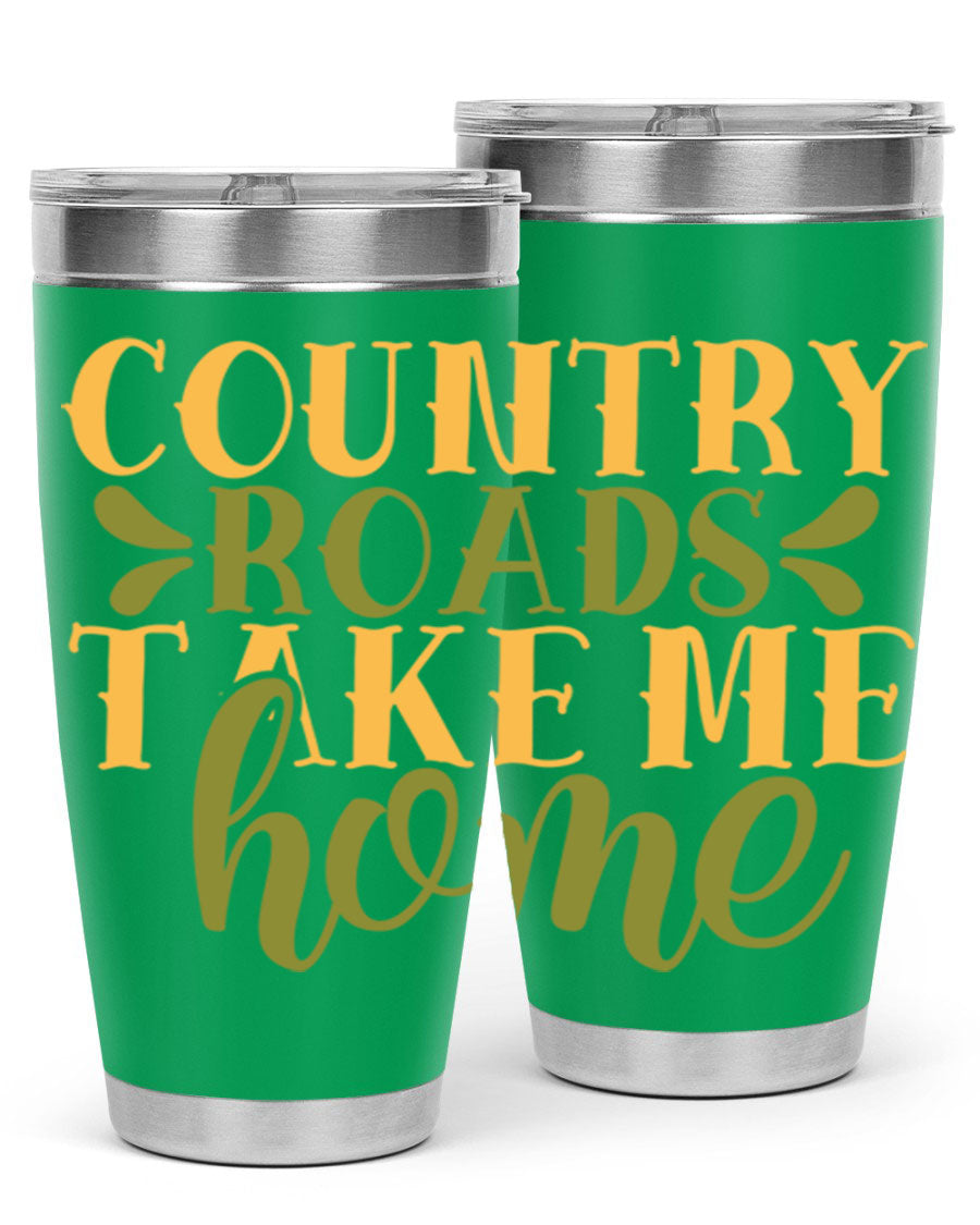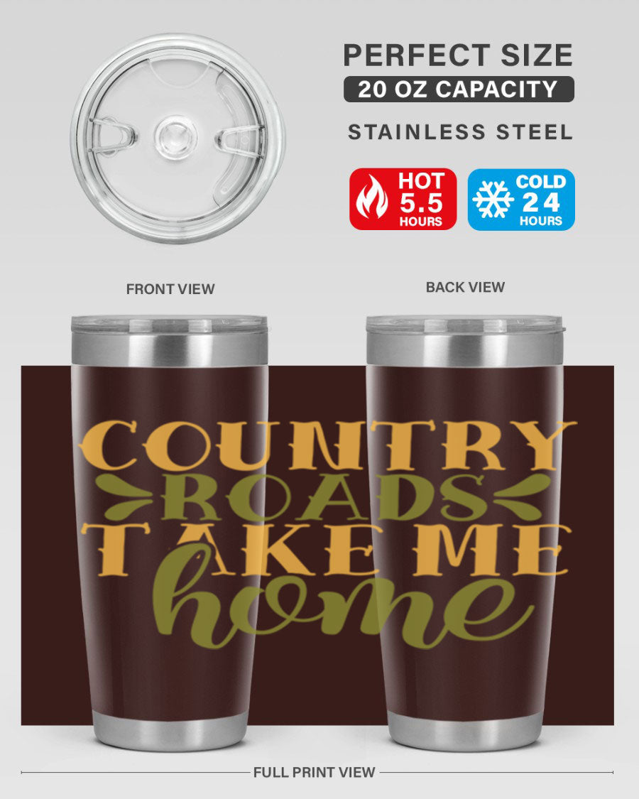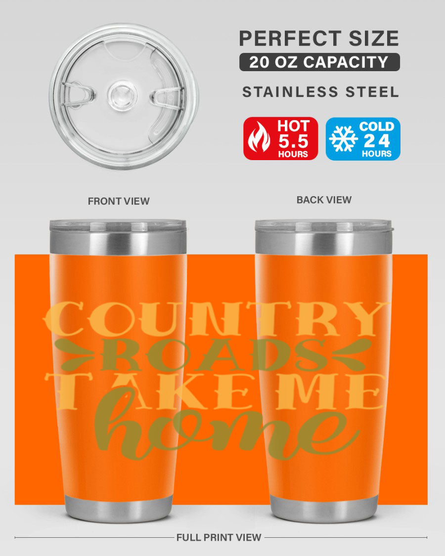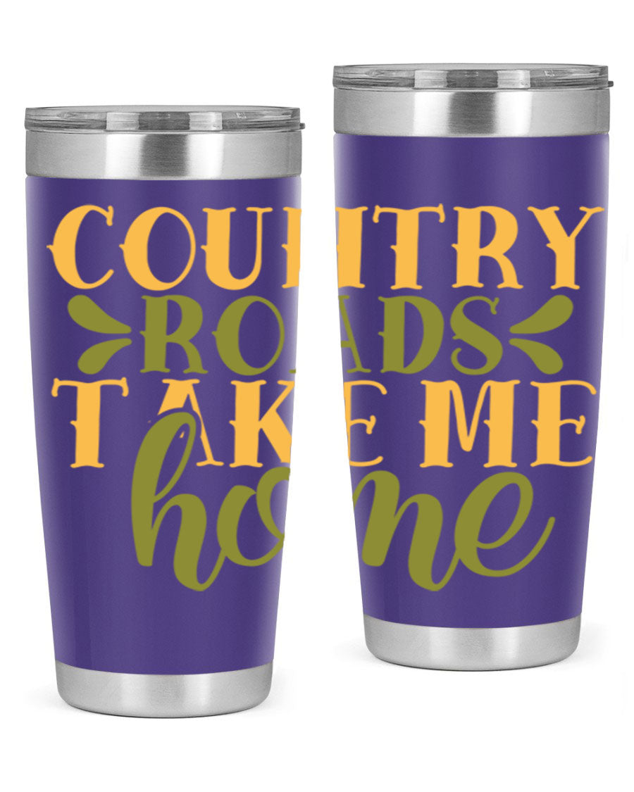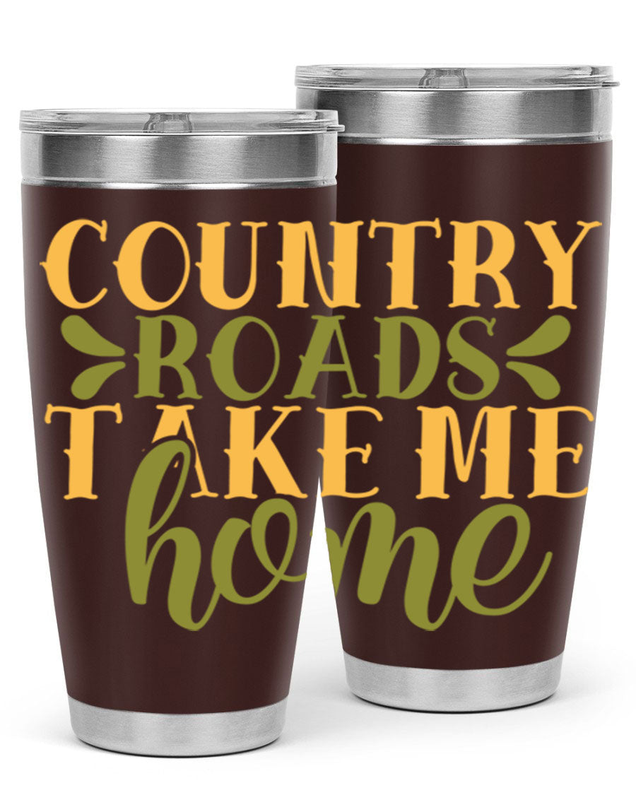 Country Roads Take Me Home 19# Tumbler, a stylish double wall vacuum stainless steel tumbler with a copper lining, perfect for hot and cold beverages.