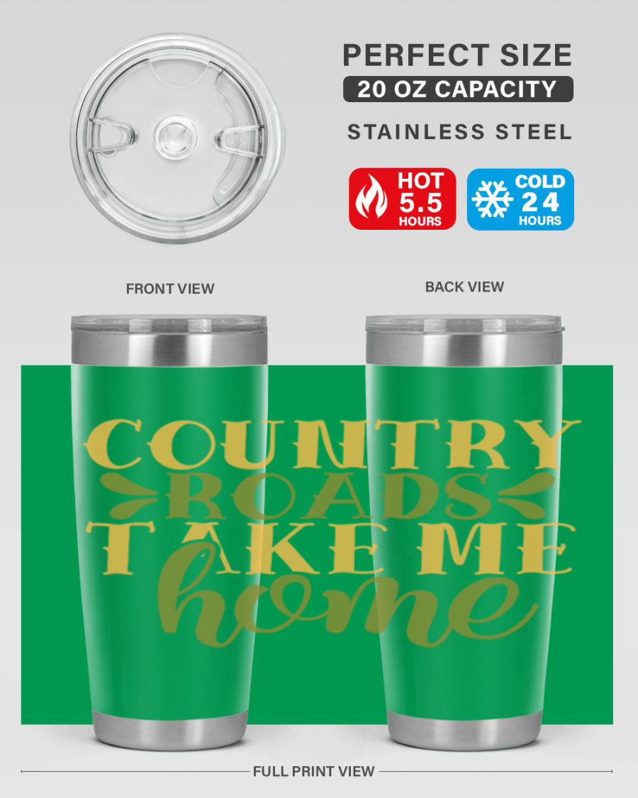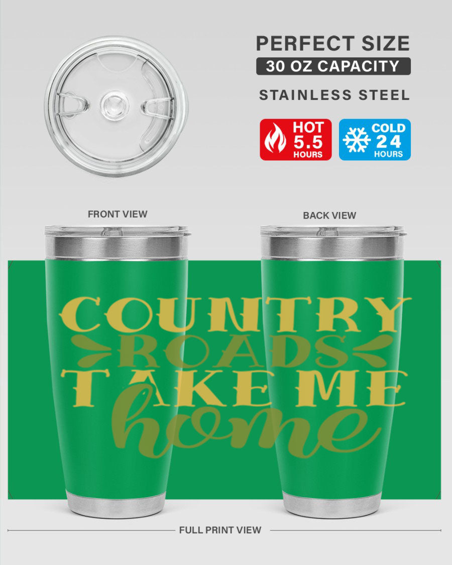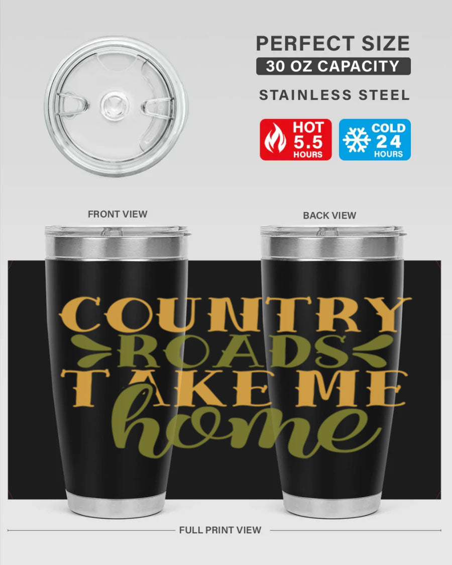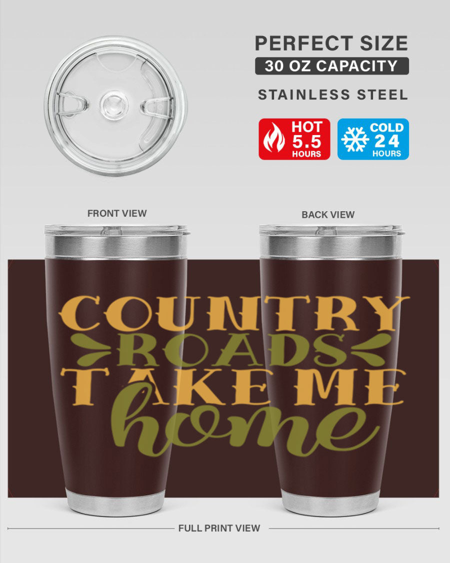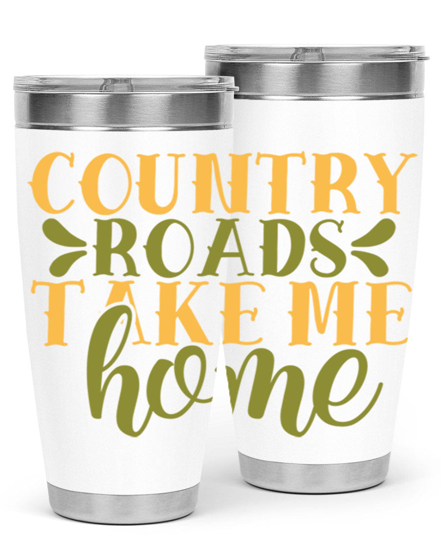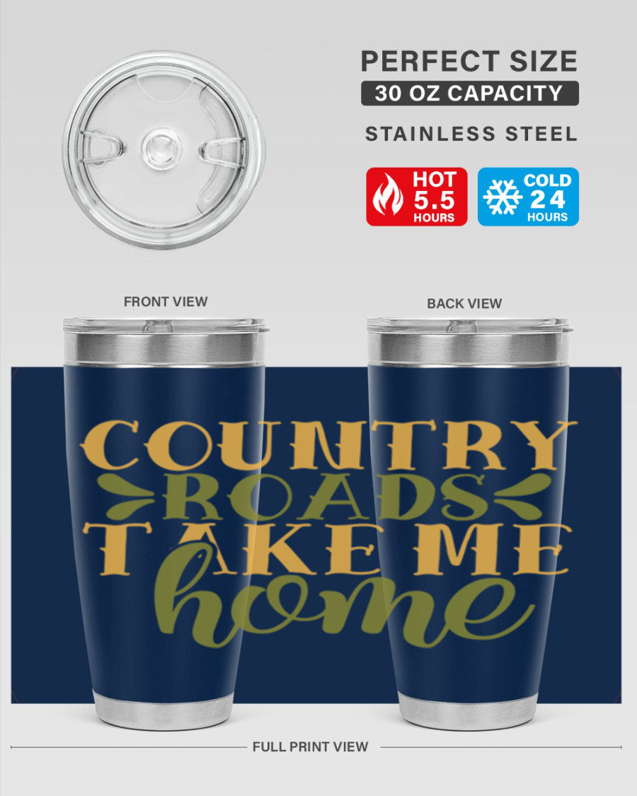 Country Roads Take Me Home 19# Tumbler, a stylish double wall vacuum stainless steel tumbler with a copper lining, perfect for hot and cold beverages.