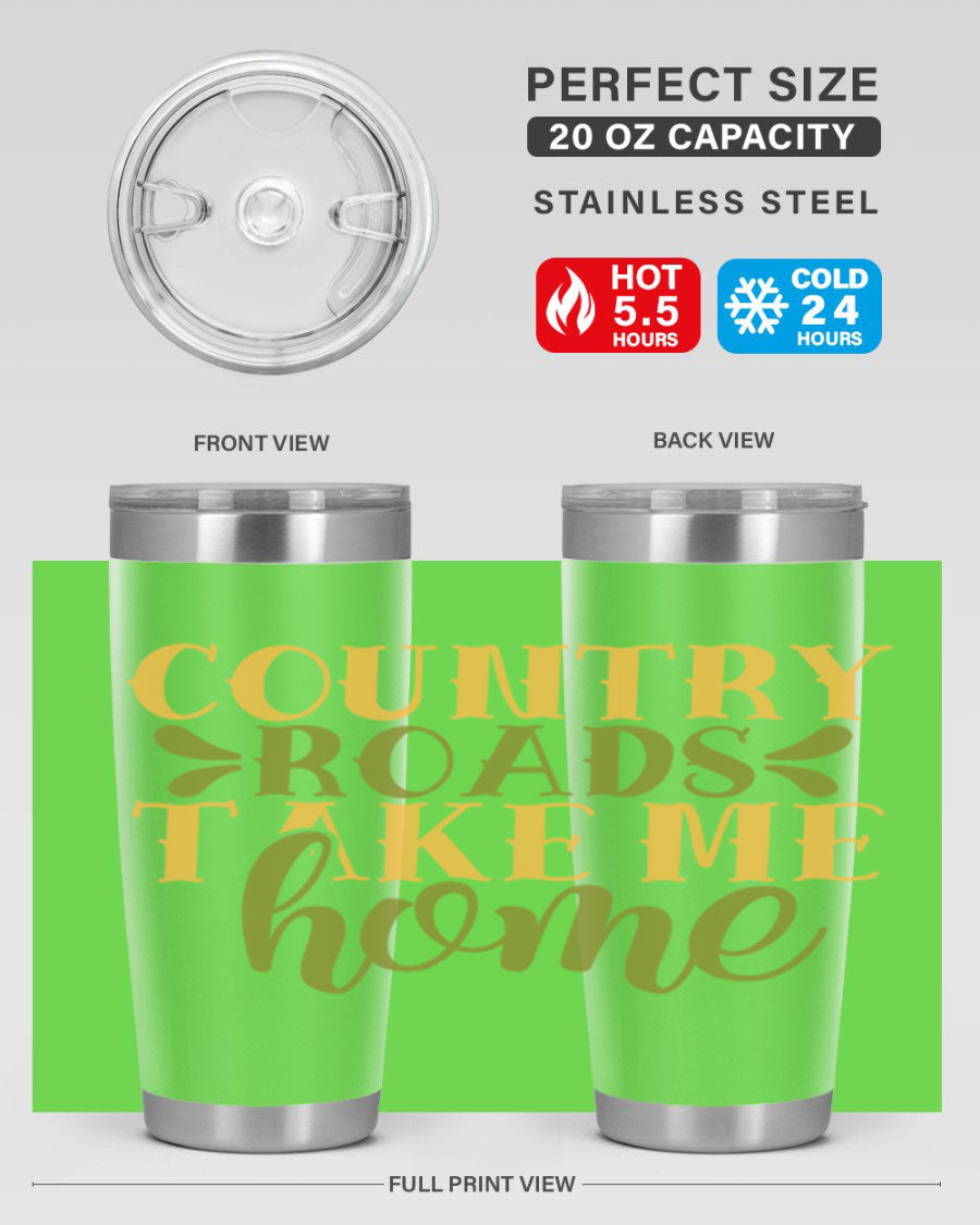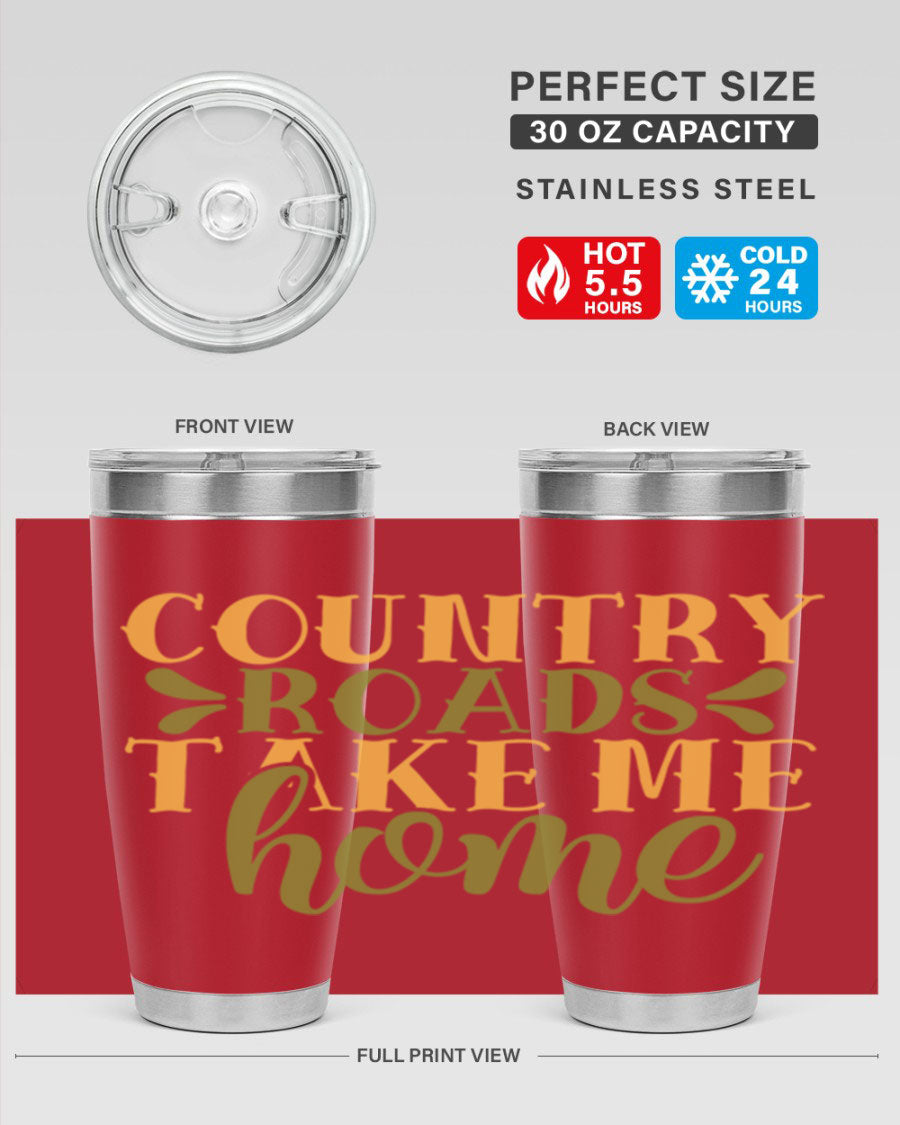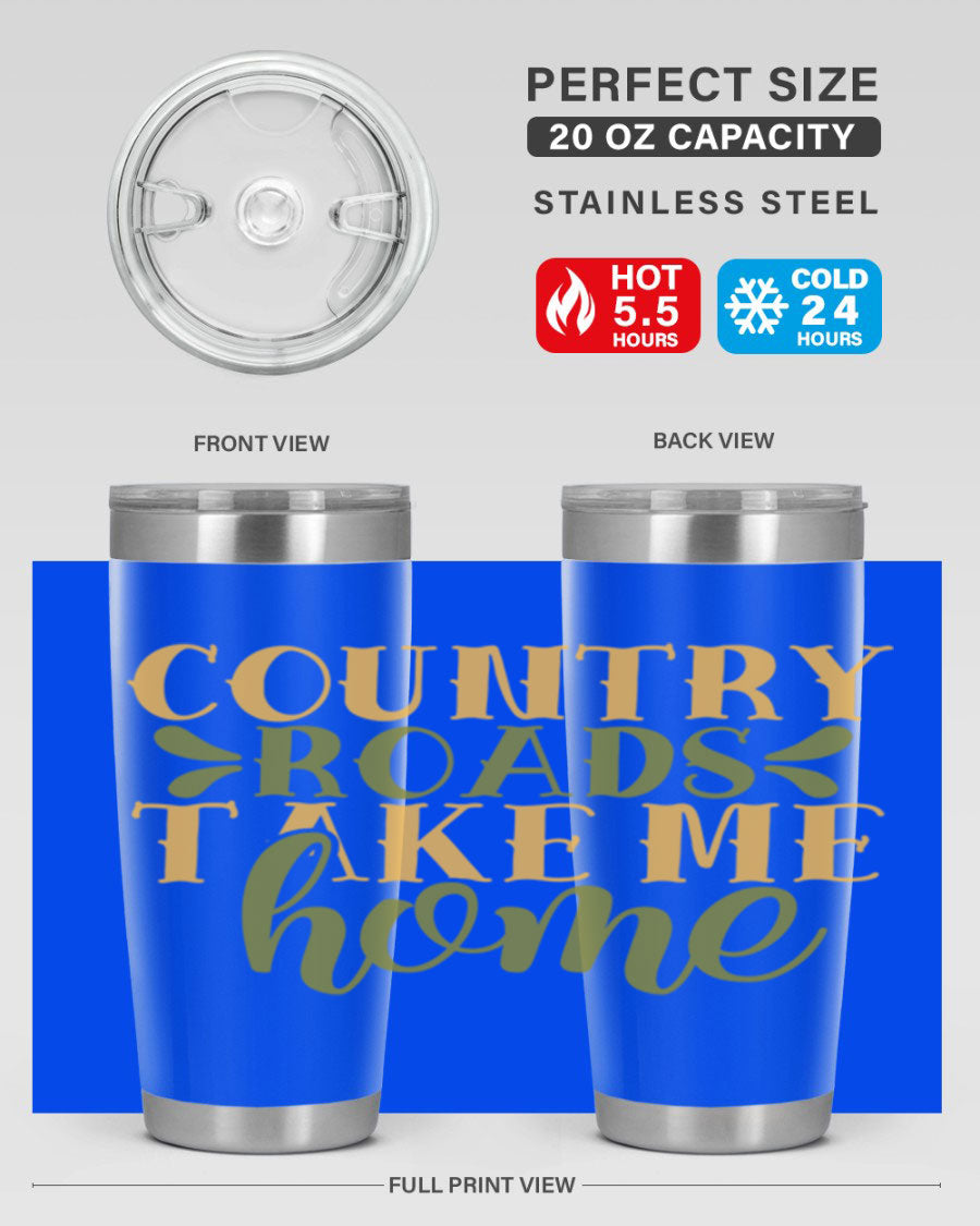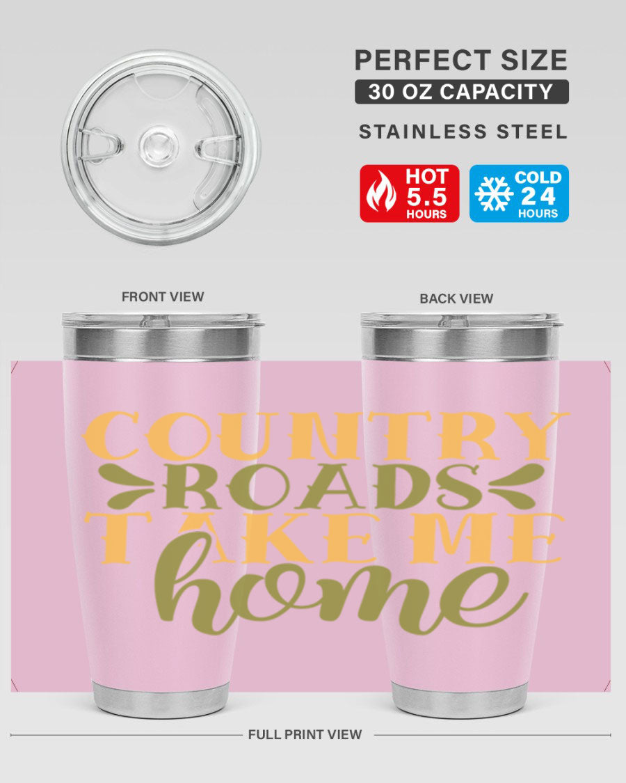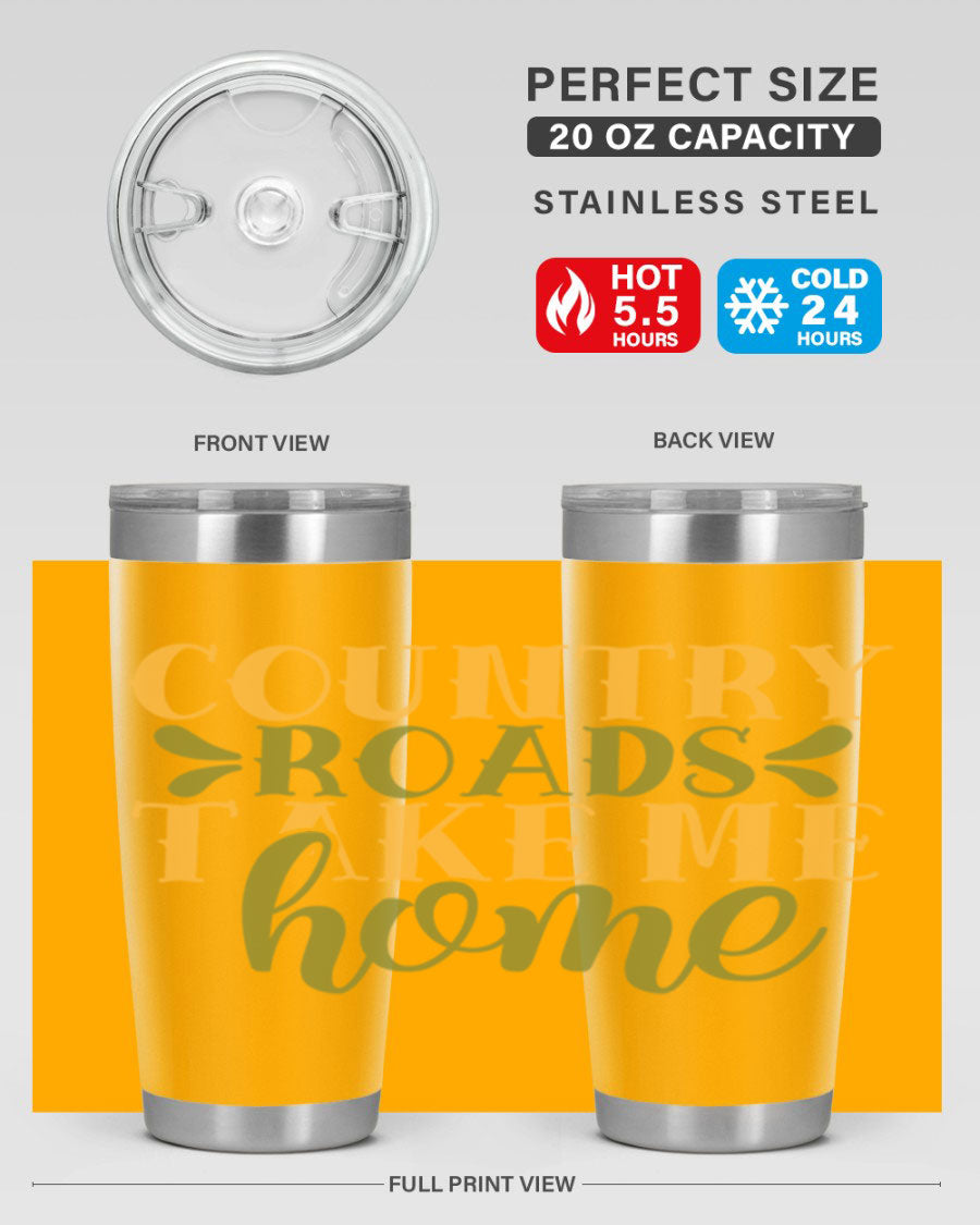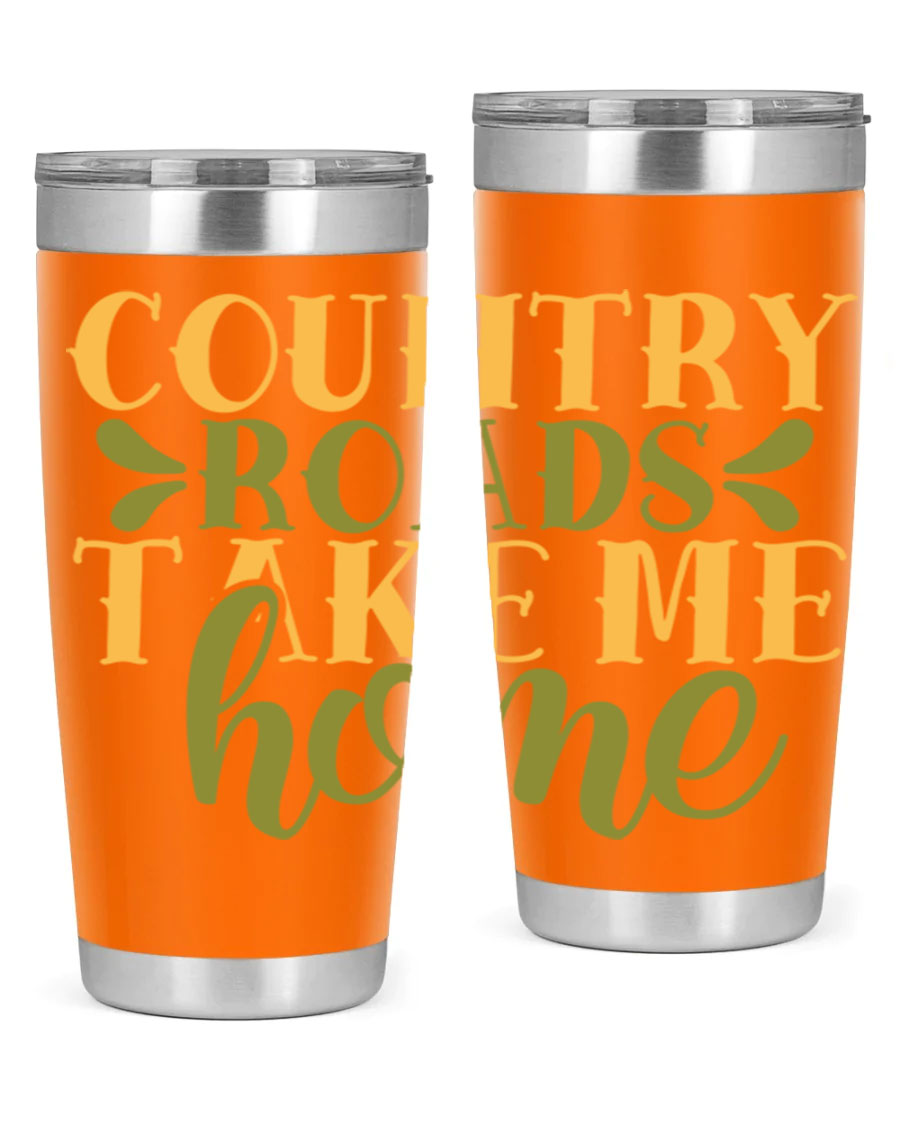Country Roads Take Me Home 19# Tumbler, a stylish double wall vacuum stainless steel tumbler with a copper lining, perfect for hot and cold beverages.