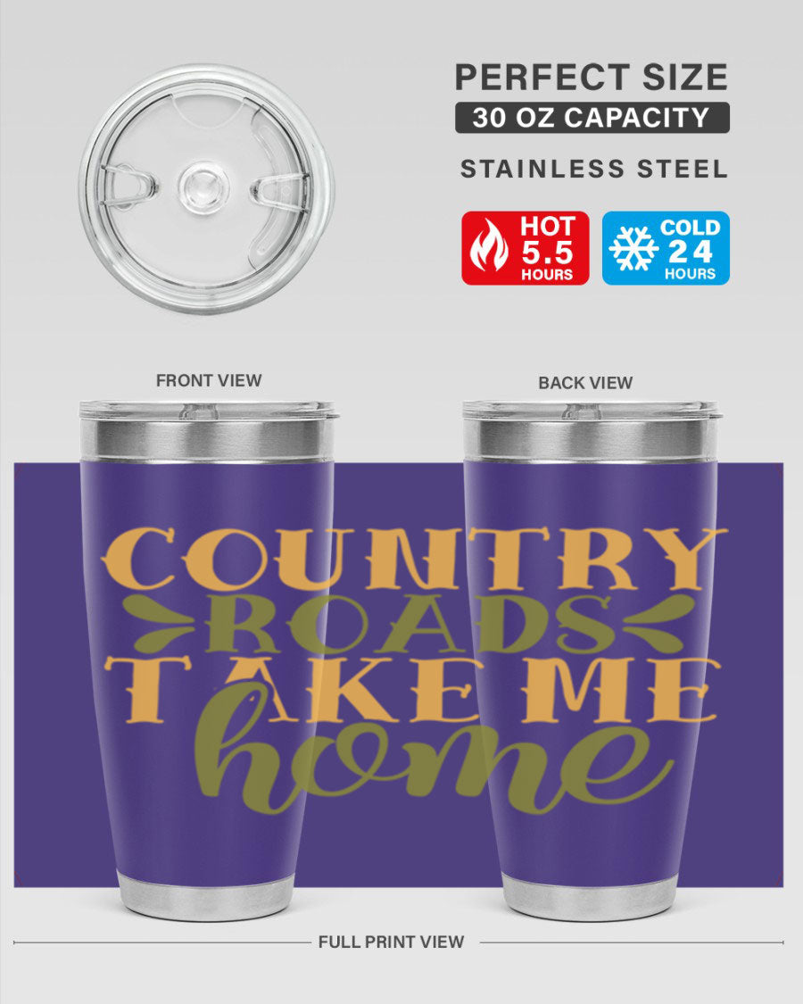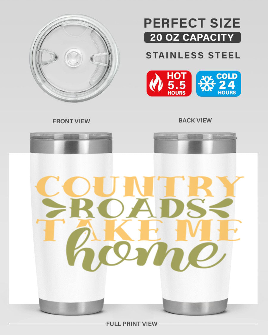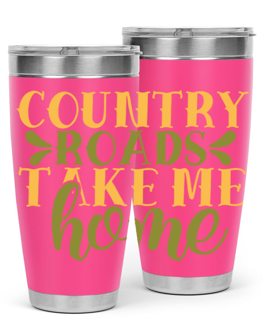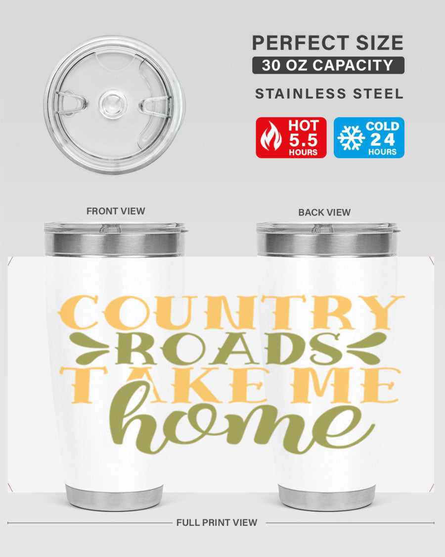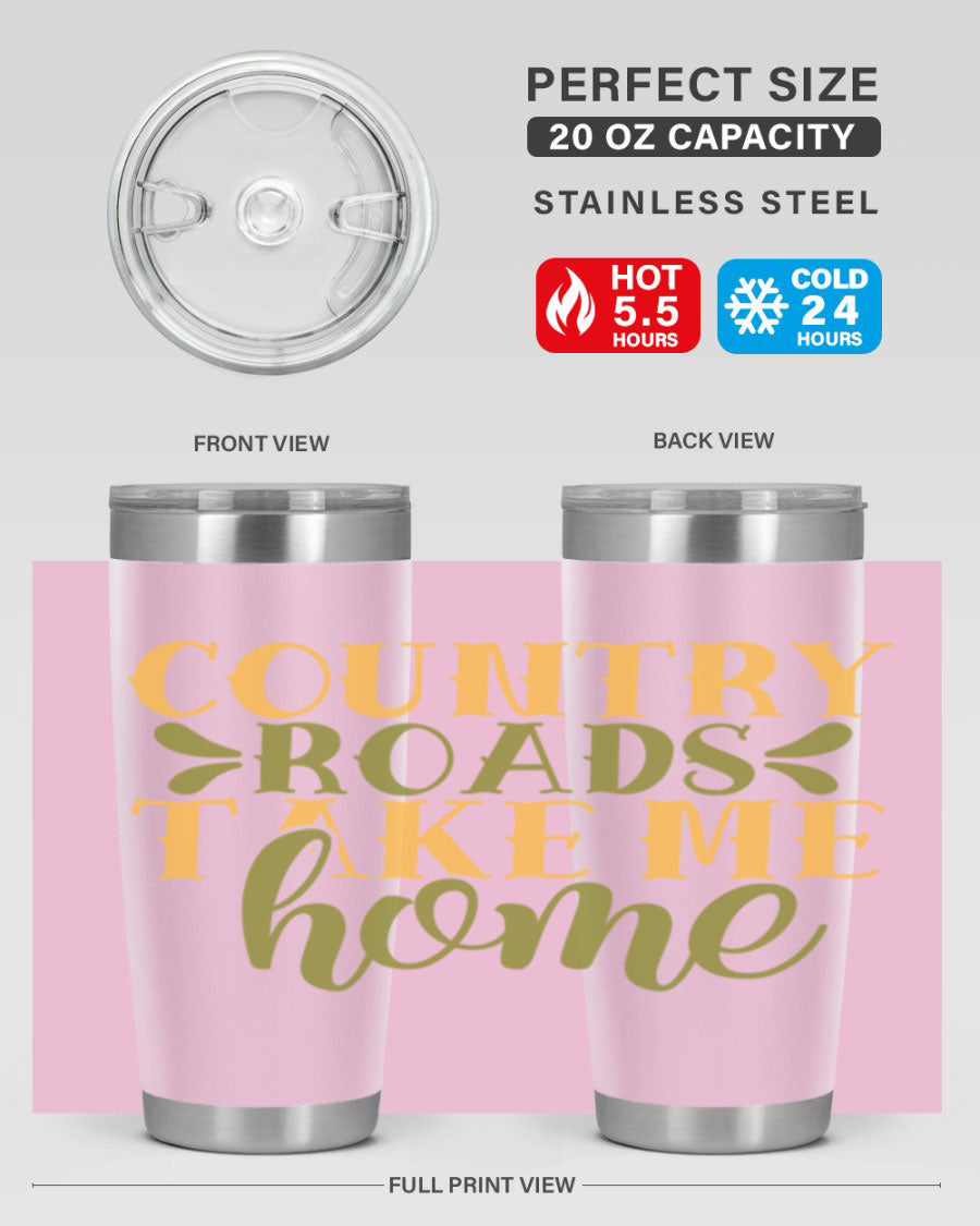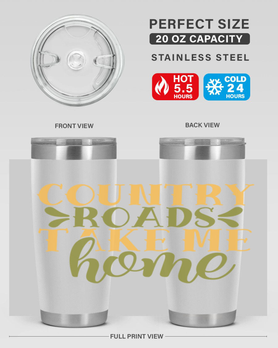 Country Roads Take Me Home 19# Tumbler, a stylish double wall vacuum stainless steel tumbler with a copper lining, perfect for hot and cold beverages.