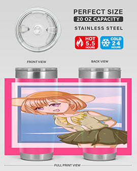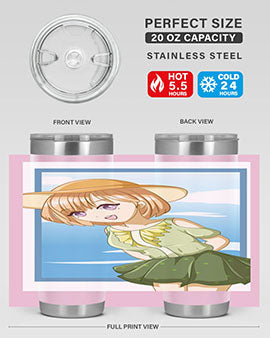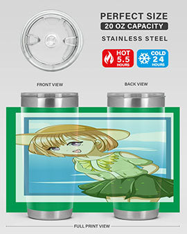 Introducing our stunning tumbler featuring a cute and beautiful girl with brown hair dressed in a vibrant green outfit, perfect for summer outings. This tumbler is not just a pretty face; it is designed for functionality and durability, making it an ideal companion for your favorite beverages.