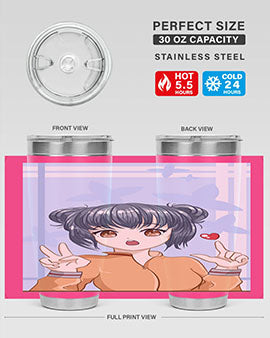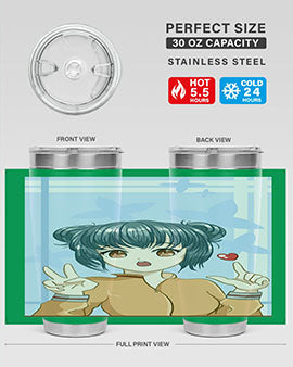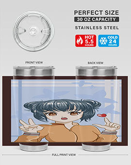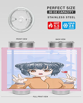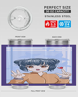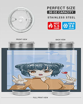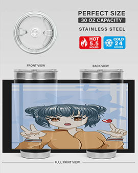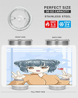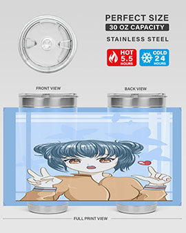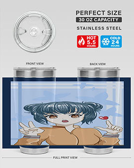 In summary, the Cute and Beautiful Girl Dark Blue Hair Tumbler is more than just a drink container; it's a statement piece that reflects your personality and interests. With its high-quality construction, excellent insulation, and charming design, it's the perfect addition to your collection or a delightful gift for someone special.