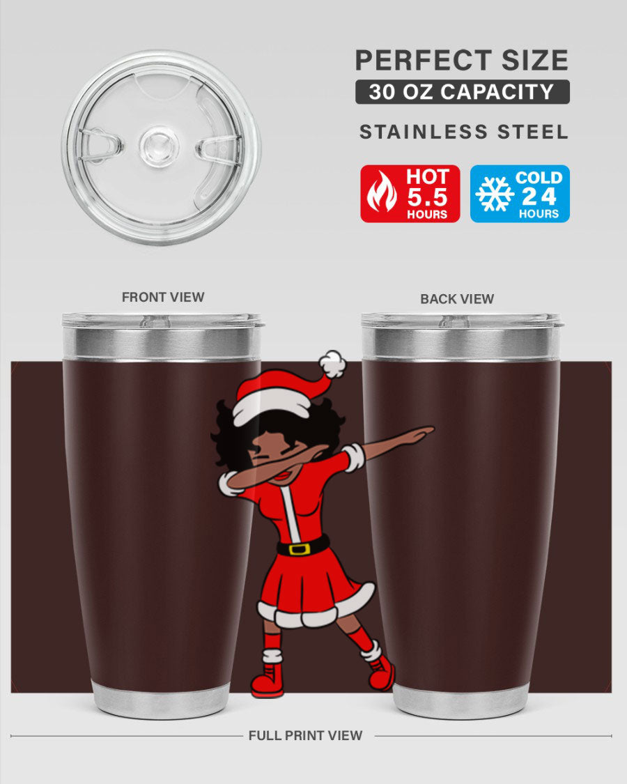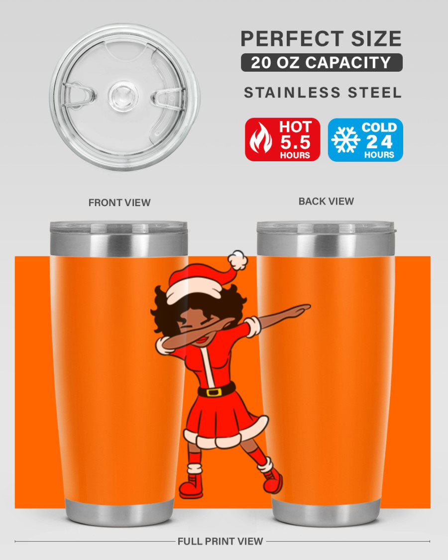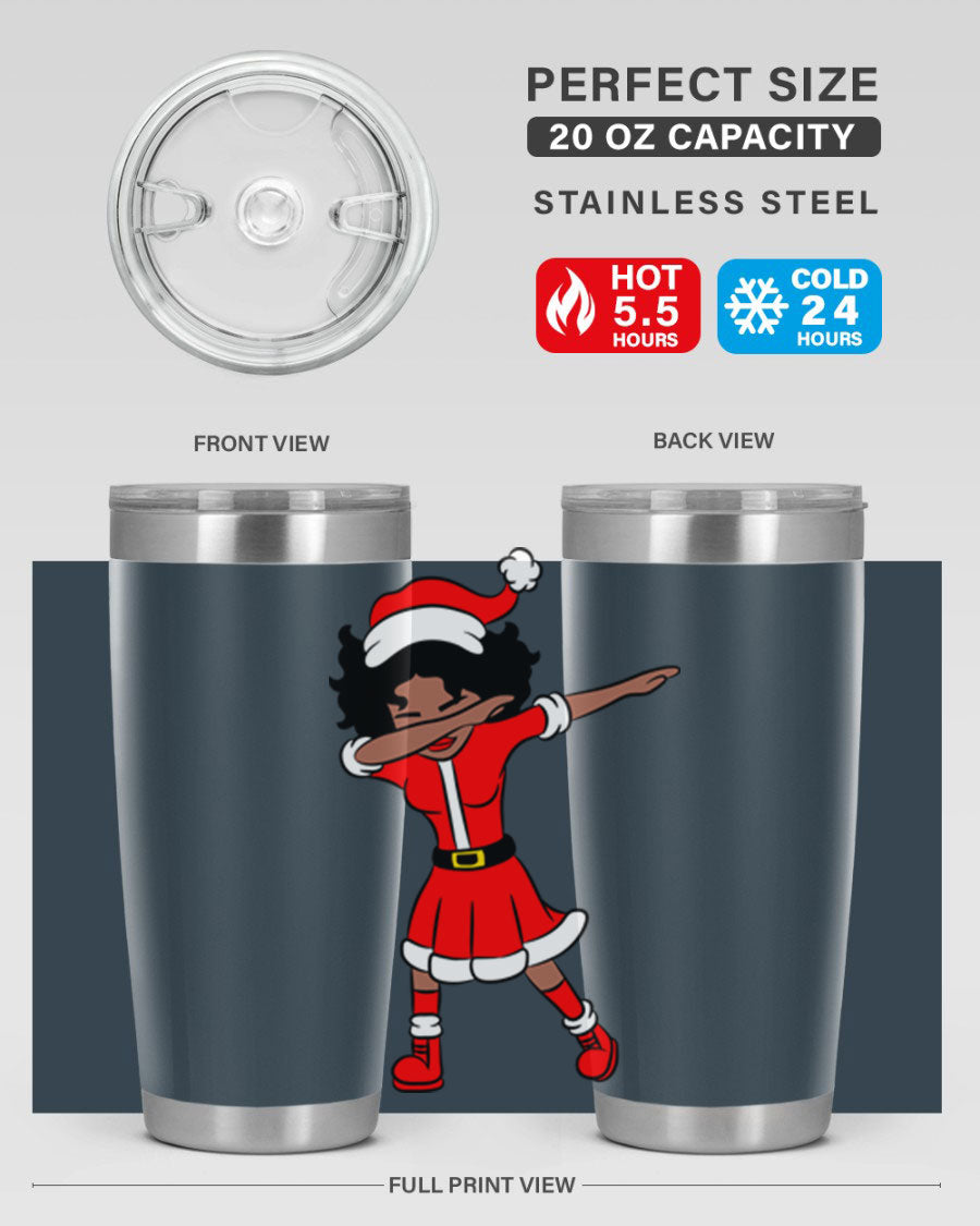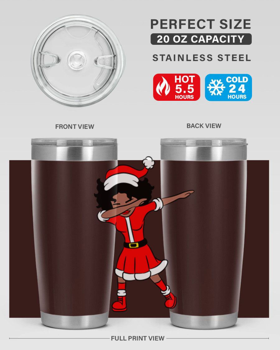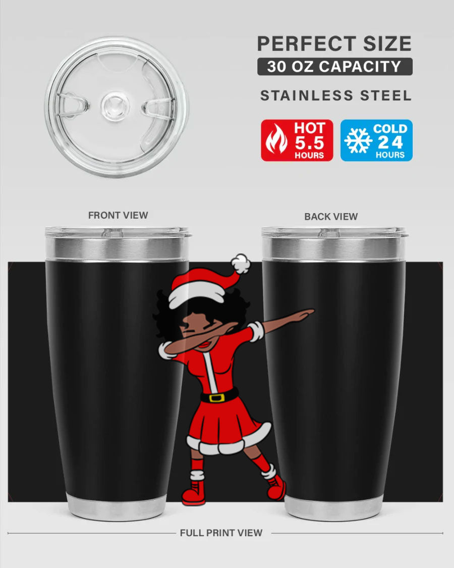 The Dabbing Santa Claus Afro Girl Tumbler comes in two sizes: 20oz and 30oz, allowing you to choose the perfect fit for your hydration needs. Both sizes feature a double wall vacuum construction with copper lining, ensuring that your drinks stay hot for up to 5.5 hours and cold for an impressive 24 hours. This means you can enjoy your hot cocoa or iced tea at the perfect temperature, no matter where your day takes you.