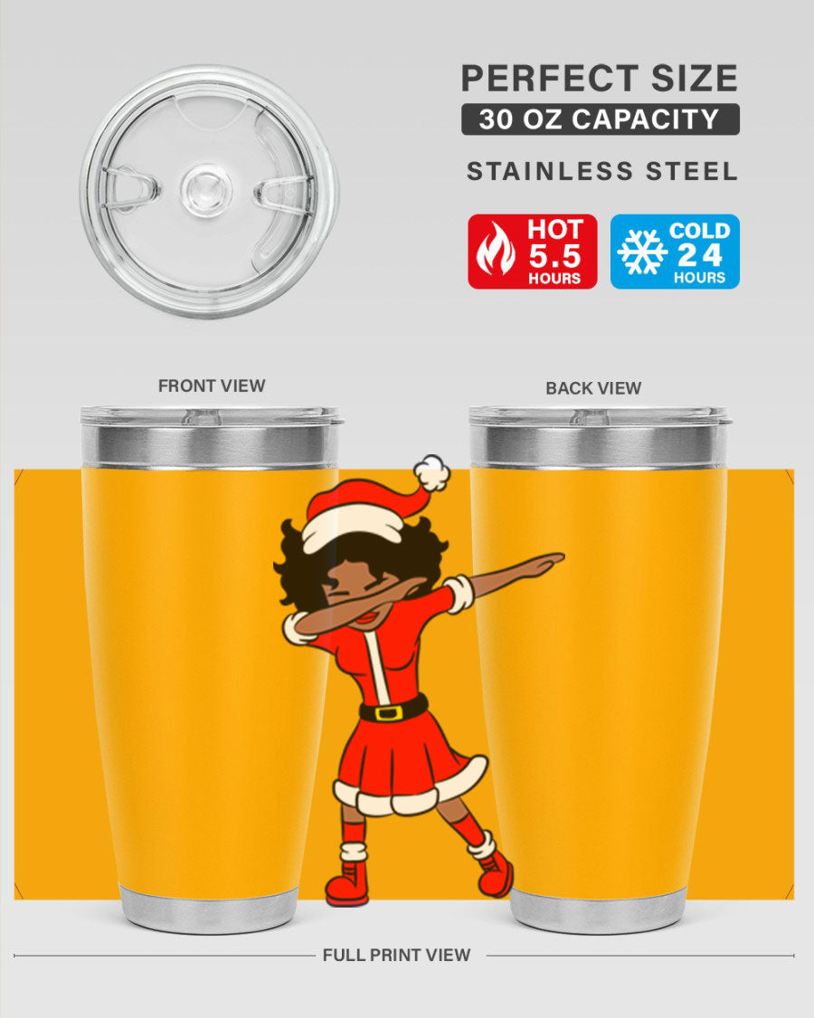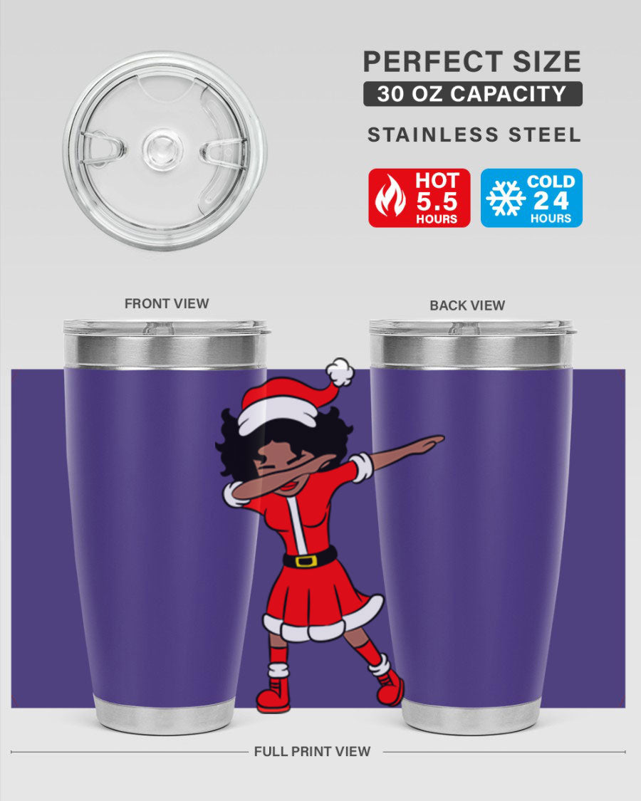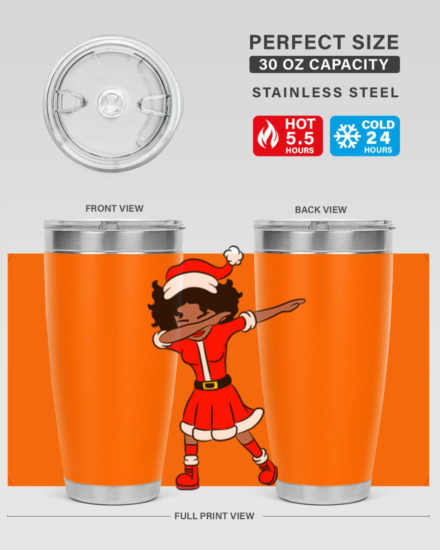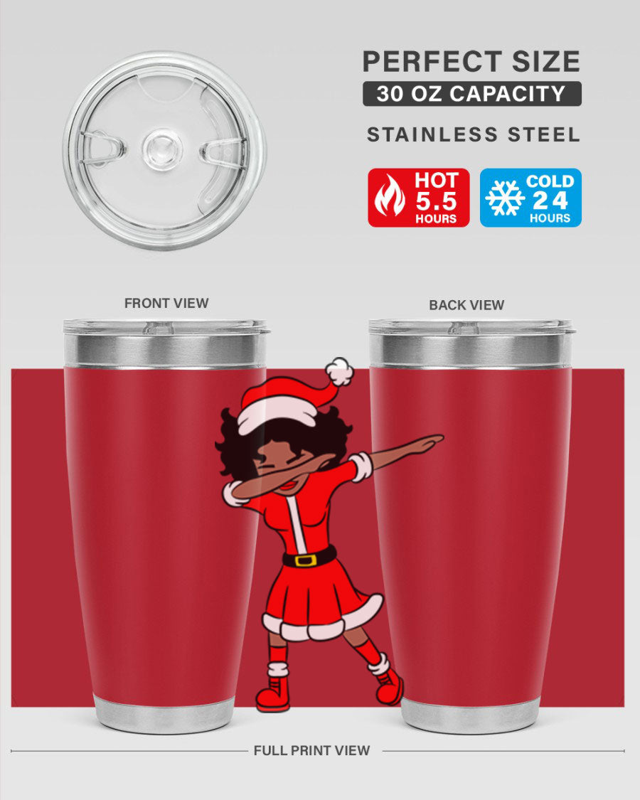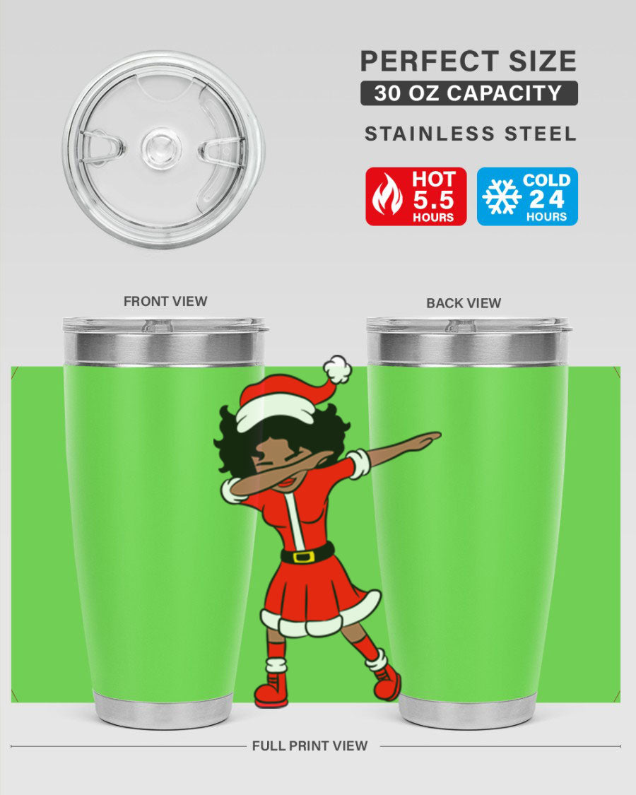 The Dabbing Santa Claus Afro Girl Tumbler comes in two sizes: 20oz and 30oz, allowing you to choose the perfect fit for your hydration needs. Both sizes feature a double wall vacuum construction with copper lining, ensuring that your drinks stay hot for up to 5.5 hours and cold for an impressive 24 hours. This means you can enjoy your hot cocoa or iced tea at the perfect temperature, no matter where your day takes you.