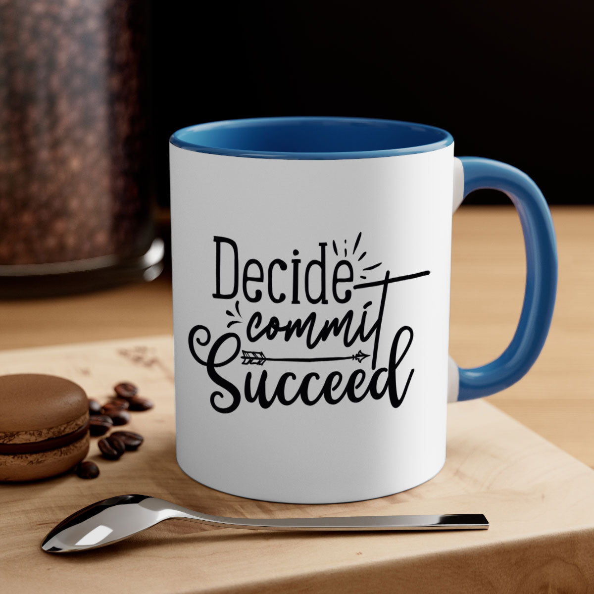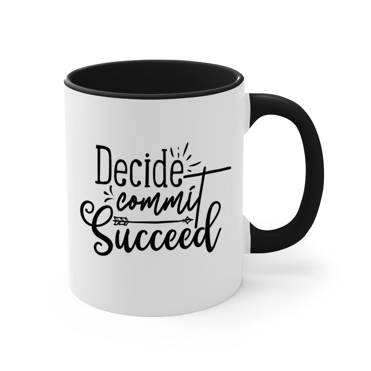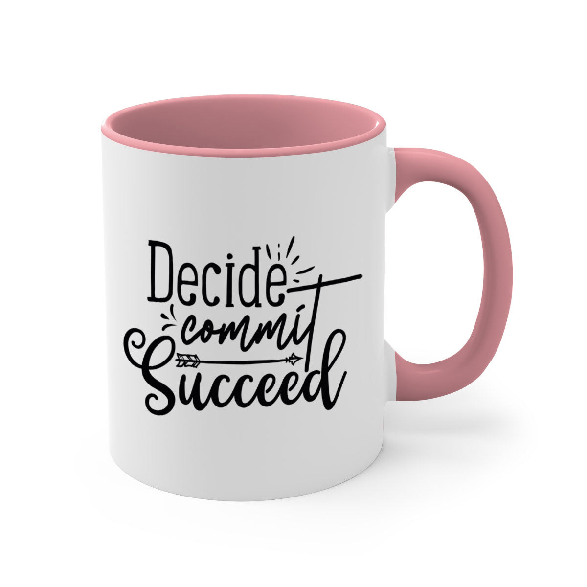 The Decide Commit Succeed Mug features a glossy finish that enhances its aesthetic appeal. Available in five different color options, you can choose the one that best complements your style. The colored handle and interior provide a beautiful contrast, making it an eye-catching addition to your mug collection.
