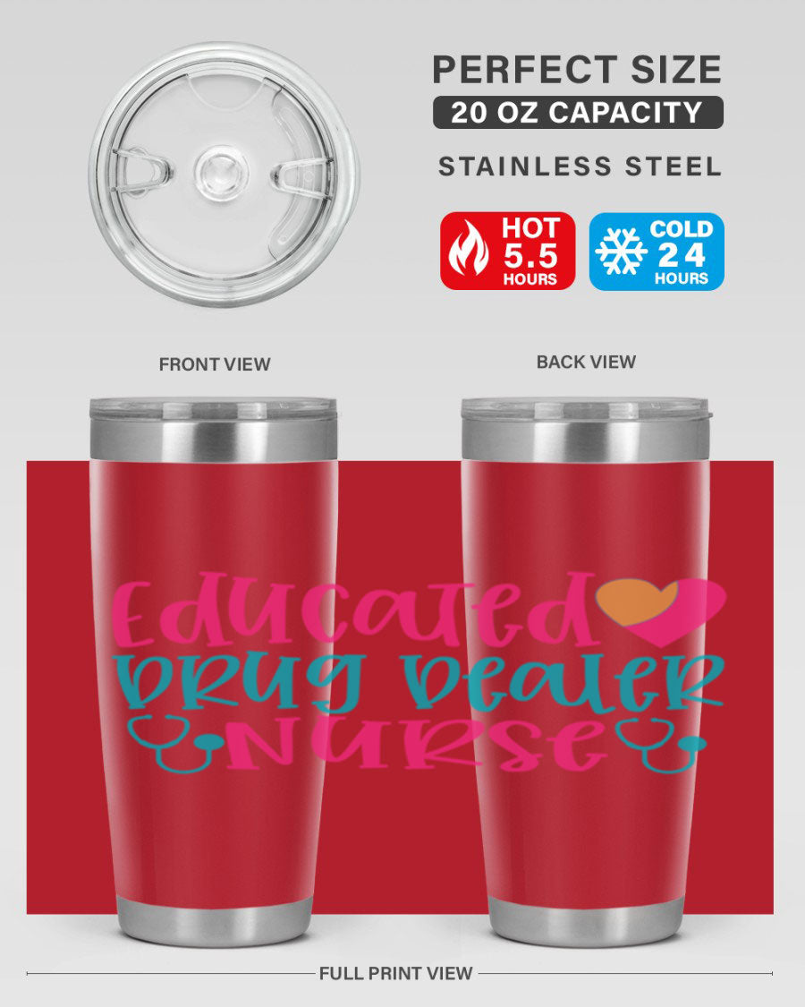 In summary, the Educated Drug Dealer Nurse tumbler is an essential accessory for any nurse looking to combine functionality with a bit of fun. With its durable construction, excellent temperature retention, and stylish design, this tumbler is sure to become your go-to beverage container. Order yours today and enjoy the perfect blend of practicality and personality!