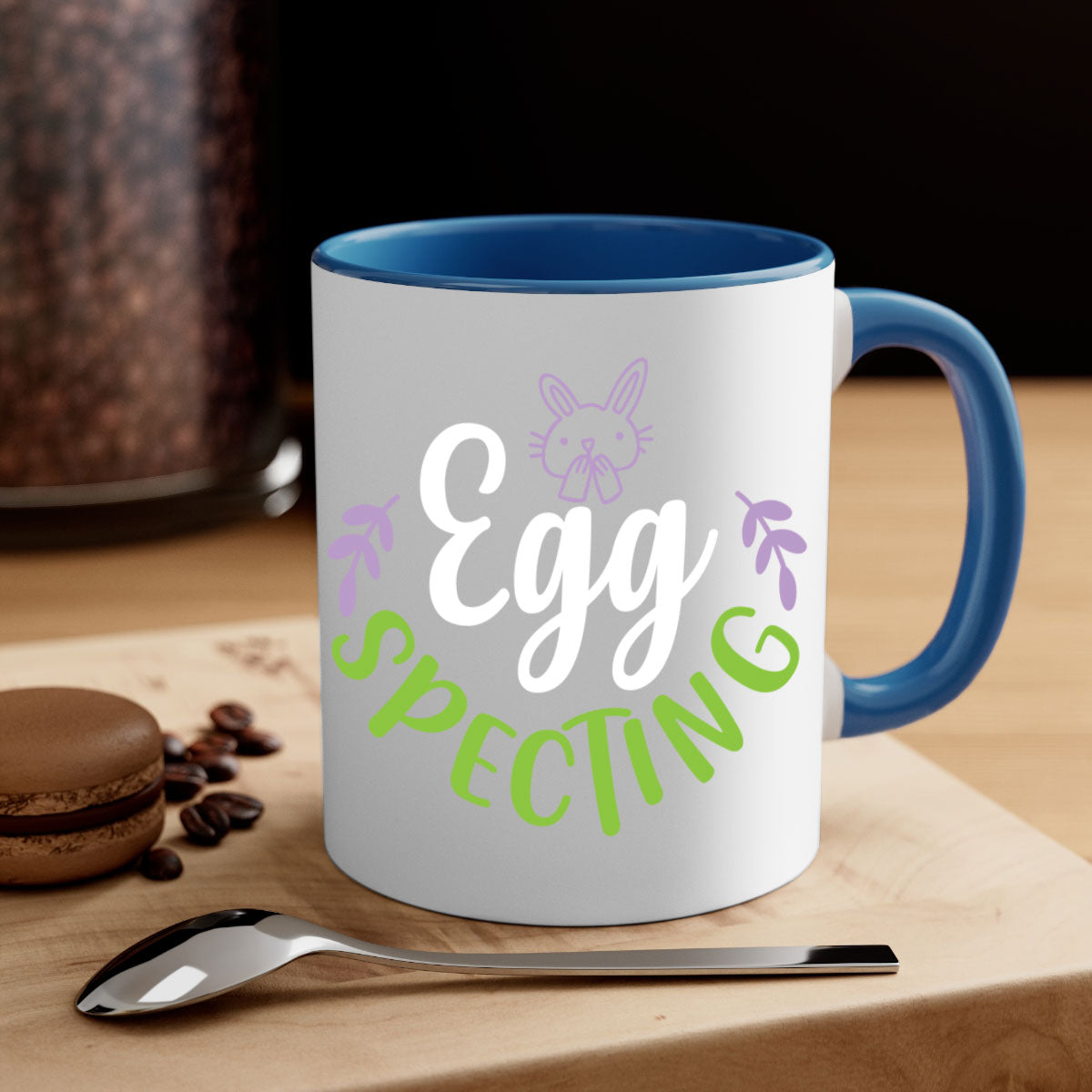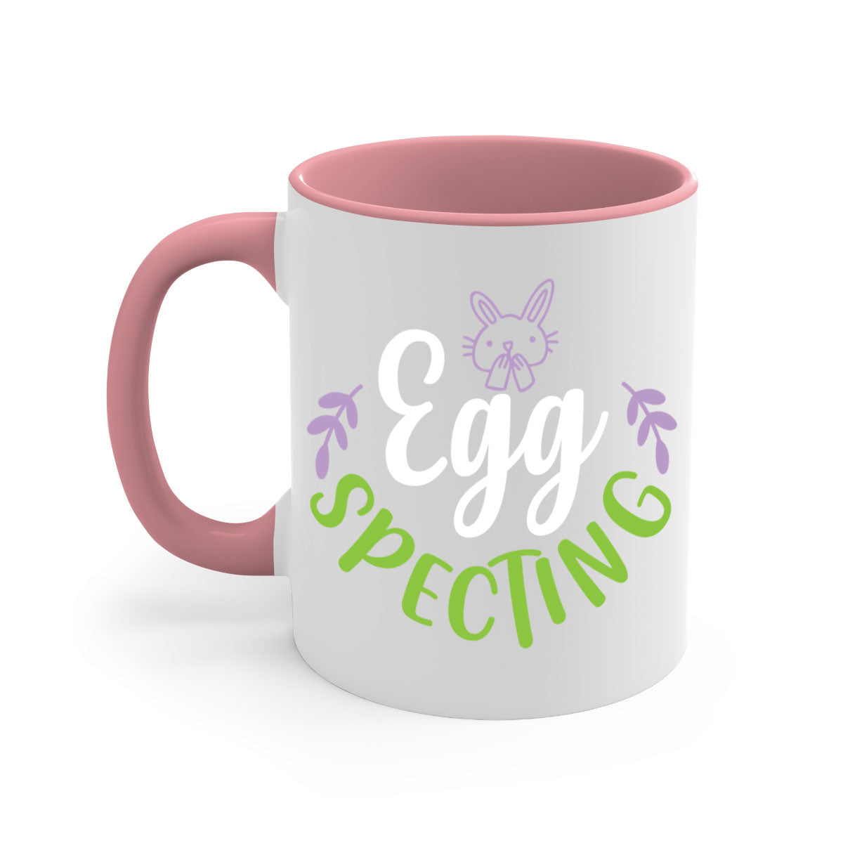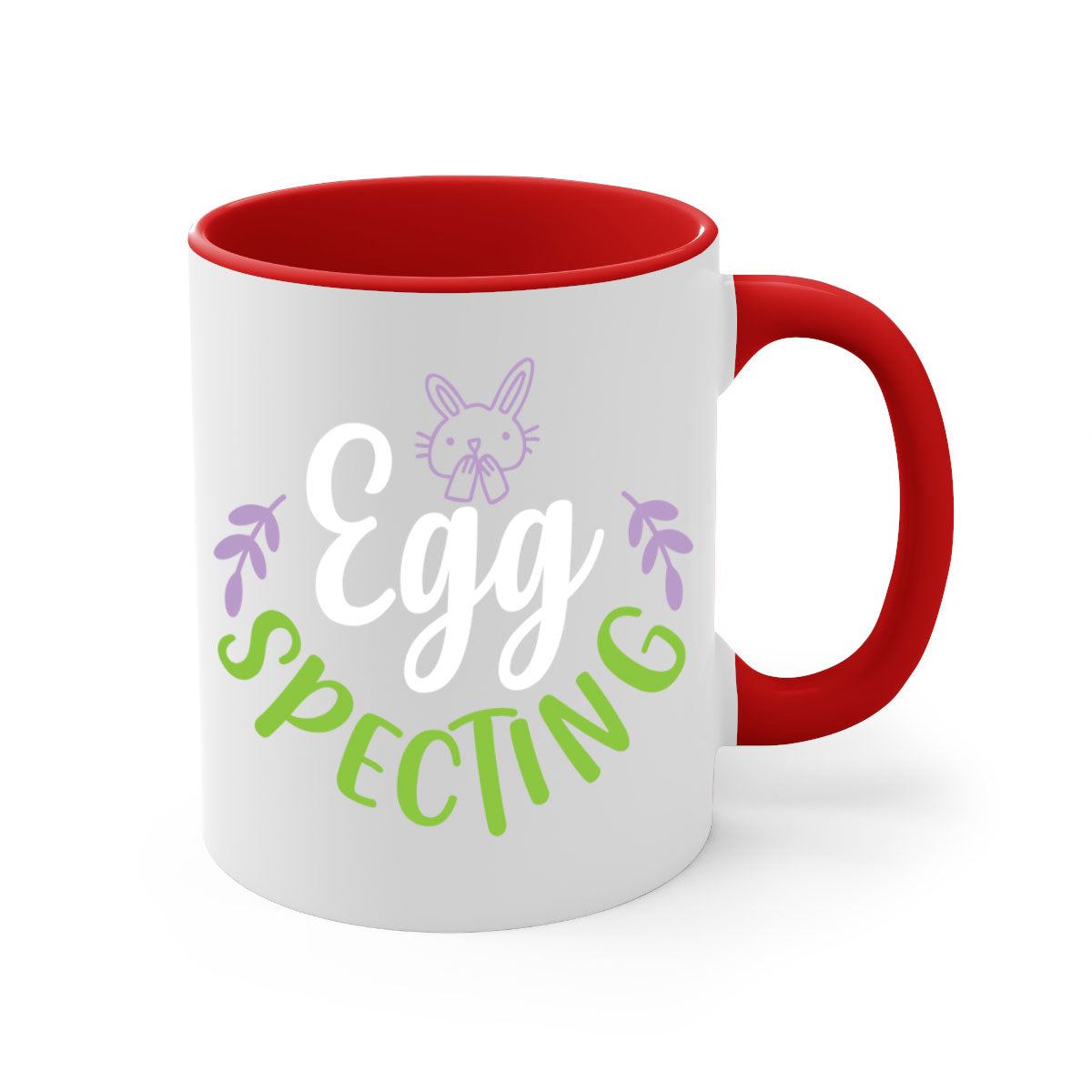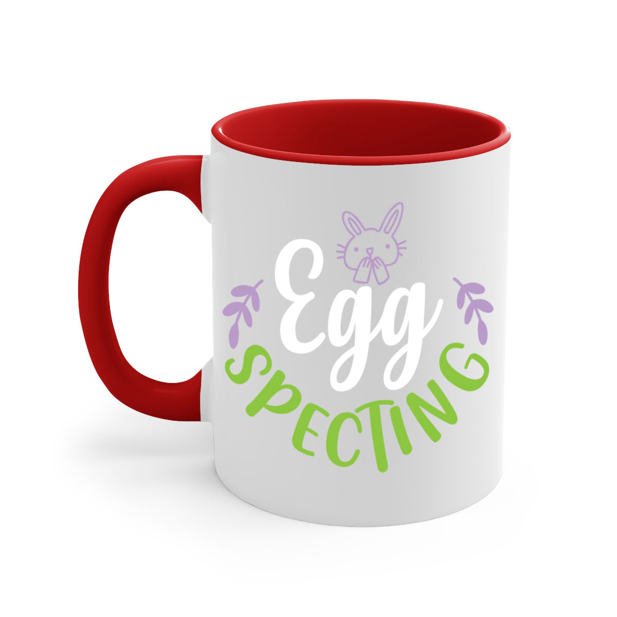 A stylish egg spectingggg 85# Mug with a glossy finish, featuring a colored handle and interior, available in multiple colors.