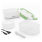 An extremely practical lunch box for heating up food or keeping it warm without the need for a microwave. Ideal for taking lunch to work and heating it up easily in the office. It is simple to use, you just need to plug the lunch box into the mains electricity using the removable cable (included), wait for a few minutes, and enjoy warm home-cooked food. It has a capacity of 1.05L and can reach a maximum temperature of up to 70 ºC. Inside, it features a removable tray with 2 separate compartments and a smaller container with a lid which is also removable, so both can be cleaned easily in the dishwasher. The container with lid is useful for salads or desserts and the other for the foods you want to heat up. The lunch box lid has a steam release valve and a cutlery compartment which includes a spoon. It also has 4 safety catches to close it and a folding carry handle so that it can be taken anywhere more conveniently. It can also be used as a conventional lunch box for cold or fresh foods.