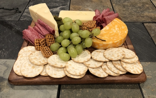 Delight your guests by serving cheese, crackers, hor d'oeuvres, or any appetizer on this elegant cheeseboard.