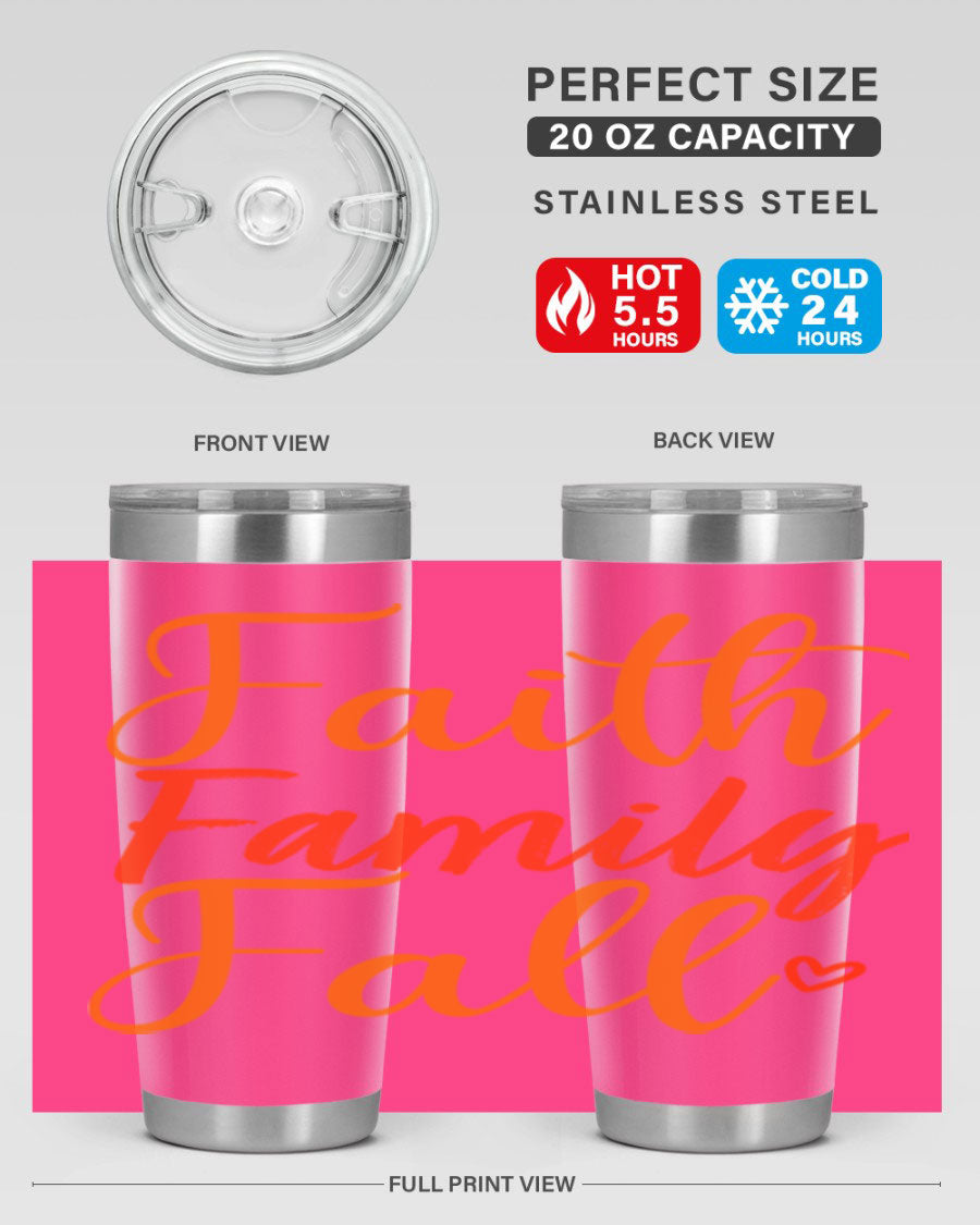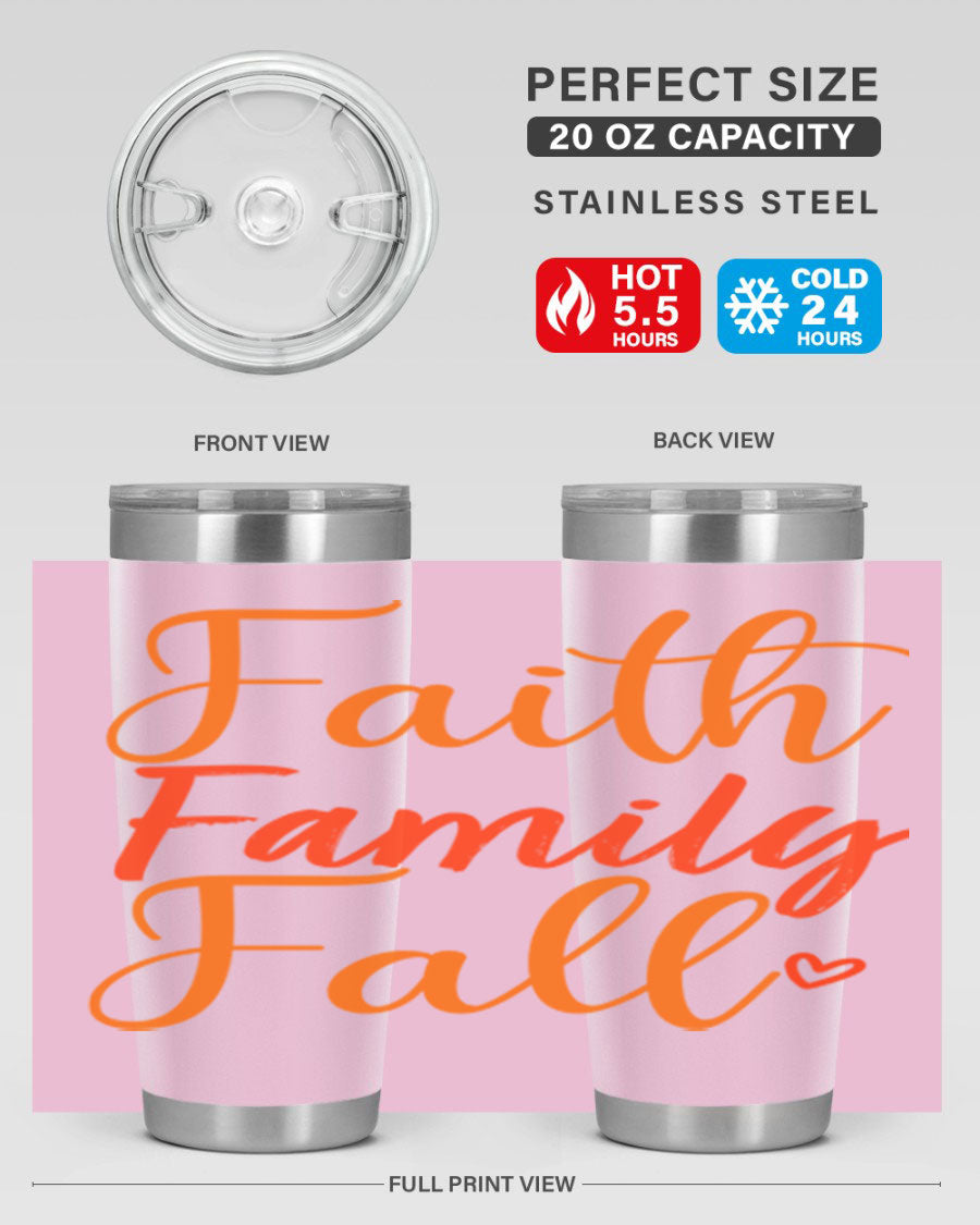 One of the standout features of the Faith Family Fall Design tumbler is its exceptional temperature retention. It keeps liquids hot for up to 5.5 hours, making it perfect for your morning coffee or tea. On the other hand, it can keep your drinks cool for an impressive 24 hours, ideal for summer picnics or long road trips. Enjoy your beverages at the perfect temperature, no matter the time of day.