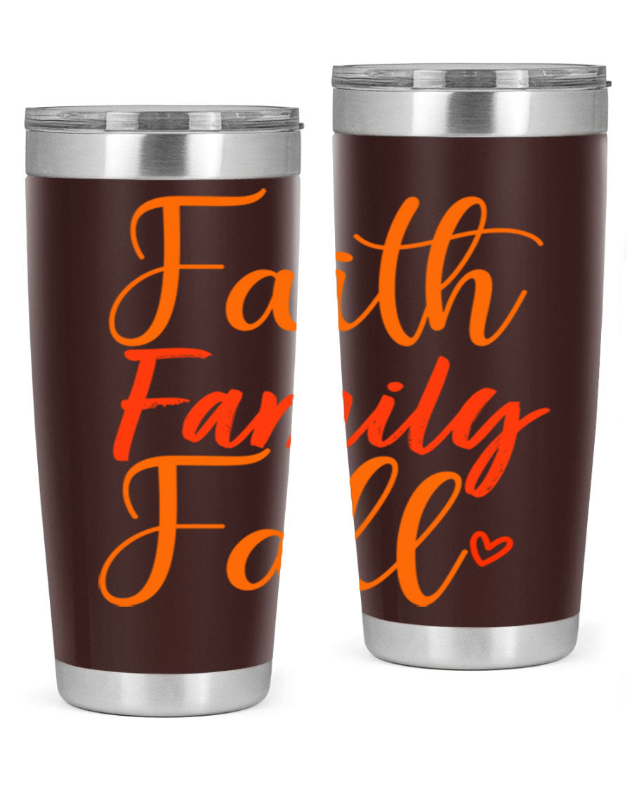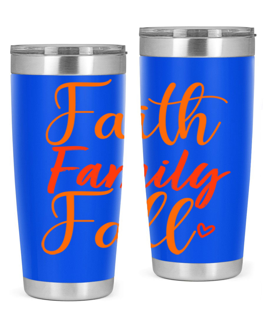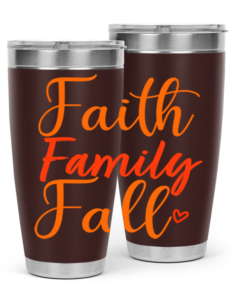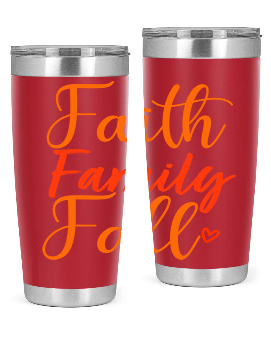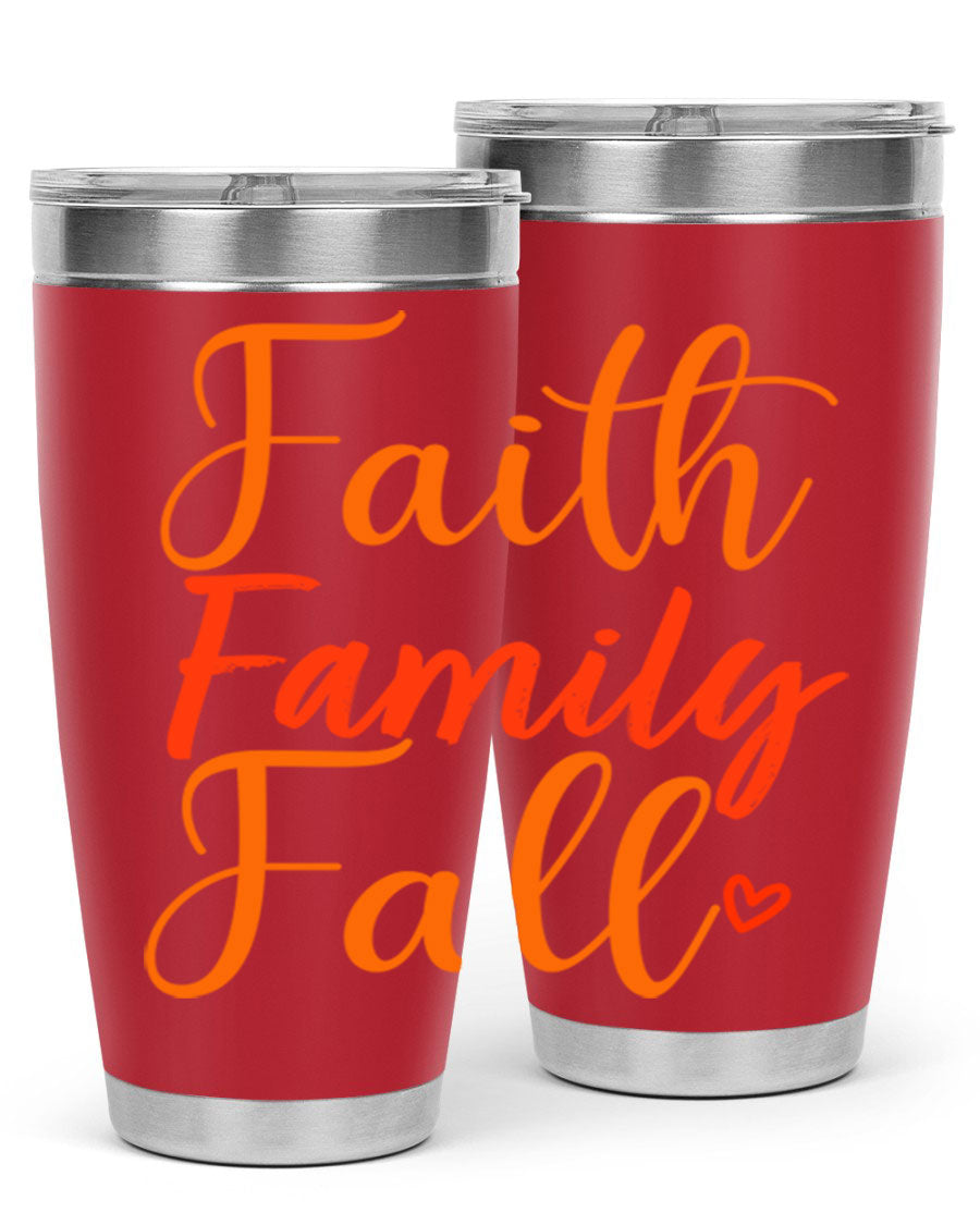 The Faith Family Fall Design 81# tumbler is crafted from double wall vacuum stainless steel, ensuring that your drinks stay at the desired temperature for hours. It features a copper lining that enhances insulation, making it one of the best tumblers on the market. The press-in, drink-thru lid allows for easy sipping, making it perfect for on-the-go lifestyles.