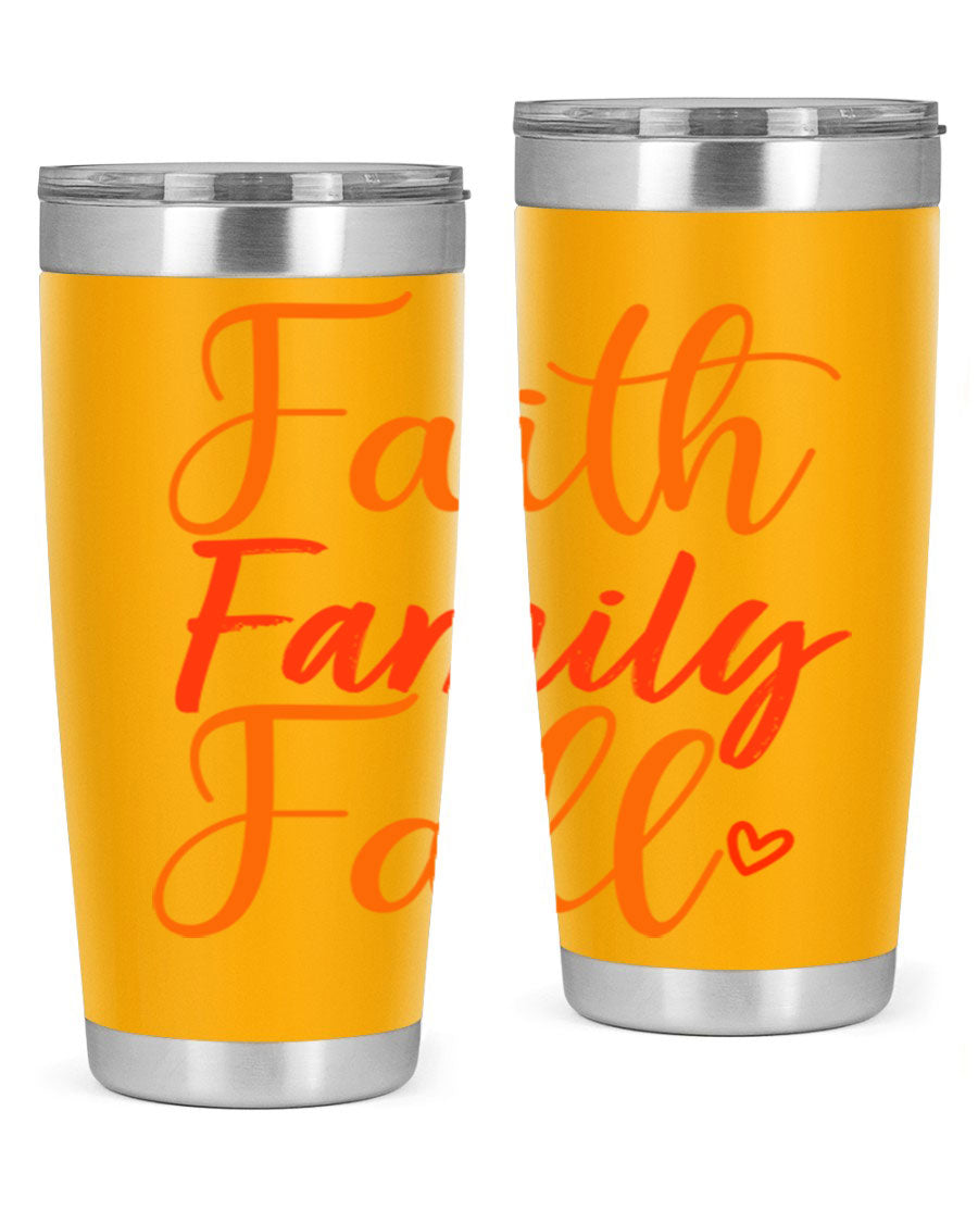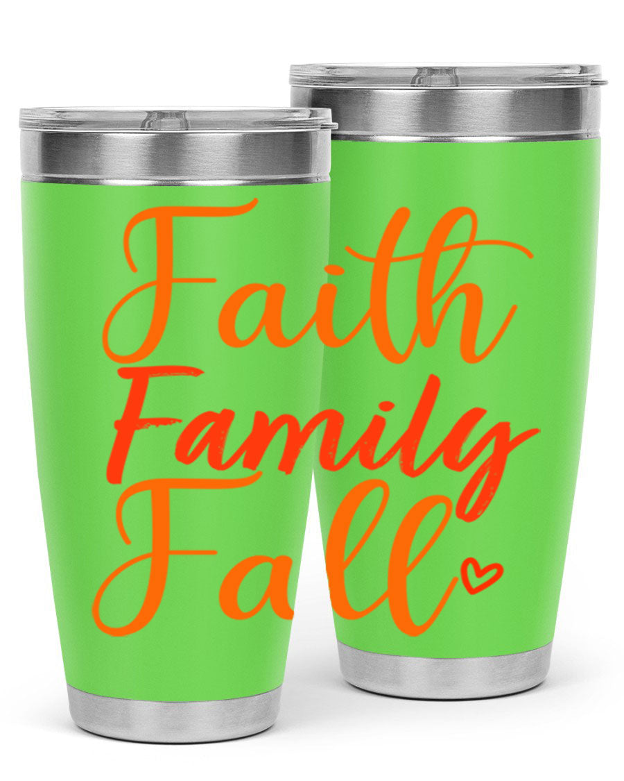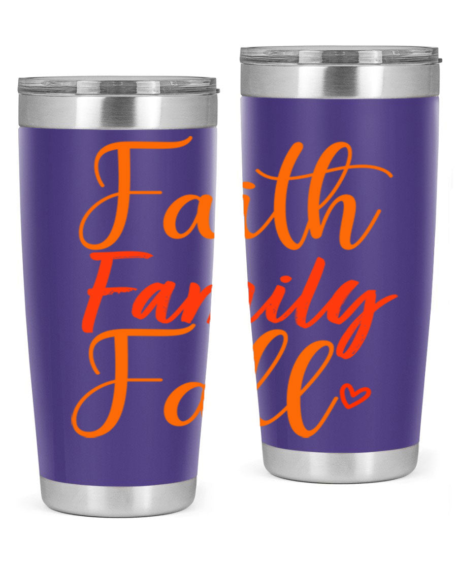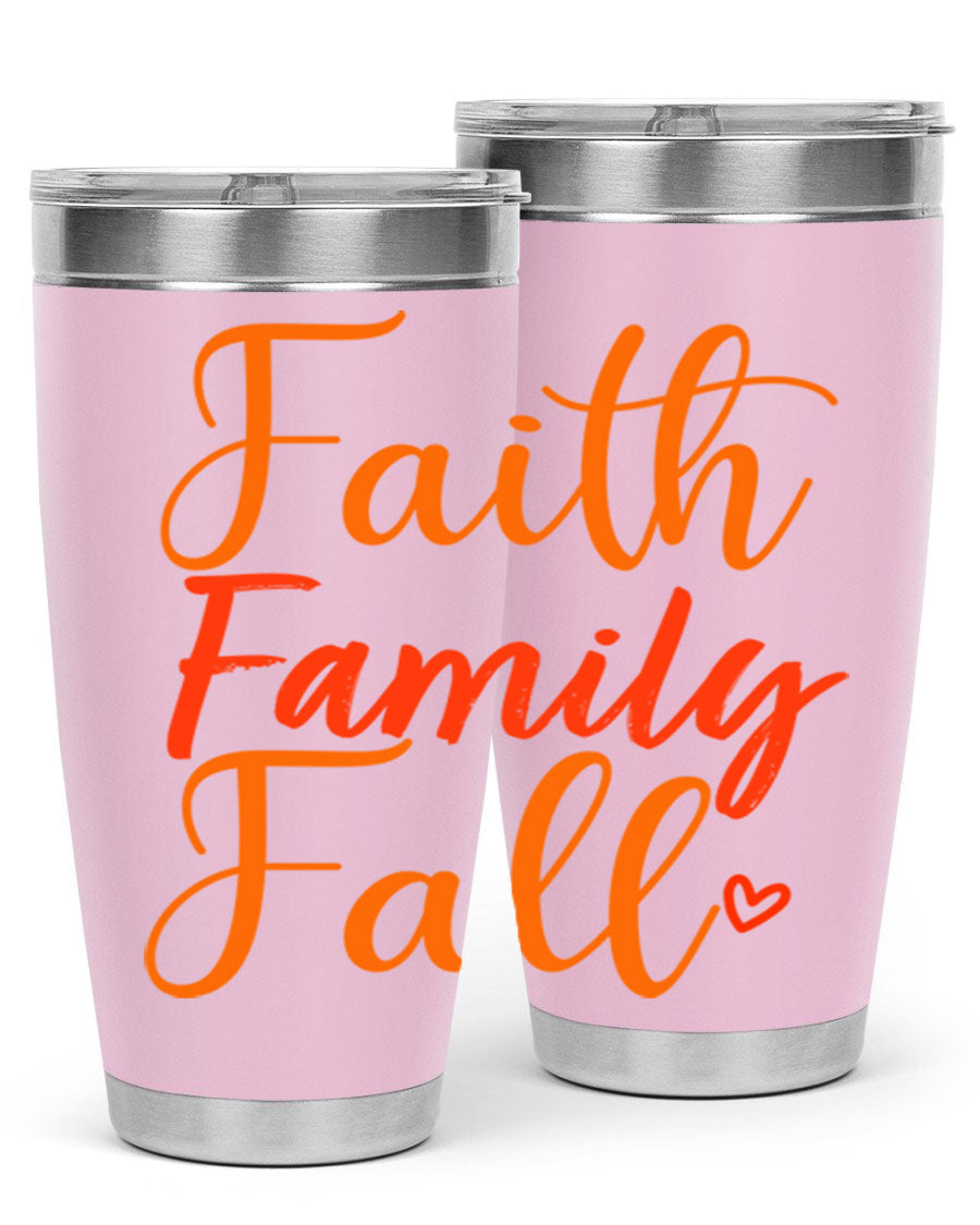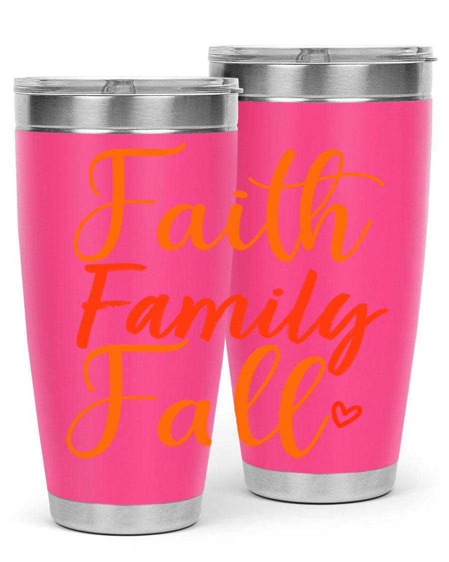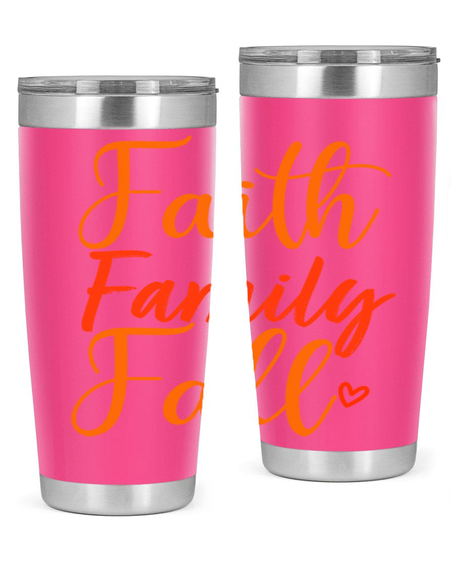 The Faith Family Fall Design 81# tumbler is crafted from double wall vacuum stainless steel, ensuring that your drinks stay at the desired temperature for hours. It features a copper lining that enhances insulation, making it one of the best tumblers on the market. The press-in, drink-thru lid allows for easy sipping, making it perfect for on-the-go lifestyles.