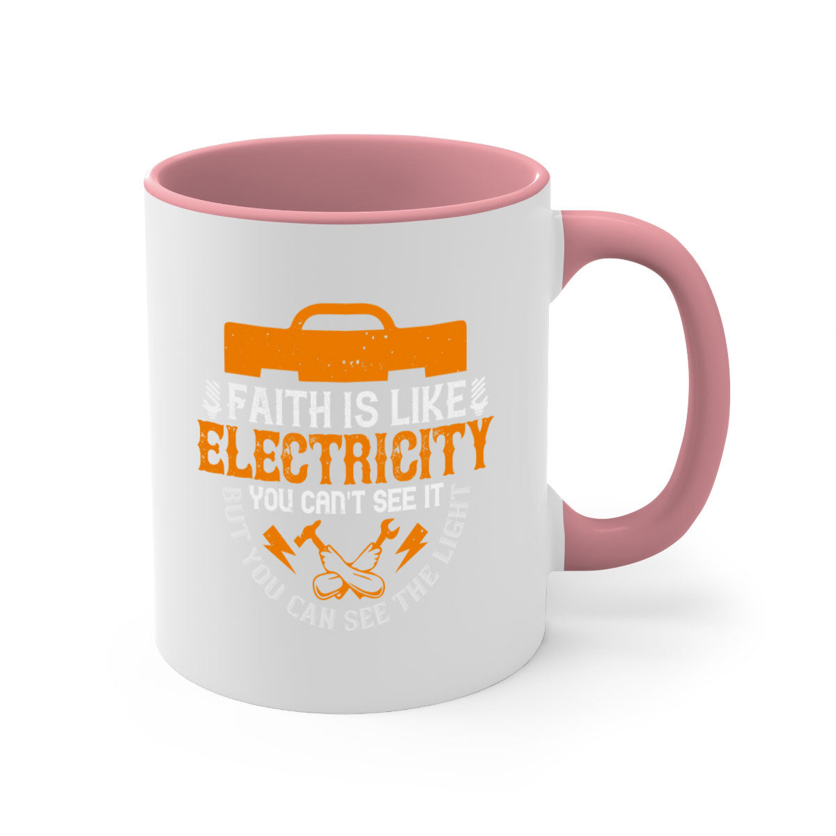 The Faith is like electricity mug features a stunning two-tone design that is sure to catch the eye. With a colored handle and interior, this mug is not just functional but also a statement piece for your kitchen or office. Choose from five vibrant color options to match your personal style or mood.