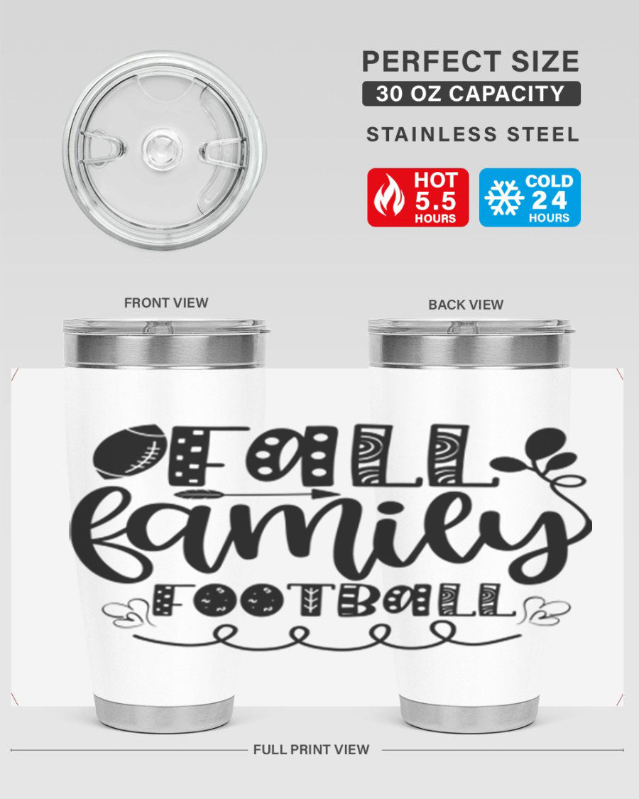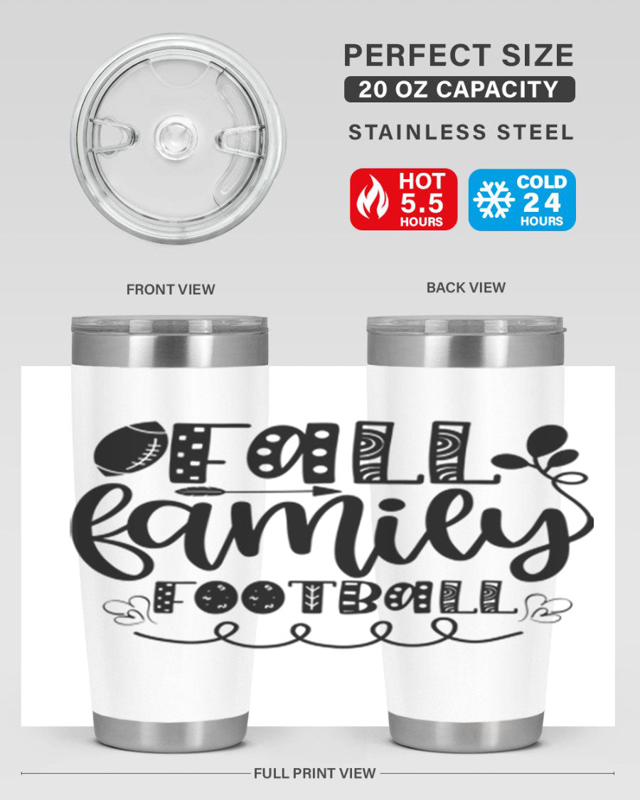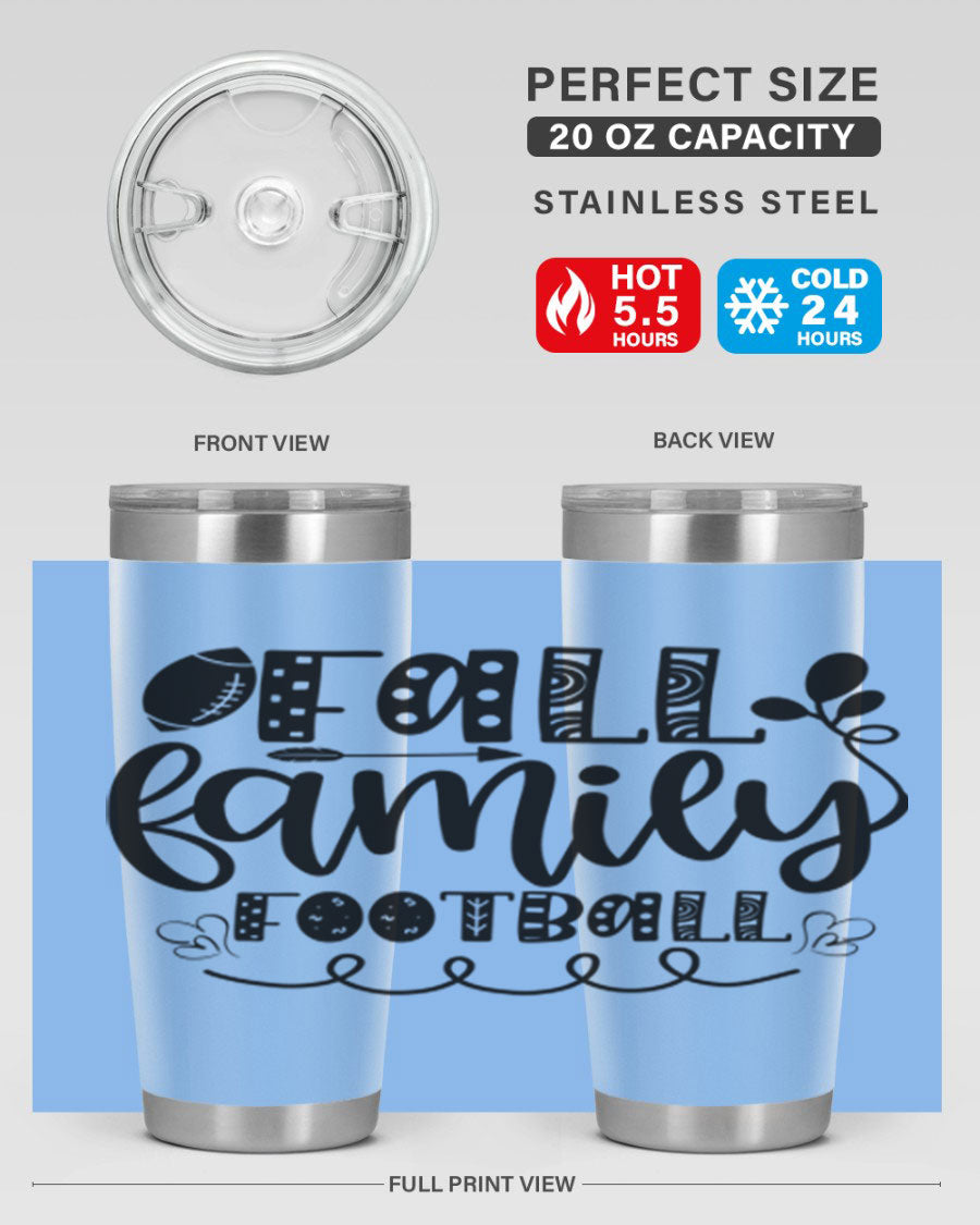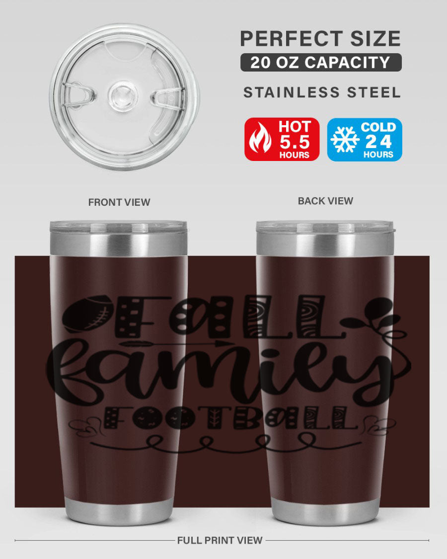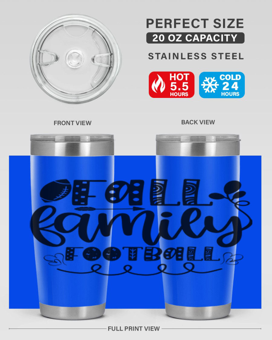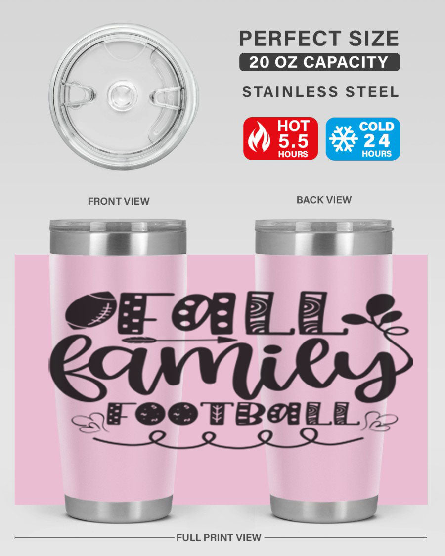 The Fall Family Football 99# Tumbler is the perfect companion for any football fan looking to enjoy their favorite beverages in style. This 20oz tumbler is designed with a double wall vacuum insulation, ensuring that your drinks stay hot for up to 5.5 hours and cold for an impressive 24 hours. Whether you're tailgating, watching the game at home, or just enjoying a day out, this tumbler is built to keep your drinks at the perfect temperature.