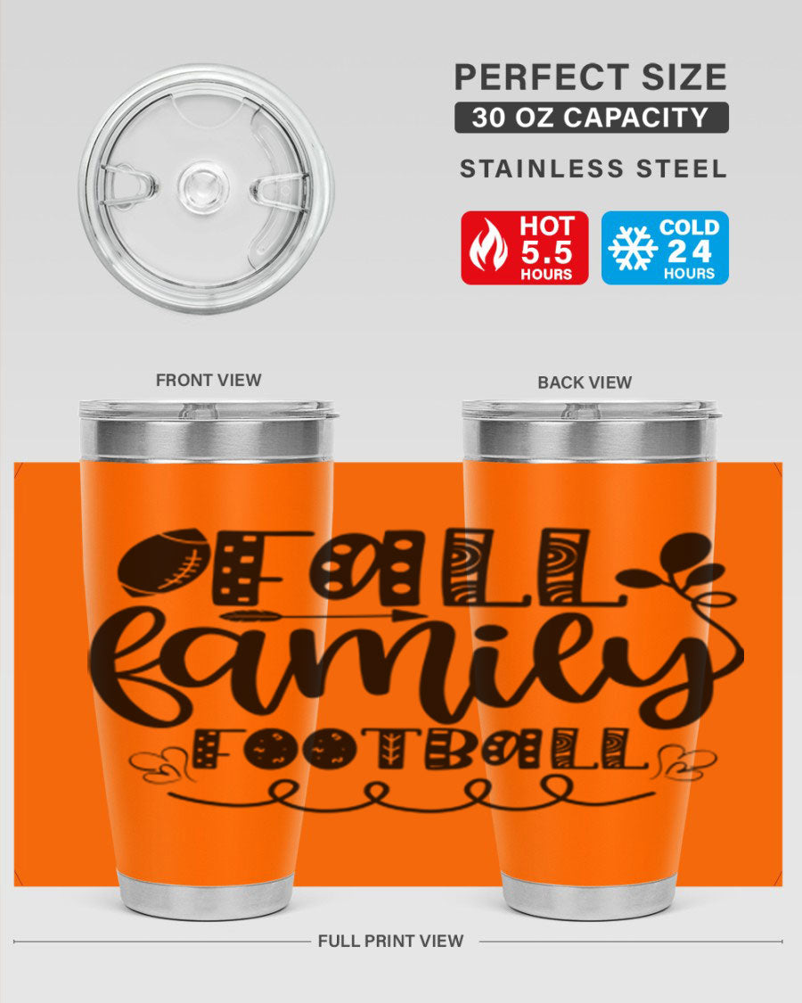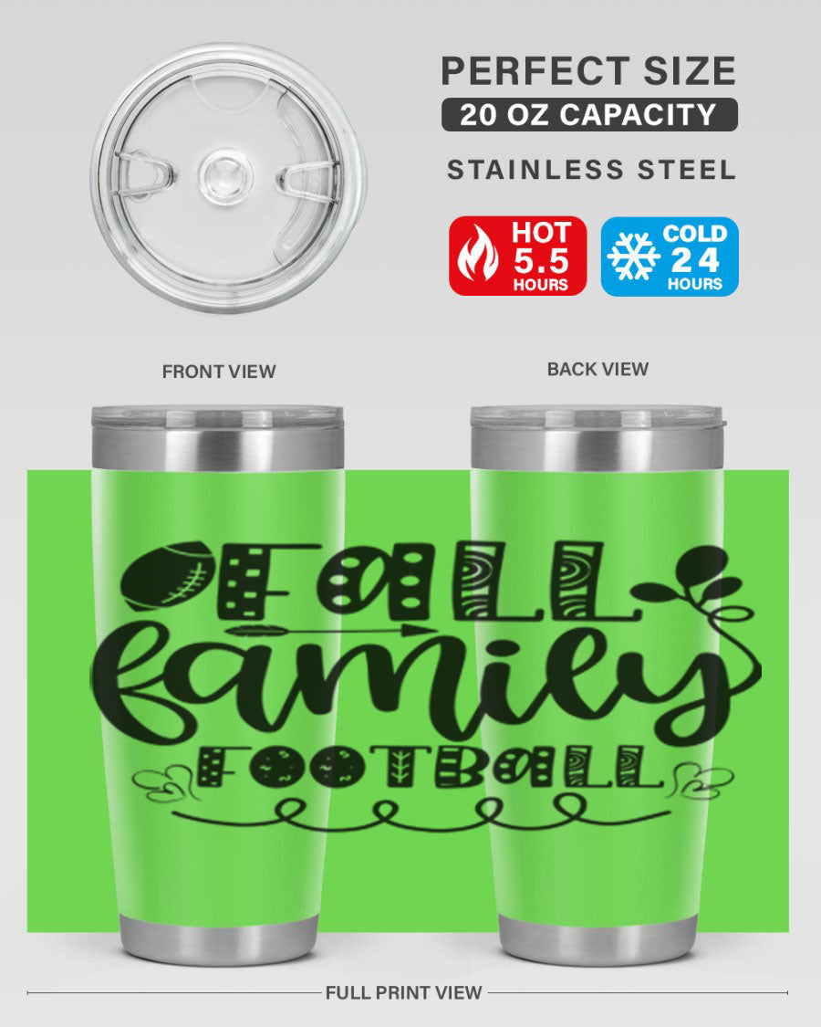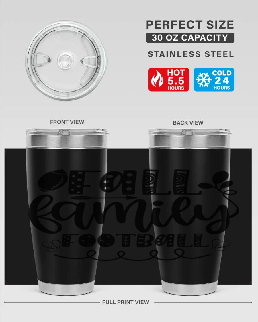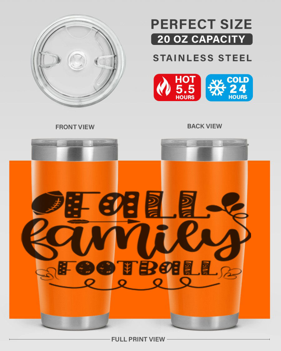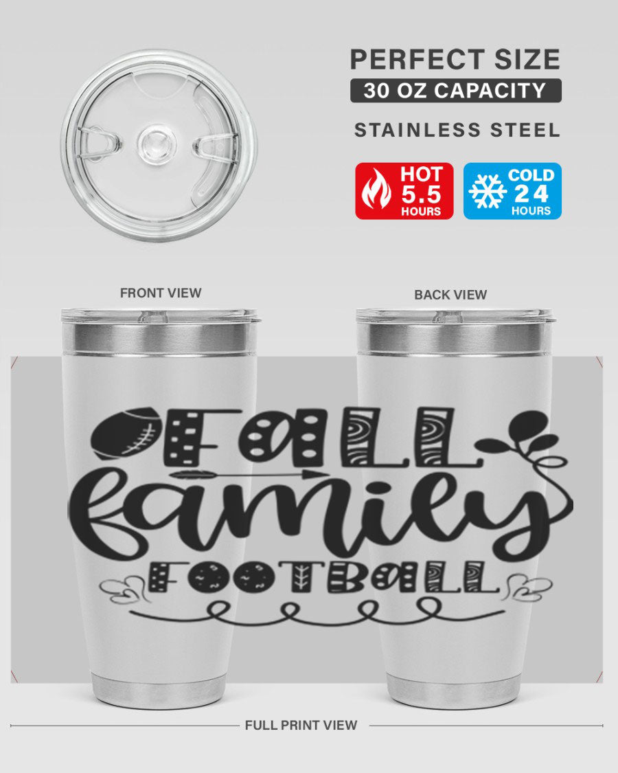 The Fall Family Football 99# Tumbler is the perfect companion for any football fan looking to enjoy their favorite beverages in style. This 20oz tumbler is designed with a double wall vacuum insulation, ensuring that your drinks stay hot for up to 5.5 hours and cold for an impressive 24 hours. Whether you're tailgating, watching the game at home, or just enjoying a day out, this tumbler is built to keep your drinks at the perfect temperature.